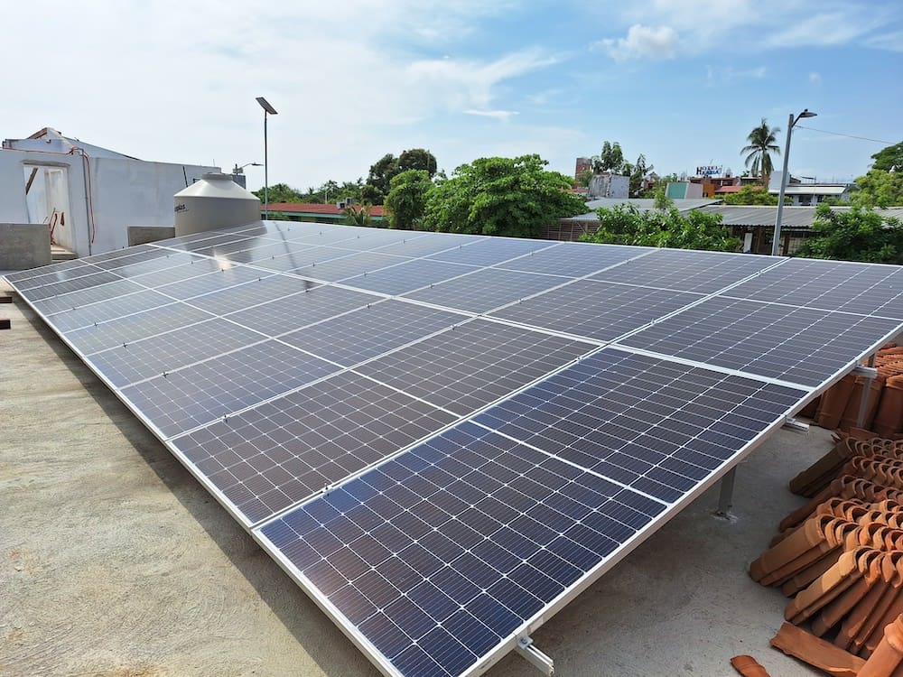 Las generaciones más nuevas de paneles solares suelen tener una larga vida útil y requieren un mantenimiento mínimo, lo que los convierte en una solución energética confiable. Los paneles y las baterías son ecológicos y alimentan nuestros electrodomésticos de oficina, incluidas 4 unidades de aire acondicionado, computadoras, una mini nevera, un dispensador de agua, una cafetera e iluminación.