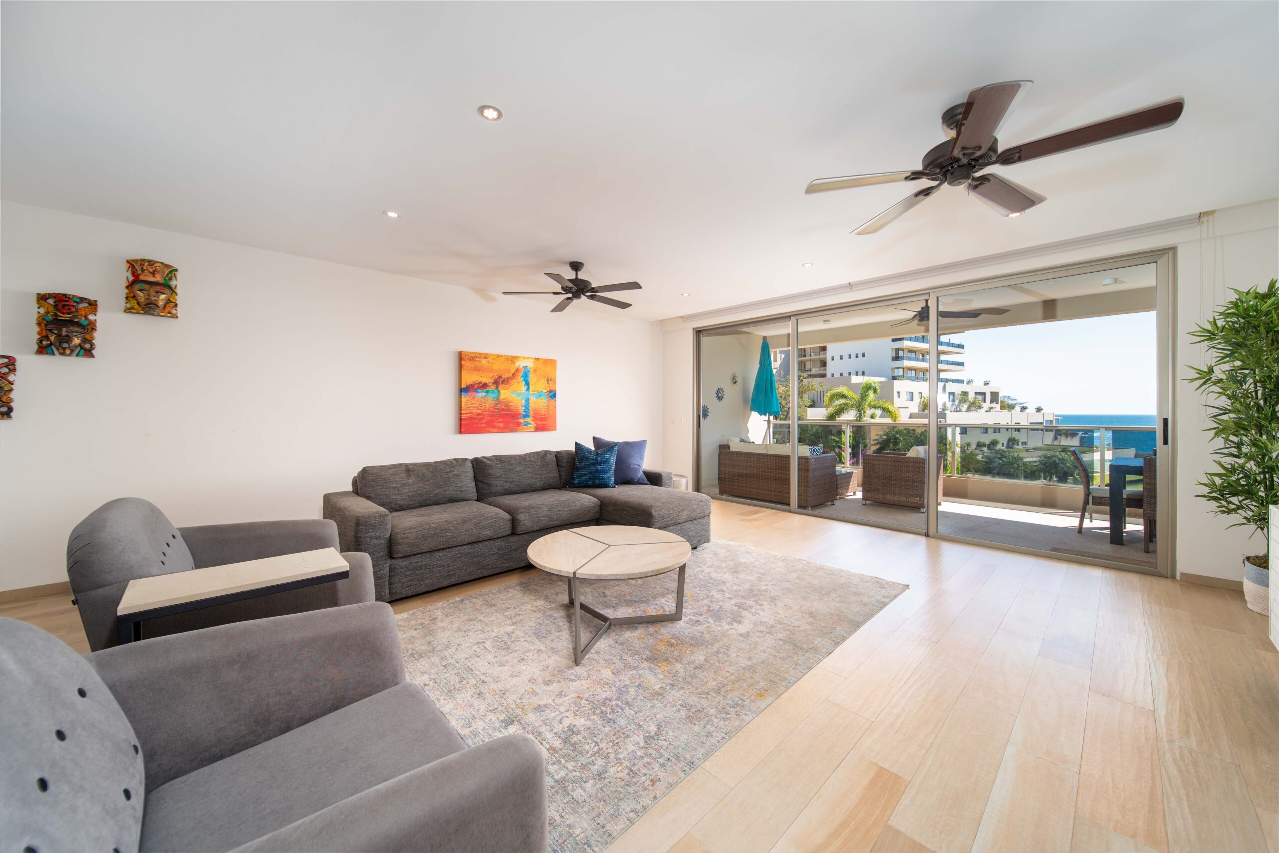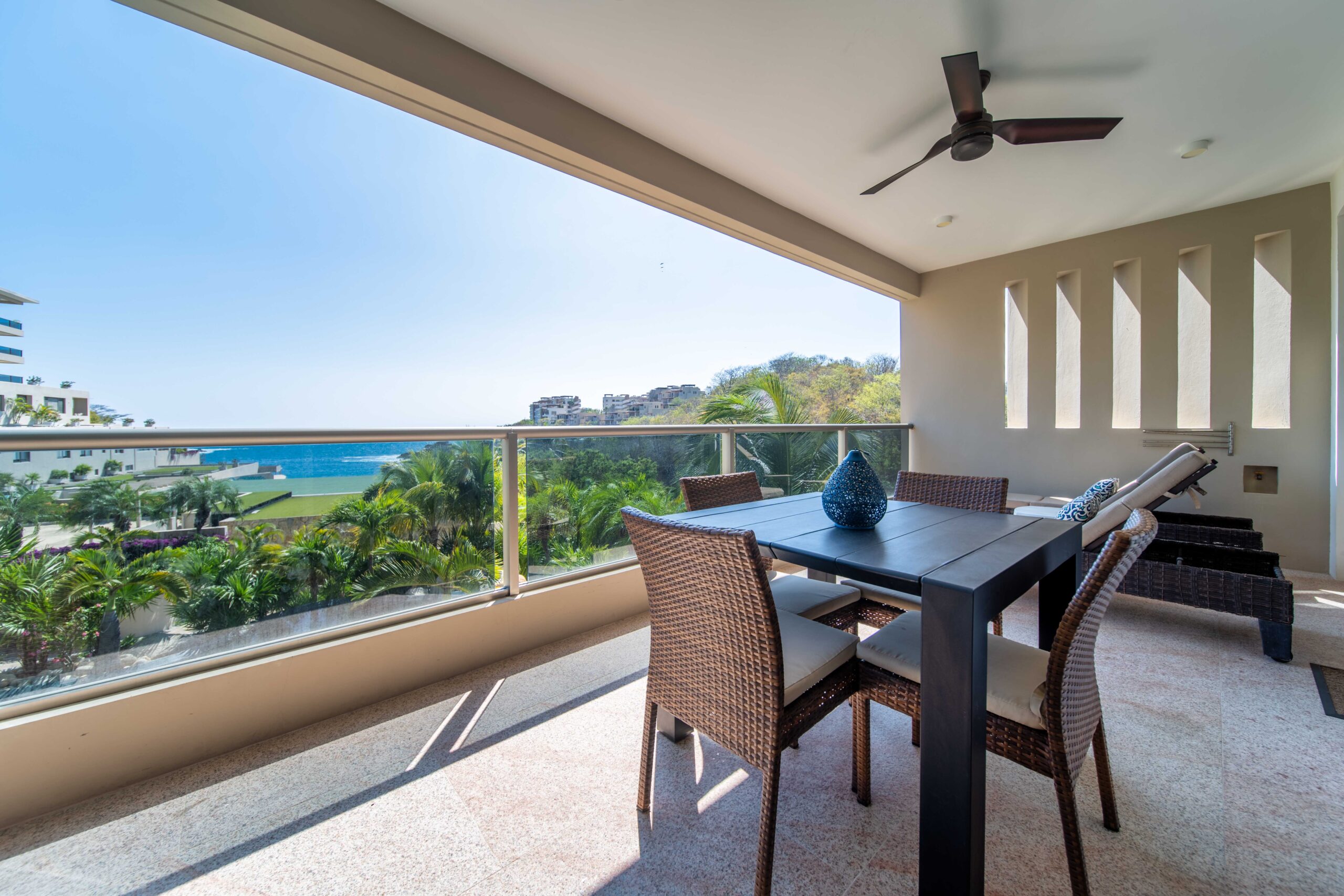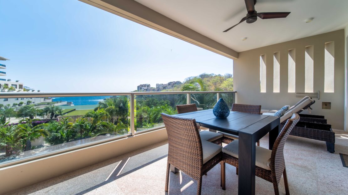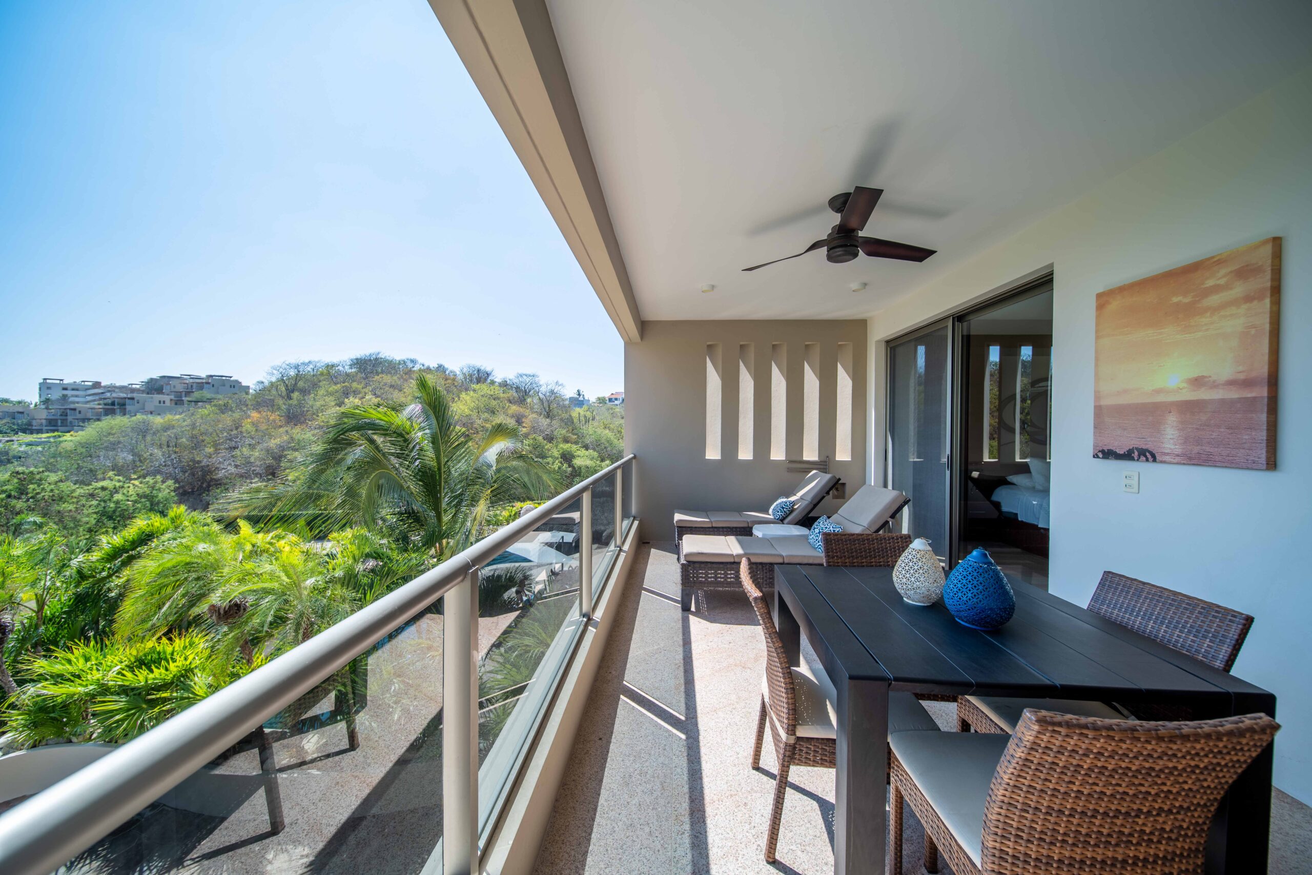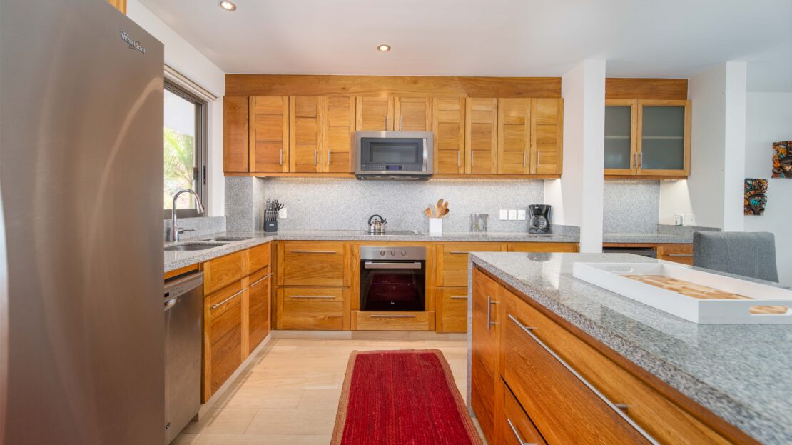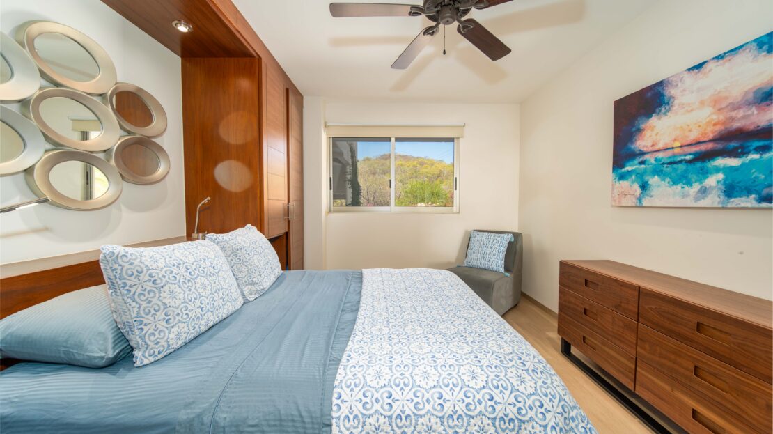 The condo’s interior is designed to blend modern sophistication with comfort. Expansive windows flood the open-concept living space with natural light, creating a seamless flow between the living, dining, and kitchen areas. High-end finishes and stylish furnishings enhance the sense of luxury, while a private terrace provides the perfect space to unwind and take in the tropical surroundings.