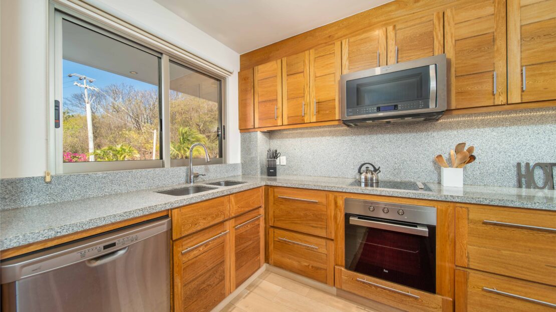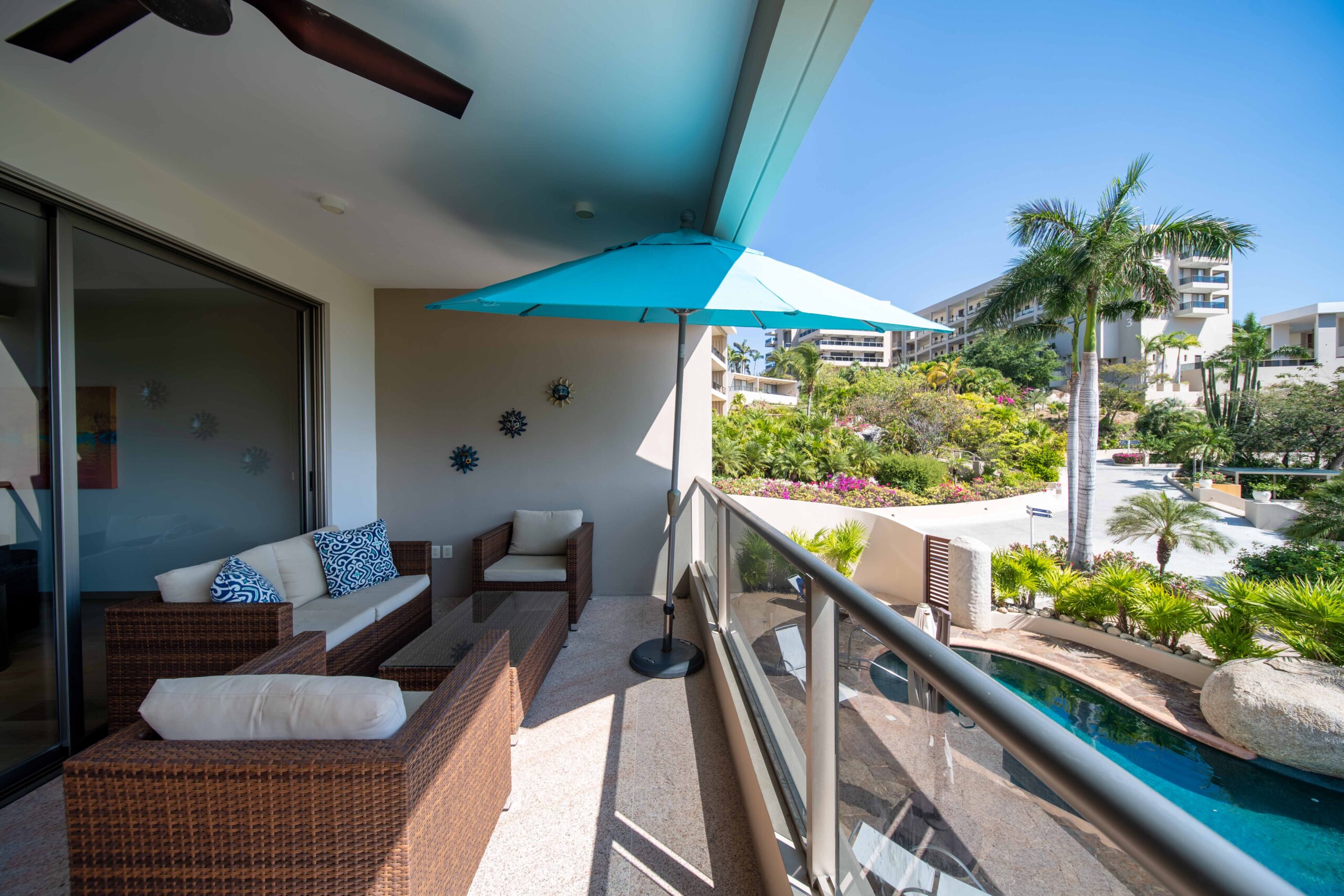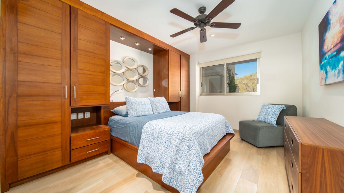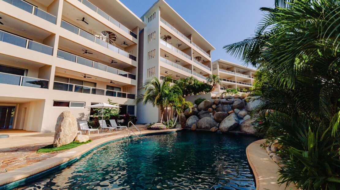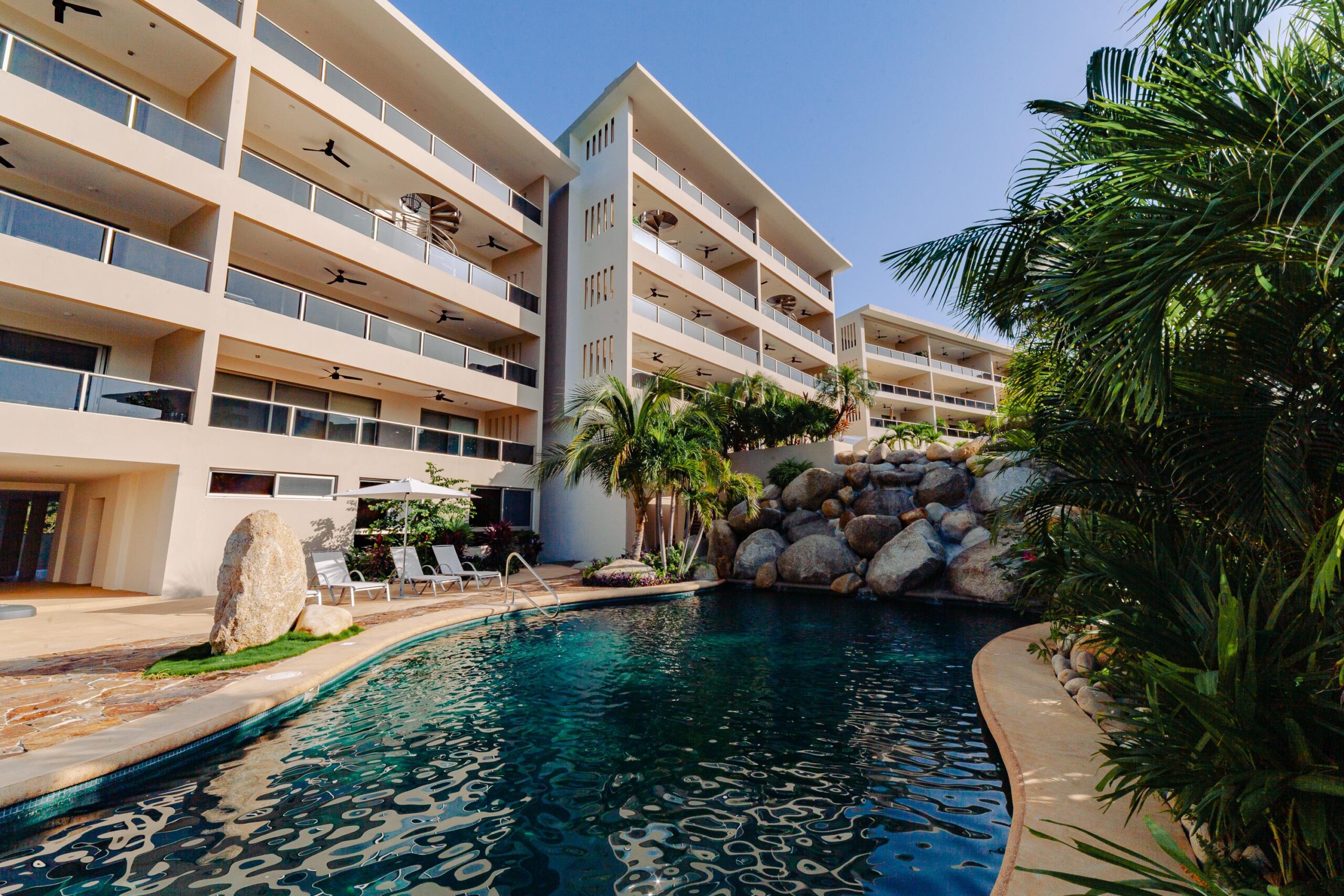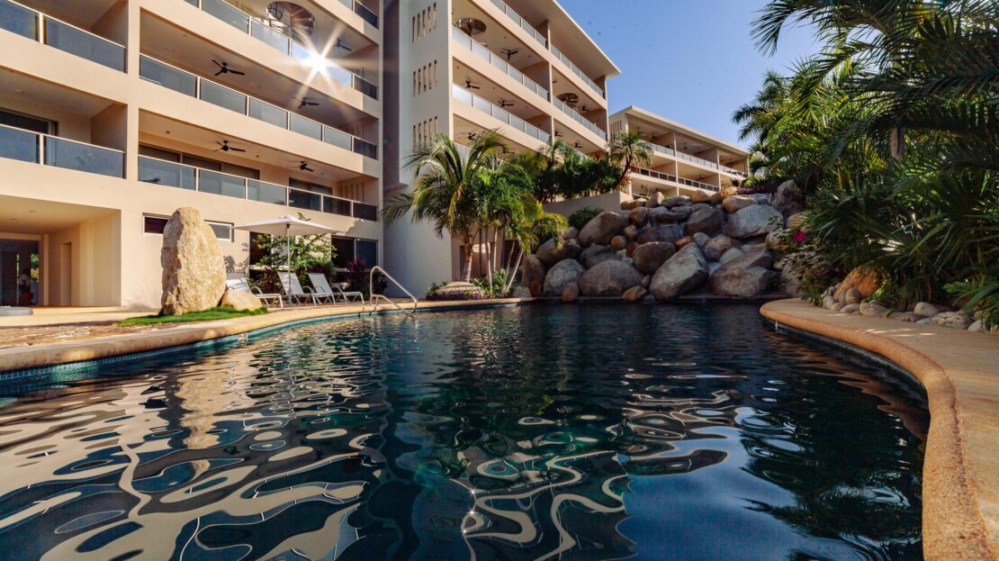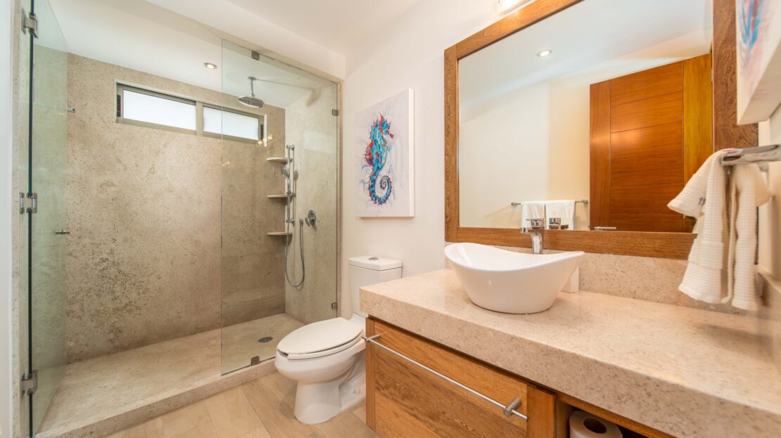 The condo’s interior is designed to blend modern sophistication with comfort. Expansive windows flood the open-concept living space with natural light, creating a seamless flow between the living, dining, and kitchen areas. High-end finishes and stylish furnishings enhance the sense of luxury, while a private terrace provides the perfect space to unwind and take in the tropical surroundings.