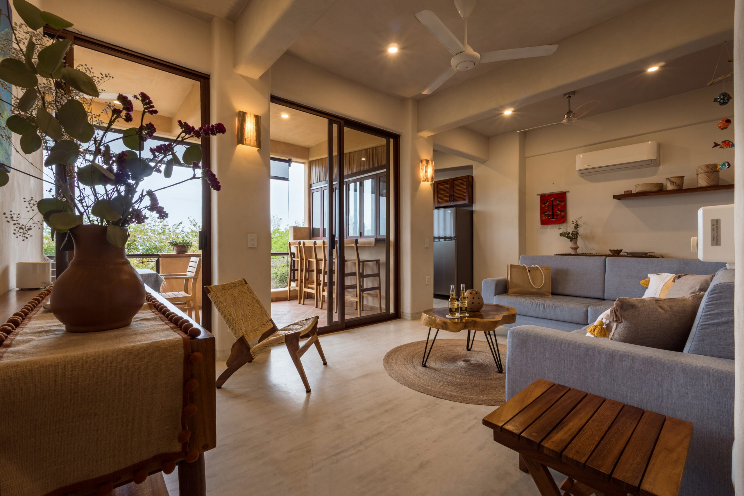 This beautiful 2-bedroom, 2-bathroom unit situated on the 2nd level spans over 1,087 ft2 of living space. Meticulously crafted finishes, including glazed concrete and locally sourced Huanacaxtle woods, adorn its spaces. The added bonus of a lock-off option enhances its appeal, providing excellent rental potential. Expansive floor-to-ceiling windows in the living rooms and bedrooms create a luminous and open ambiance, ensuring that the breathtaking ocean views are a constant presence.