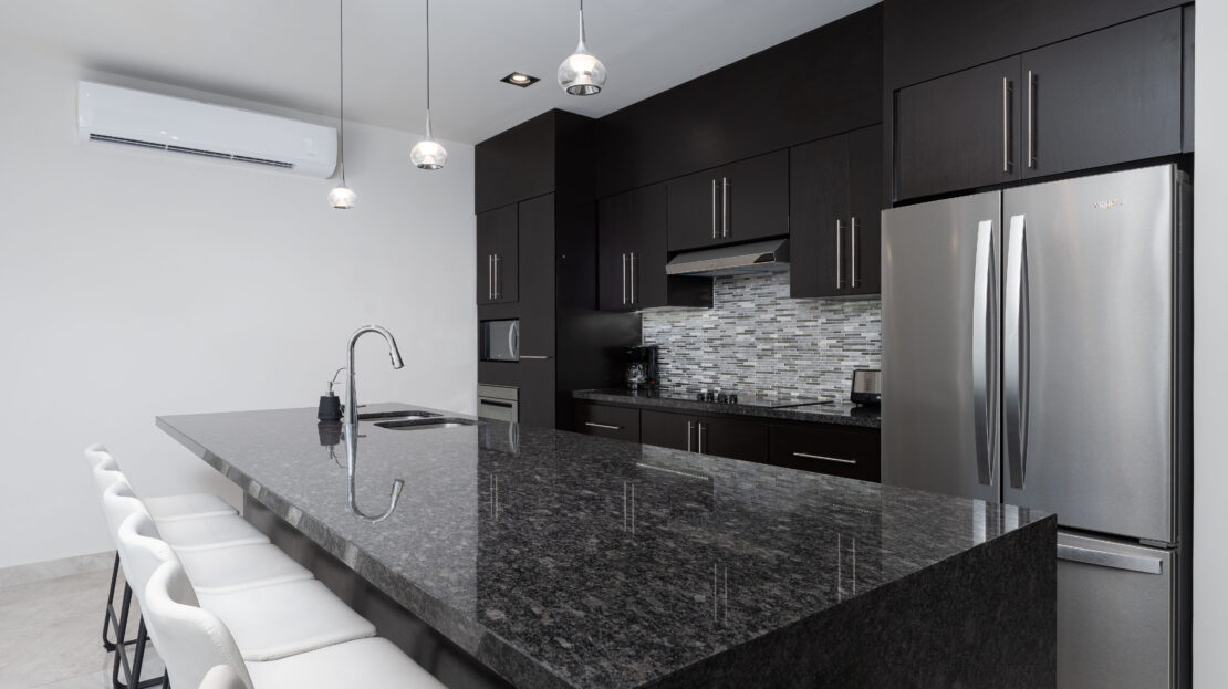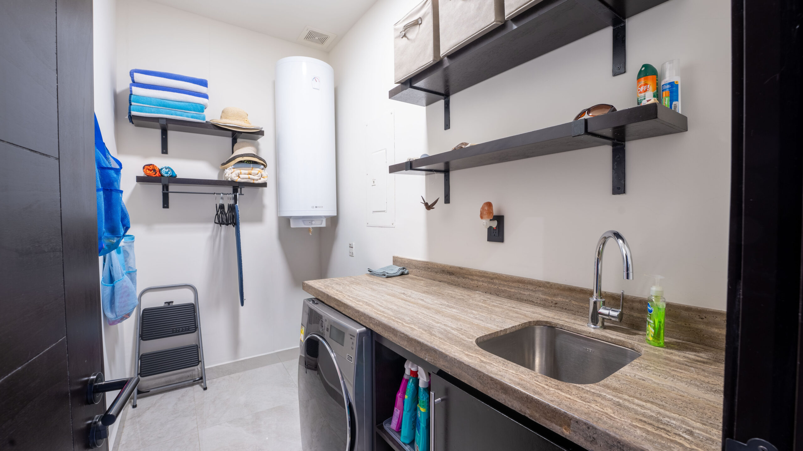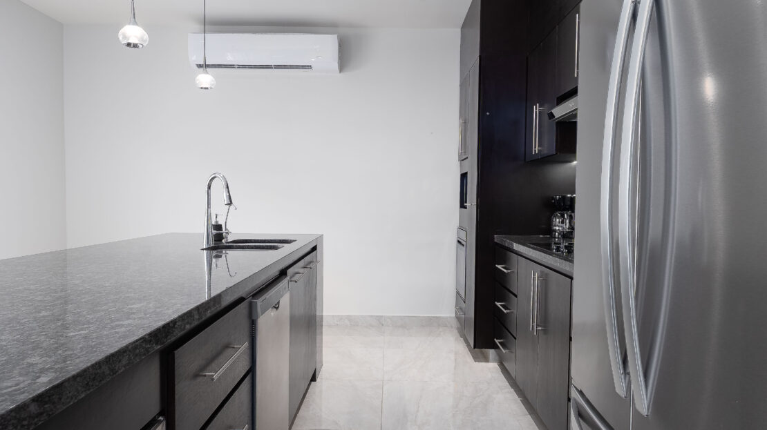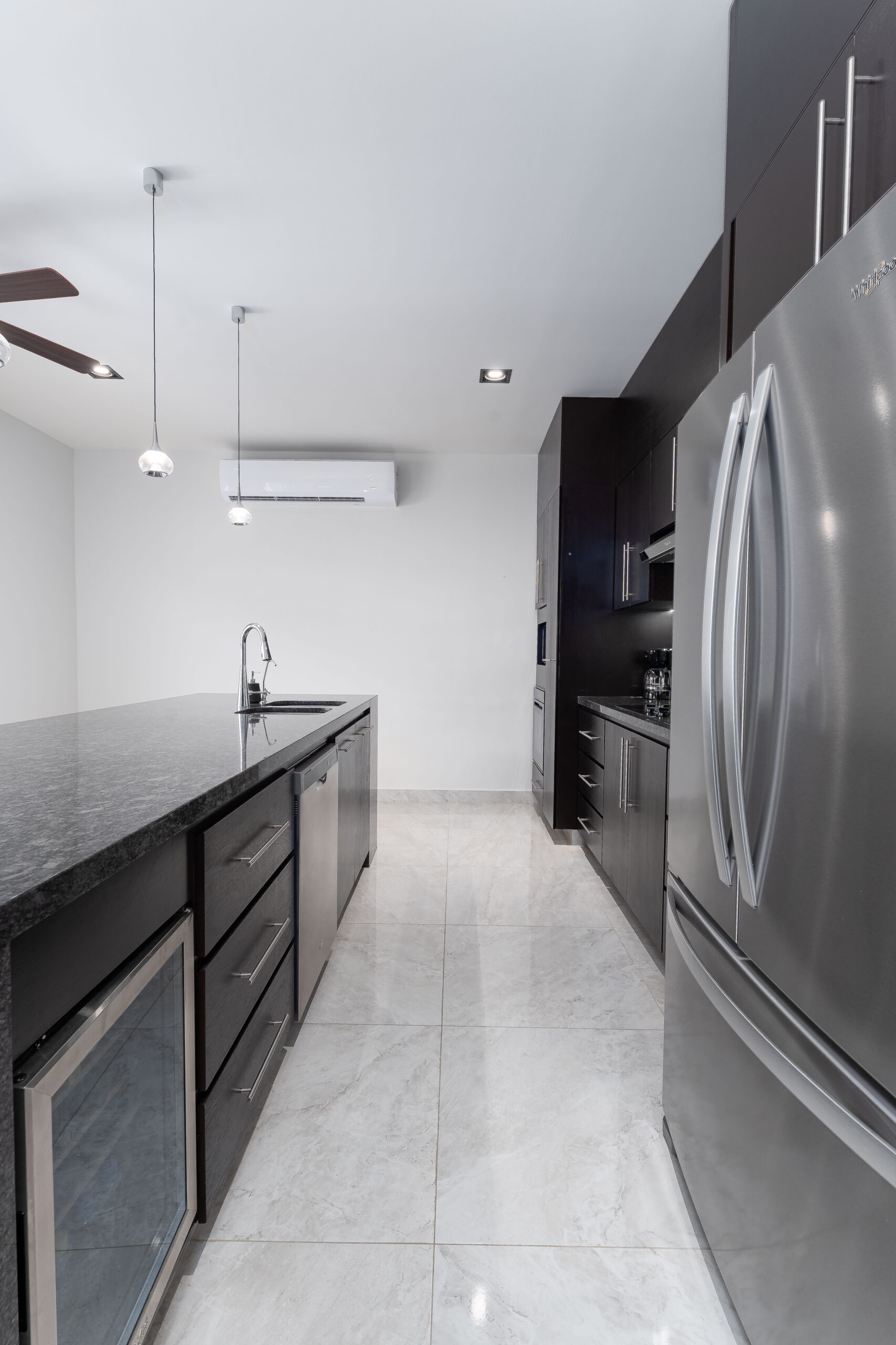 The property is sold unfurnished but includes all appliances and showcases high-end finishes, including beautiful granite countertops. A private laundry room with a convenient combo washer-dryer machine is also included. Plus, the condo is equipped with solar panels, helping you enjoy low-cost electricity bills year-round.