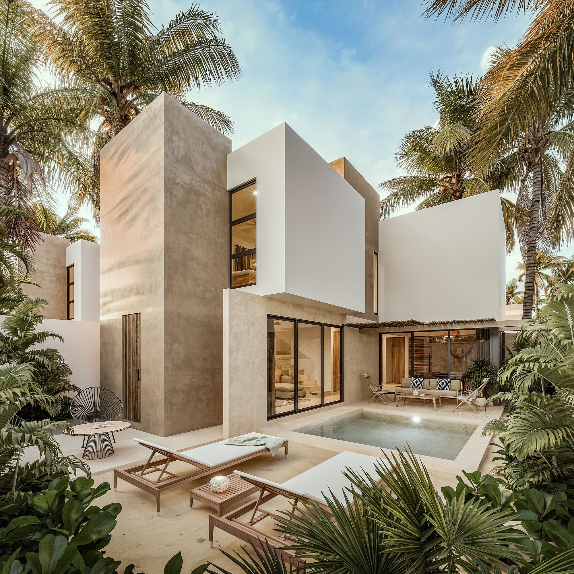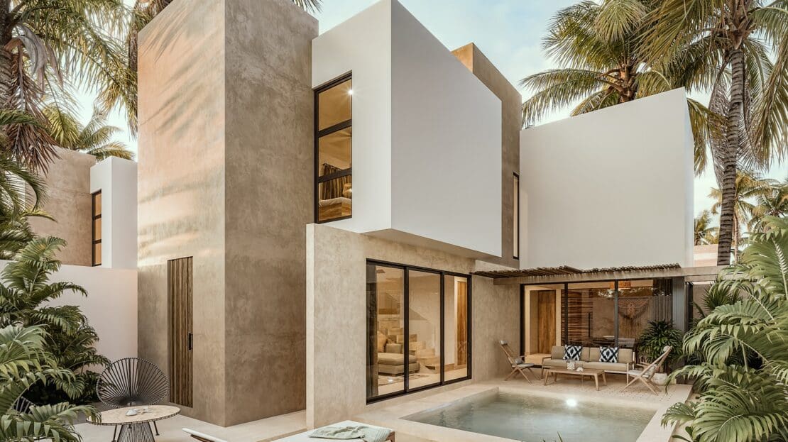 Introducing Modelo Bambú, a 2 level luxury home located in the exclusive Puerto Lindo community at Puerto Palmeras, offering an extraordinary opportunity to live amidst nature in one of Costa Esmeralda’s most desirable locations. Nestled on a 2,415 Ft2 lot, this beautifully designed home boasts 1,574 Ft2 of construction, featuring 3 spacious bedrooms, 3.5 bathrooms, and an 82 Ft2 terrace perfect for outdoor relaxation. With its private pool and convenient laundry area, Modelo Bambú effortlessly blends modern comfort with a lifestyle of luxury and tranquility.
