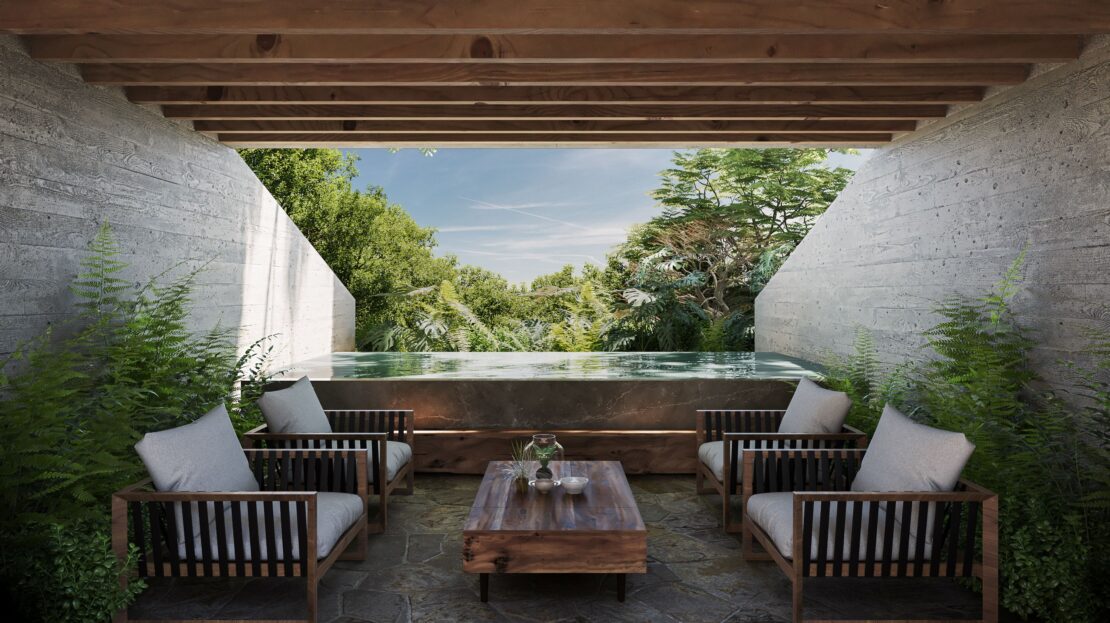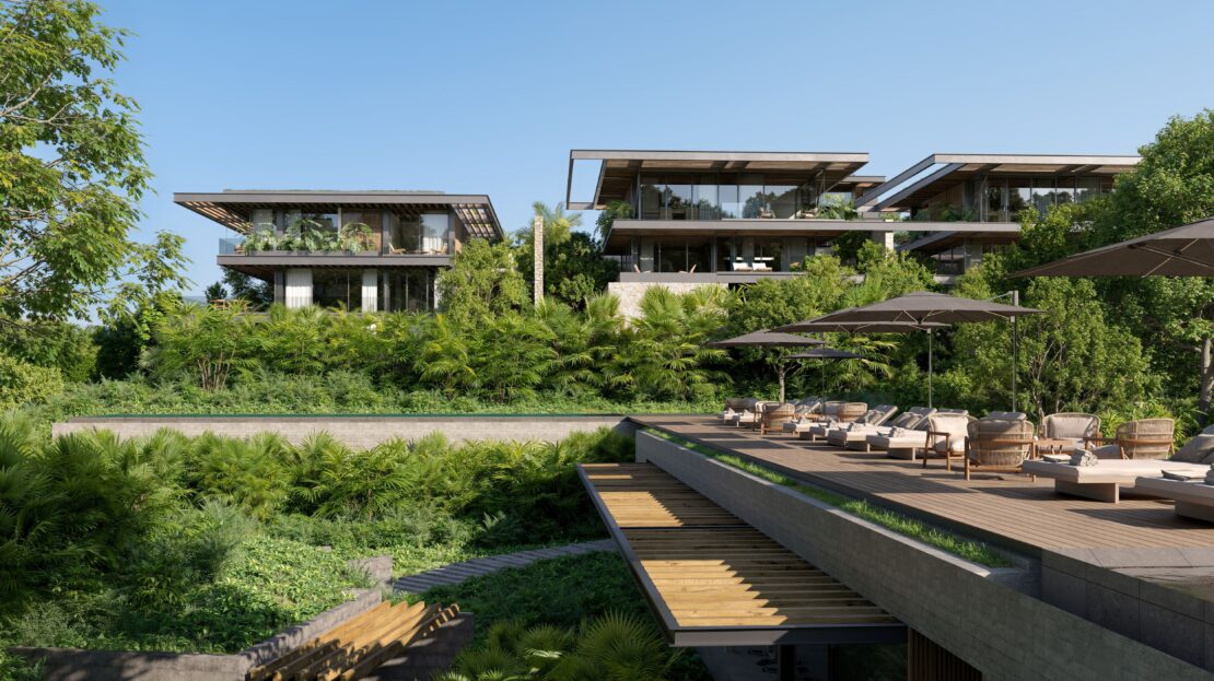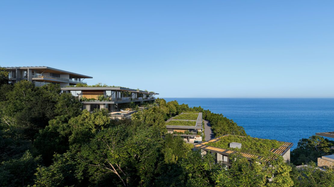 Each villa features sweeping ocean views, spacious indoor-outdoor living, travertine marble floors, Macuil wood cabinetry, expansive terraces, and private infinity pools. Thoughtful design elements—like vegetated roofs, solar strategies, and on-site water treatment—reflect ALMA’s commitment to environmental harmony.