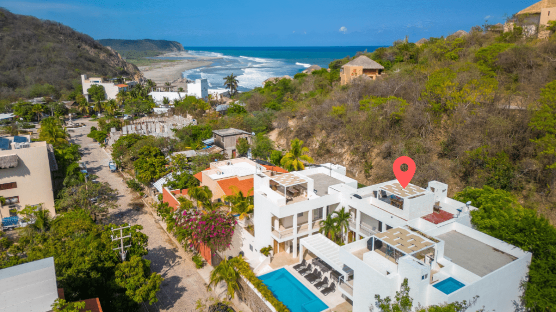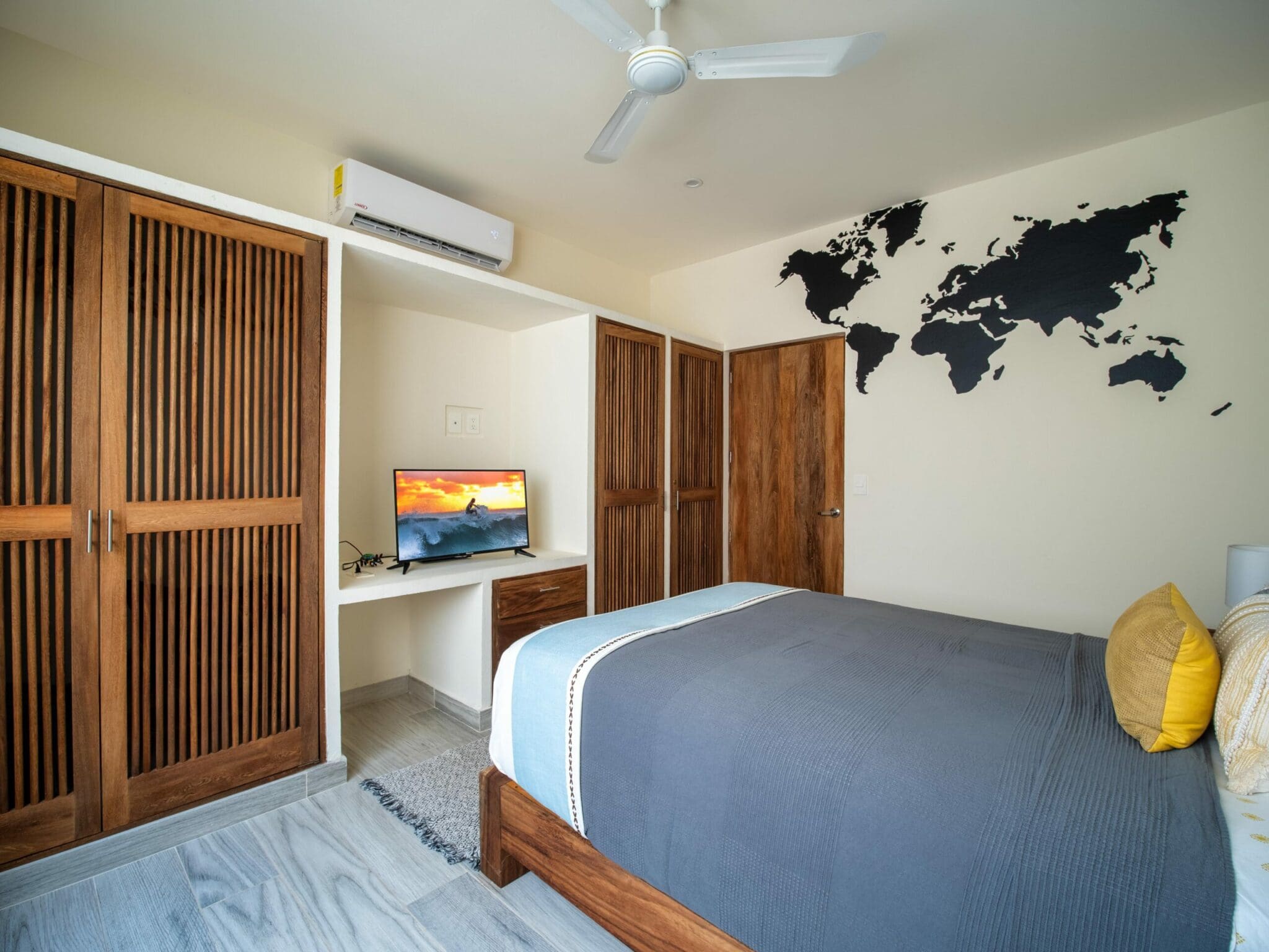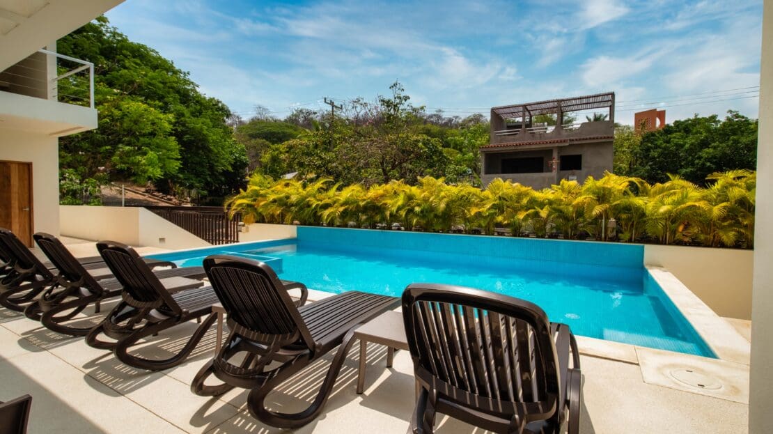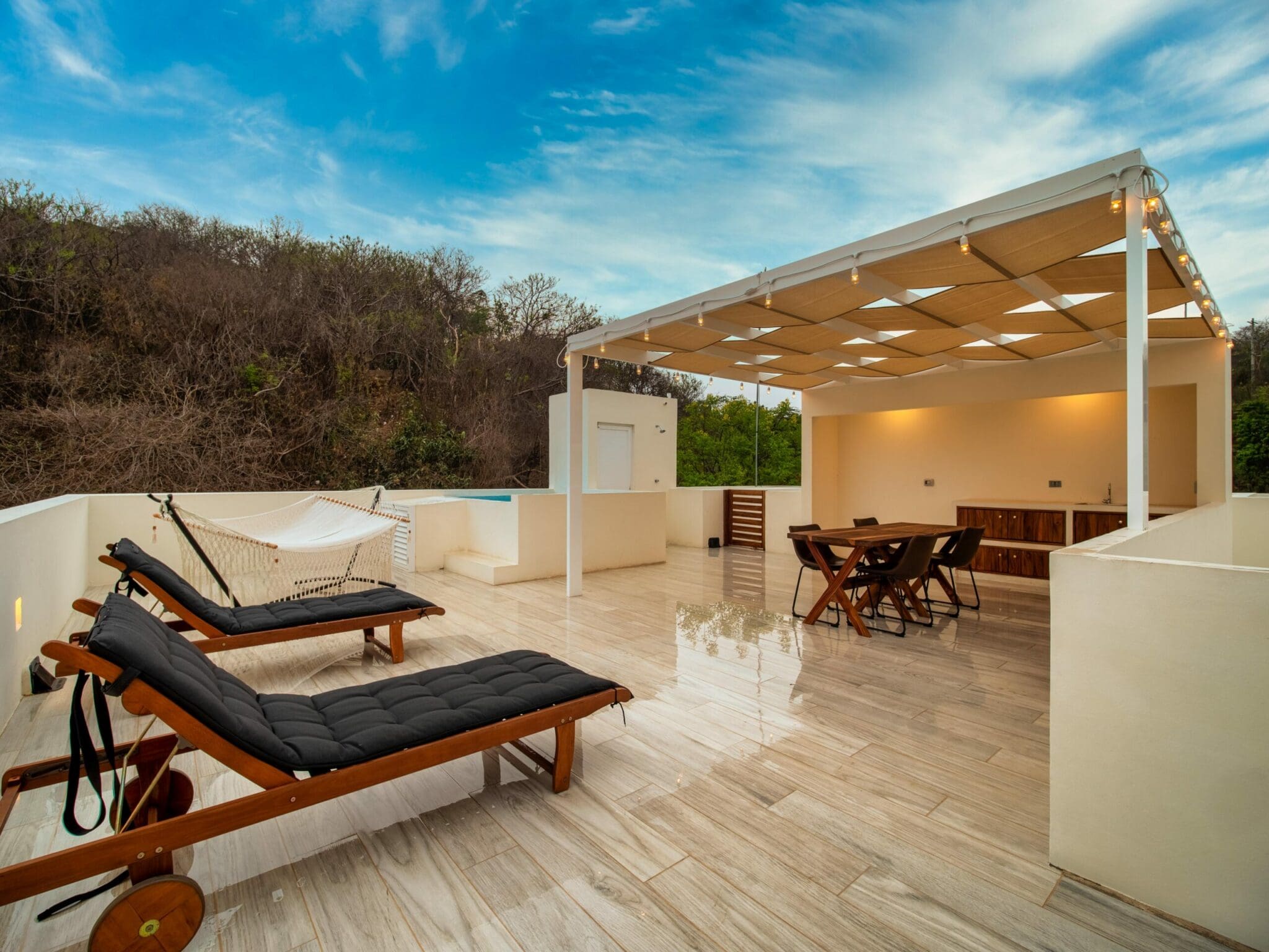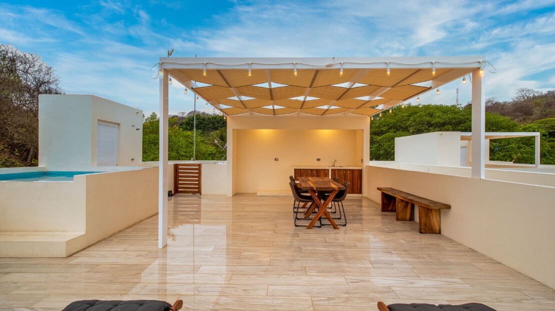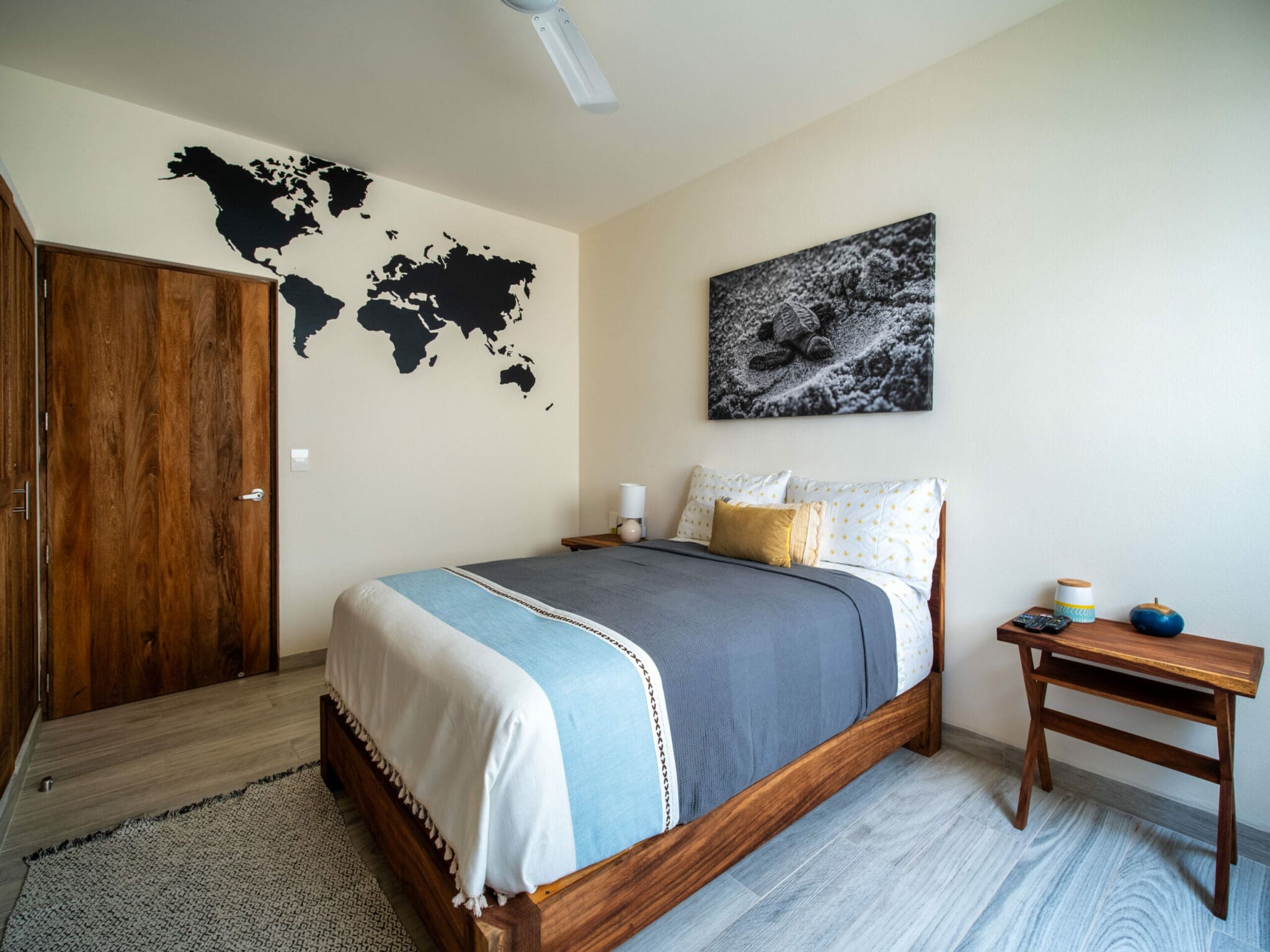 Relaxation awaits by the common area pool or on your private rooftop terrace, complete with a plunge pool and lounging sundeck ideal for entertaining guests. Adorned with beautiful Huanacaxtle wood finishes, the fully equipped kitchen with quartz countertops provides the perfect setting for culinary adventures.