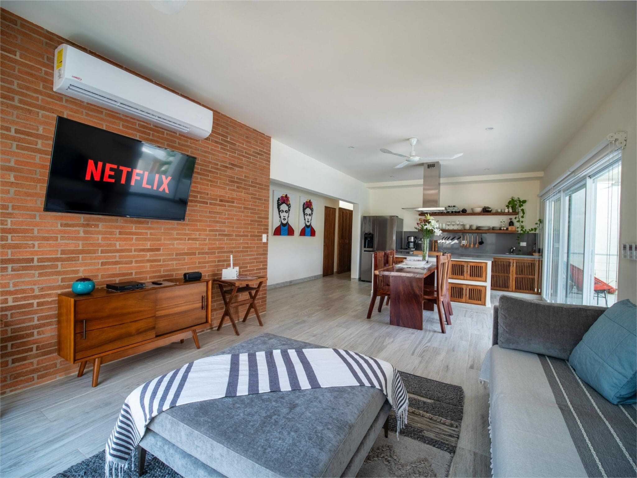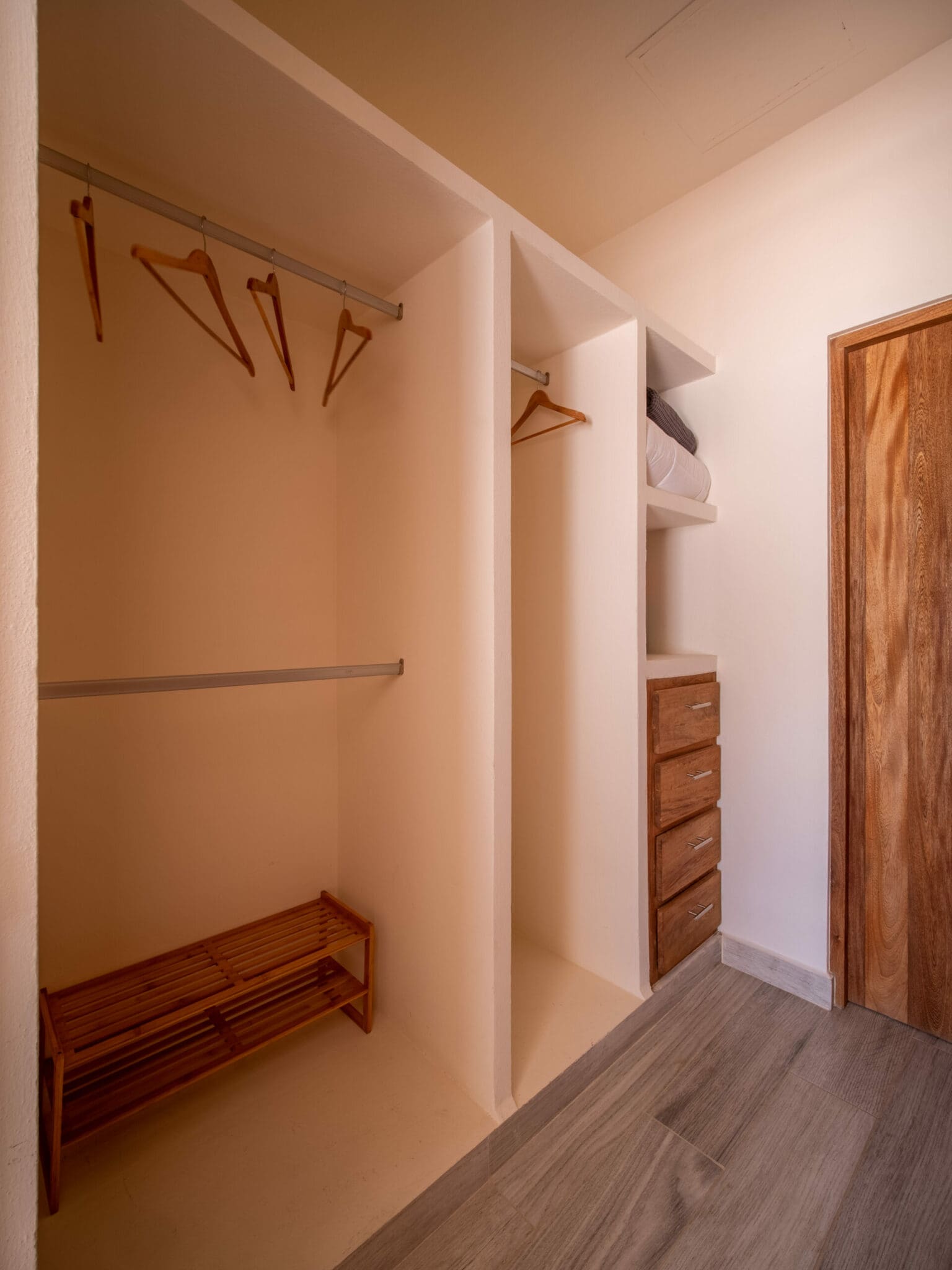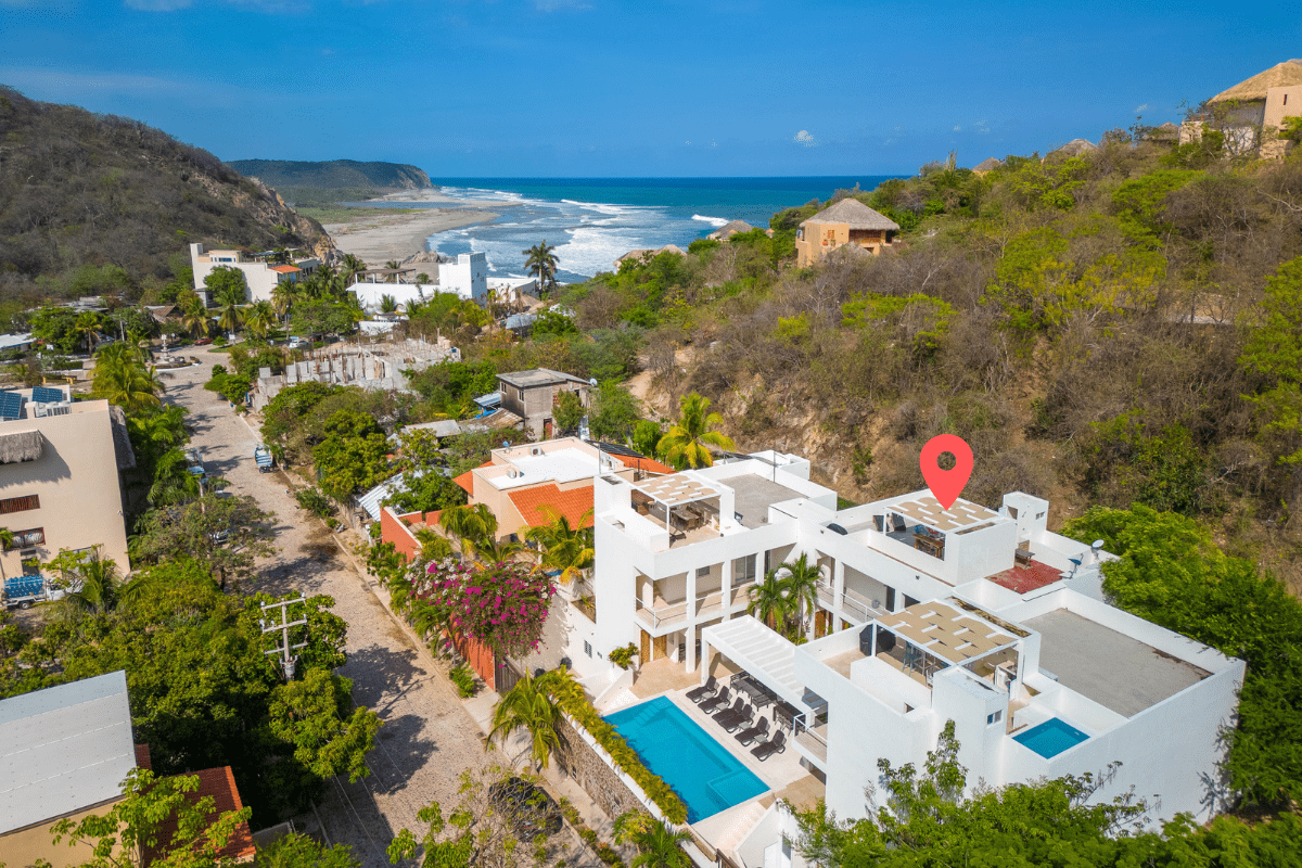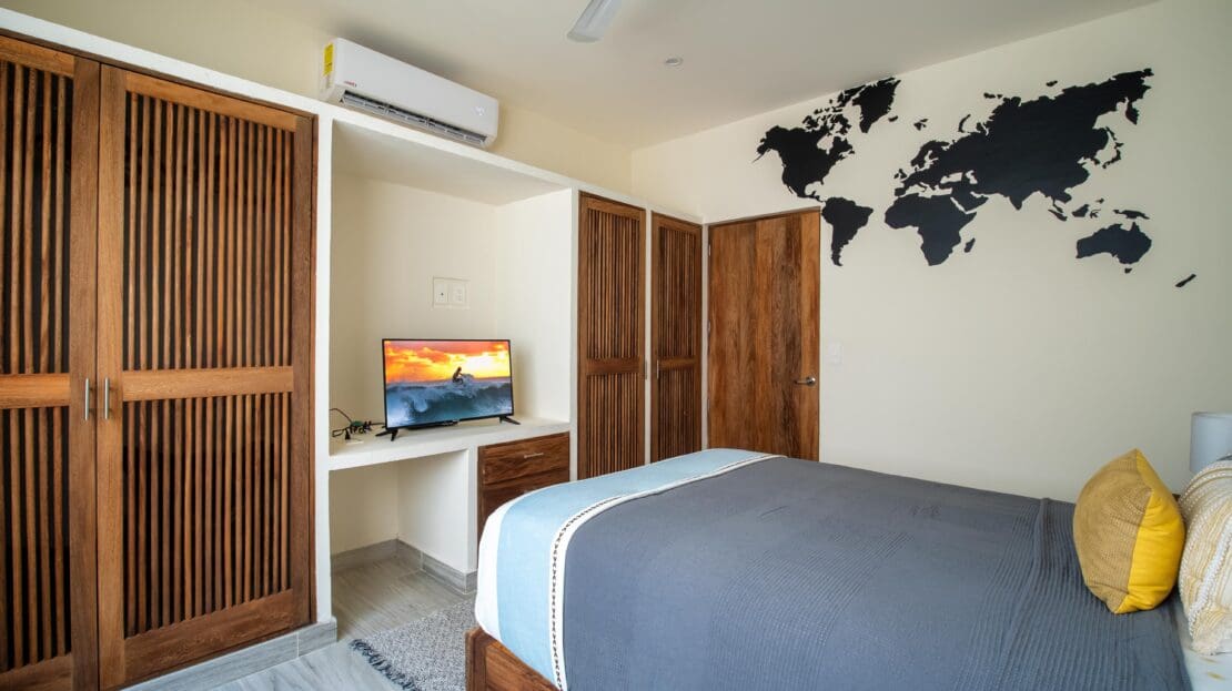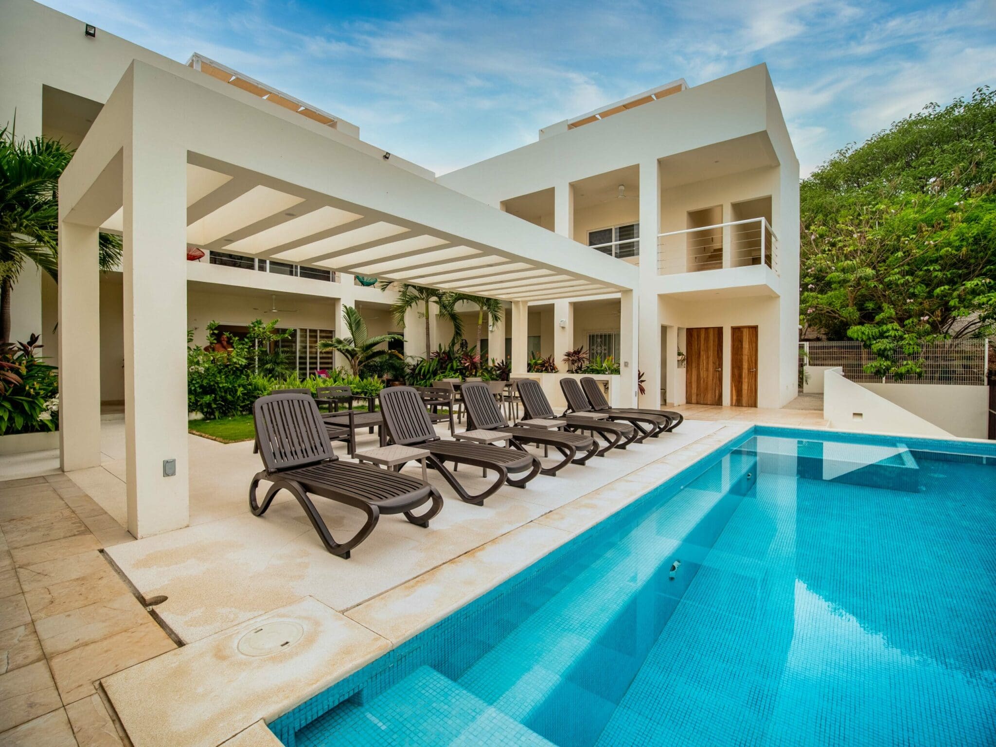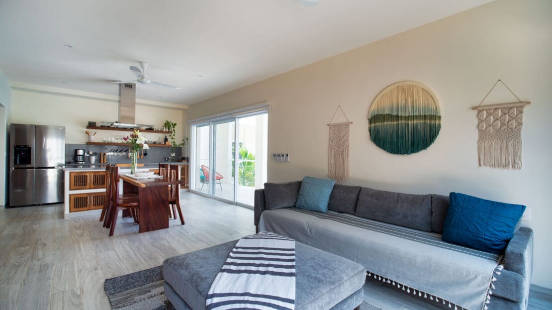 Relaxation awaits by the common area pool or on your private rooftop terrace, complete with a plunge pool and lounging sundeck ideal for entertaining guests. Adorned with beautiful Huanacaxtle wood finishes, the fully equipped kitchen with quartz countertops provides the perfect setting for culinary adventures.
