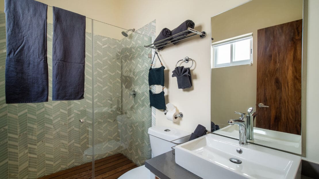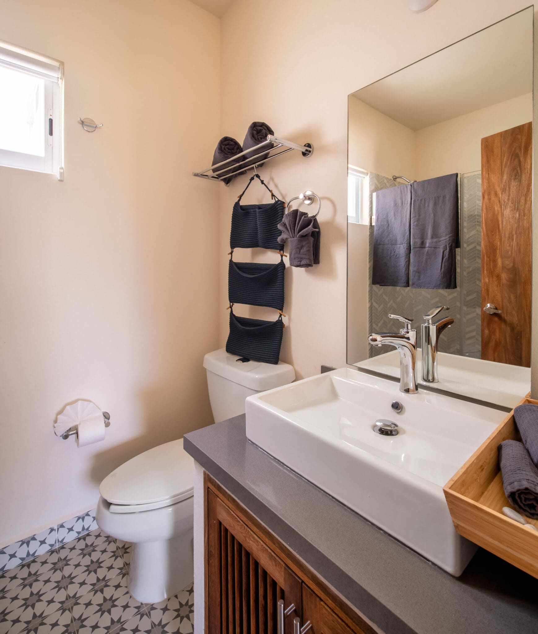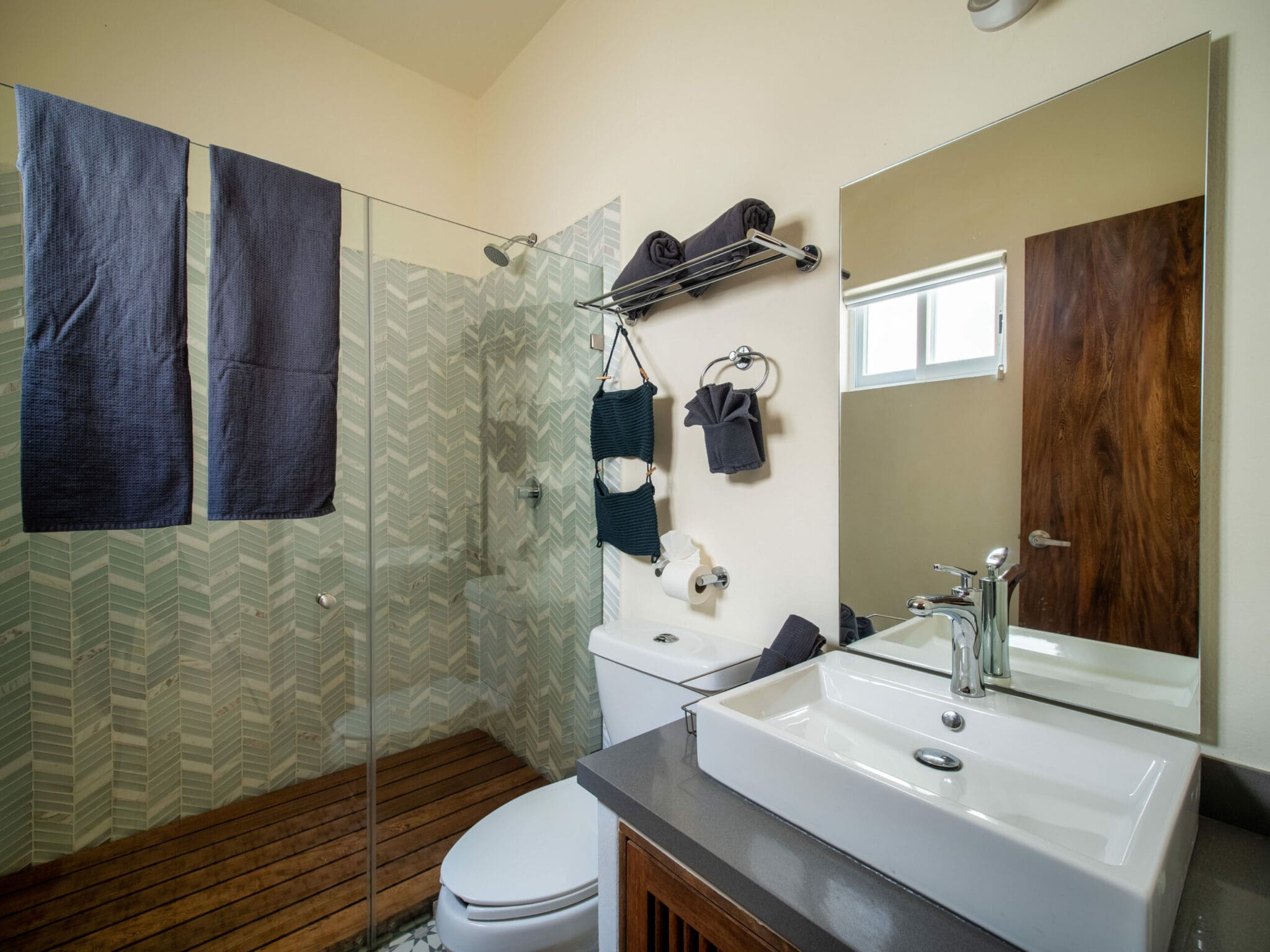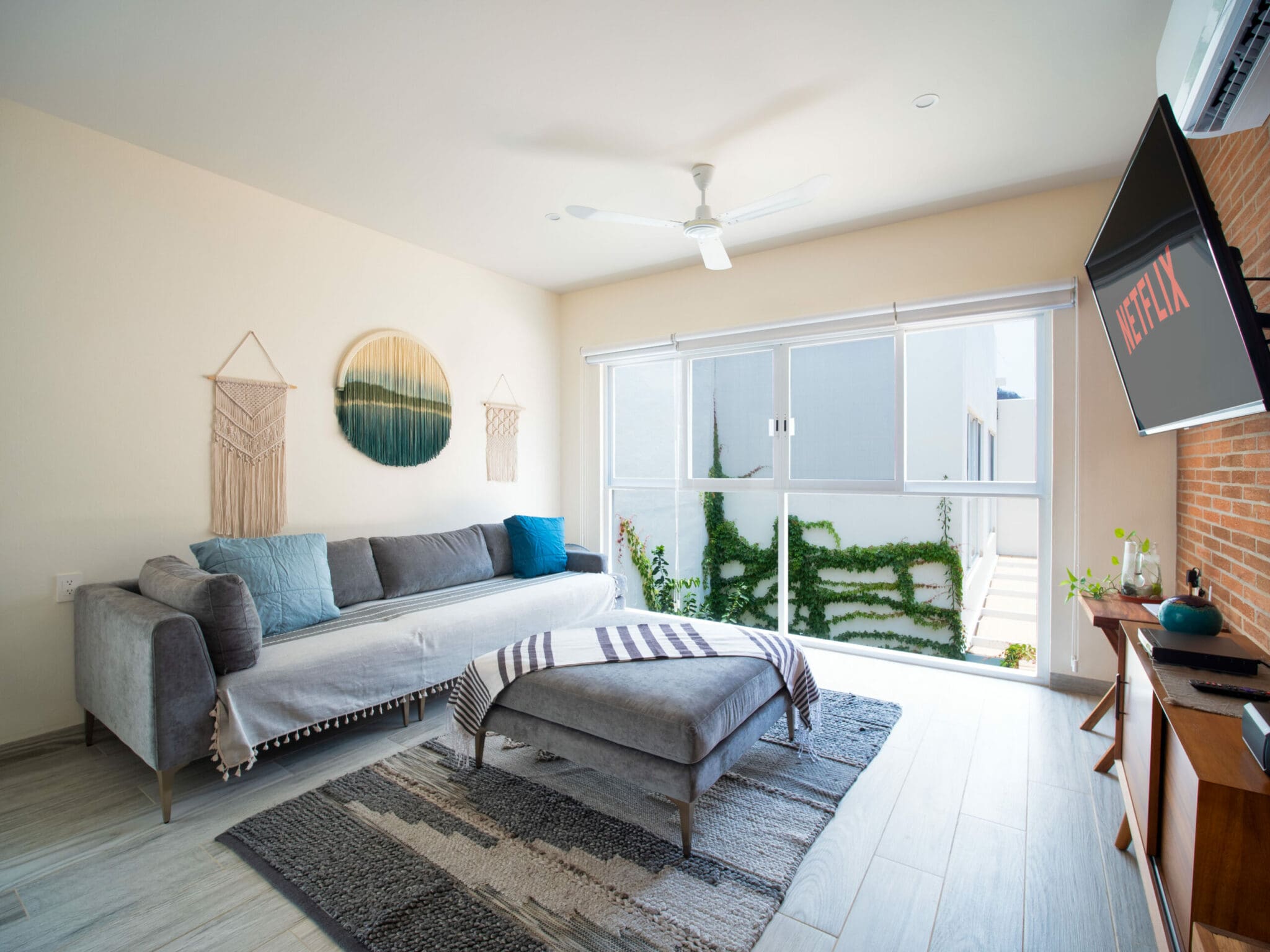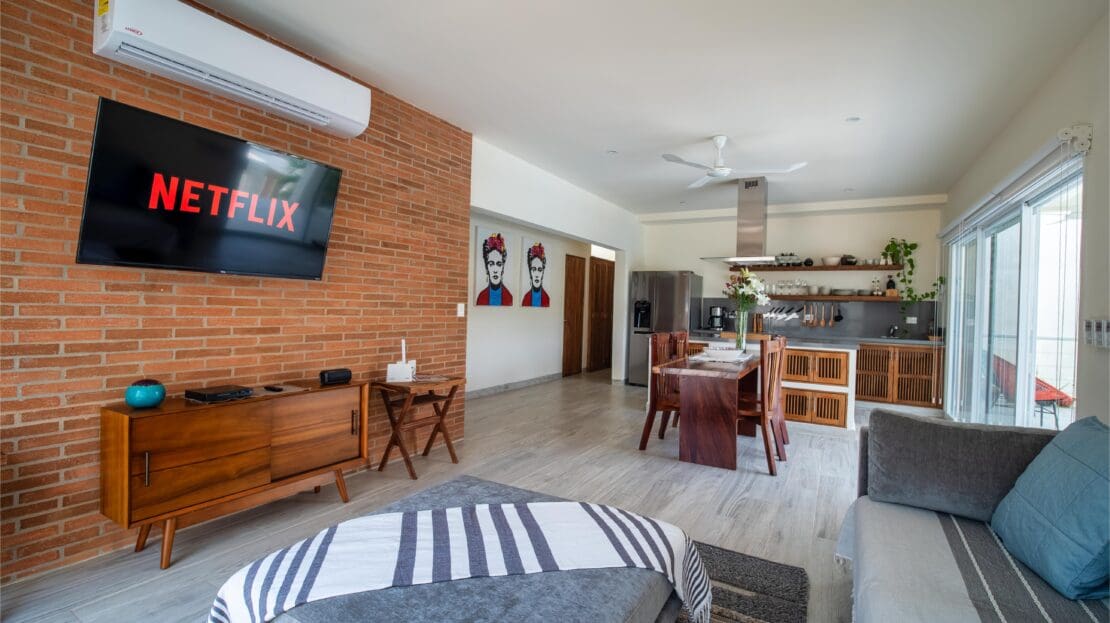 Relaxation awaits by the common area pool or on your private rooftop terrace, complete with a plunge pool and lounging sundeck ideal for entertaining guests. Adorned with beautiful Huanacaxtle wood finishes, the fully equipped kitchen with quartz countertops provides the perfect setting for culinary adventures.
