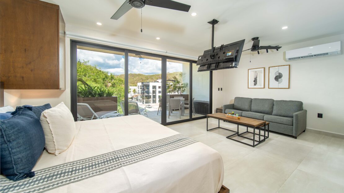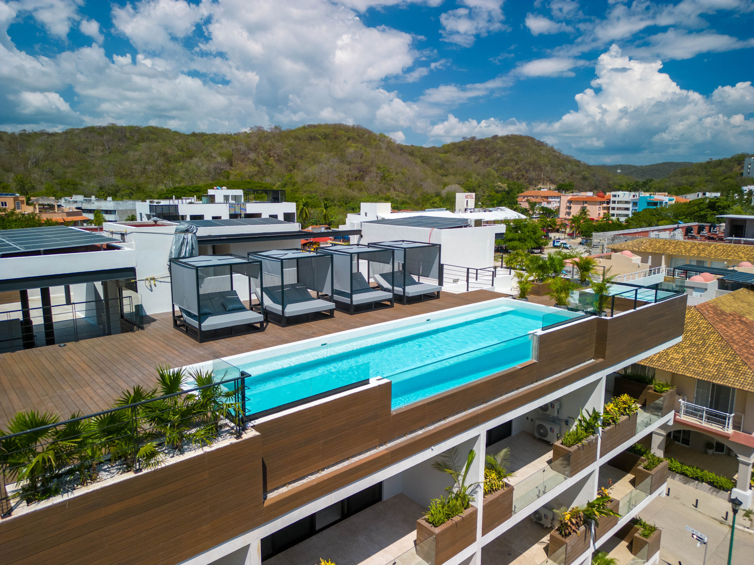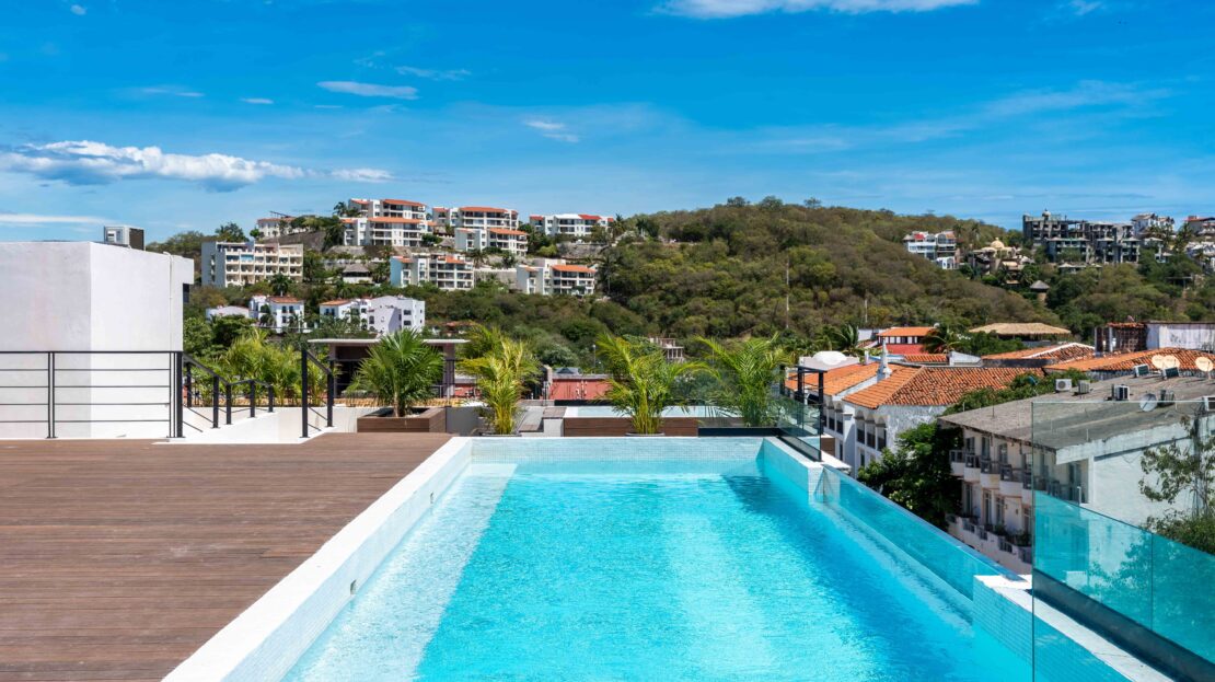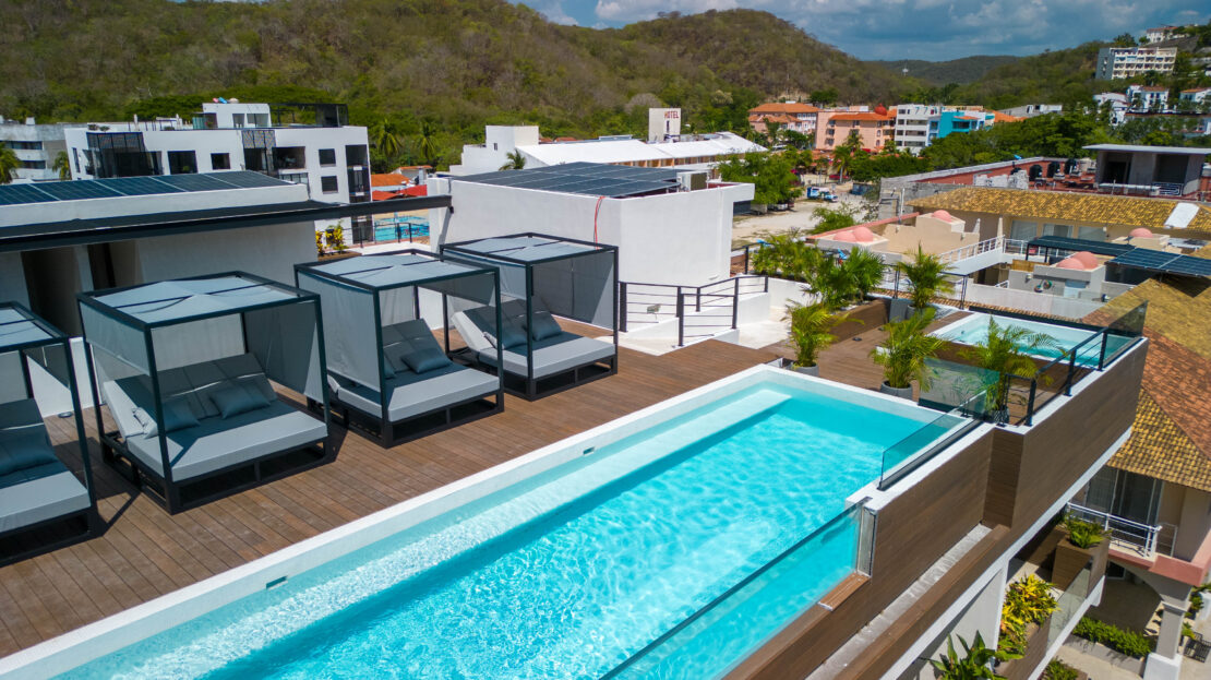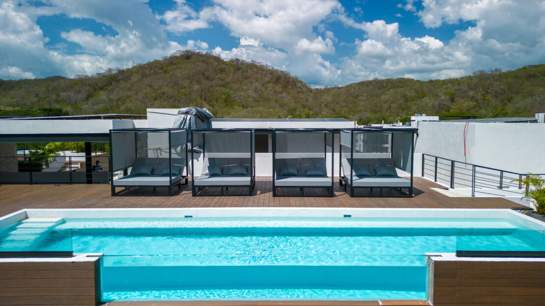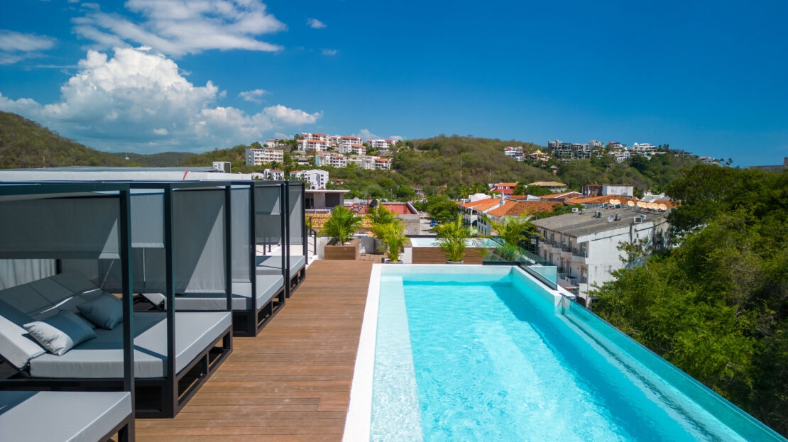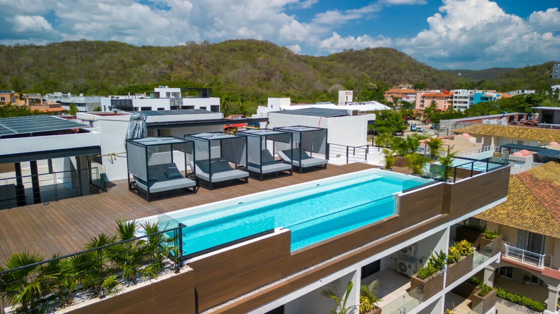 Life at Zibá Condos & Suites is enhanced by exceptional building amenities. The rooftop offers expansive ocean and mountain views, an infinity pool, multiple plunge pools, shaded lounging areas, and spaces ideal for relaxing or gathering with friends. It’s the perfect setting to unwind and enjoy the coastal scenery from sunrise to sunset.