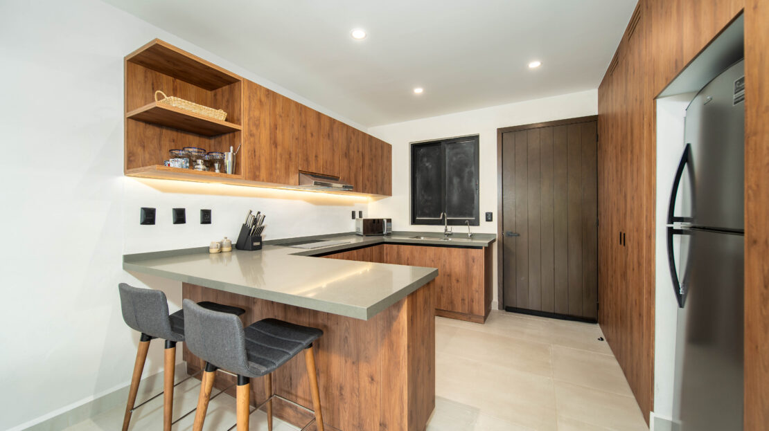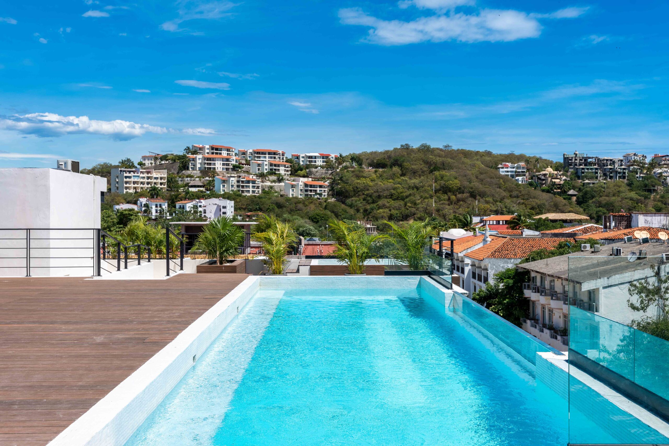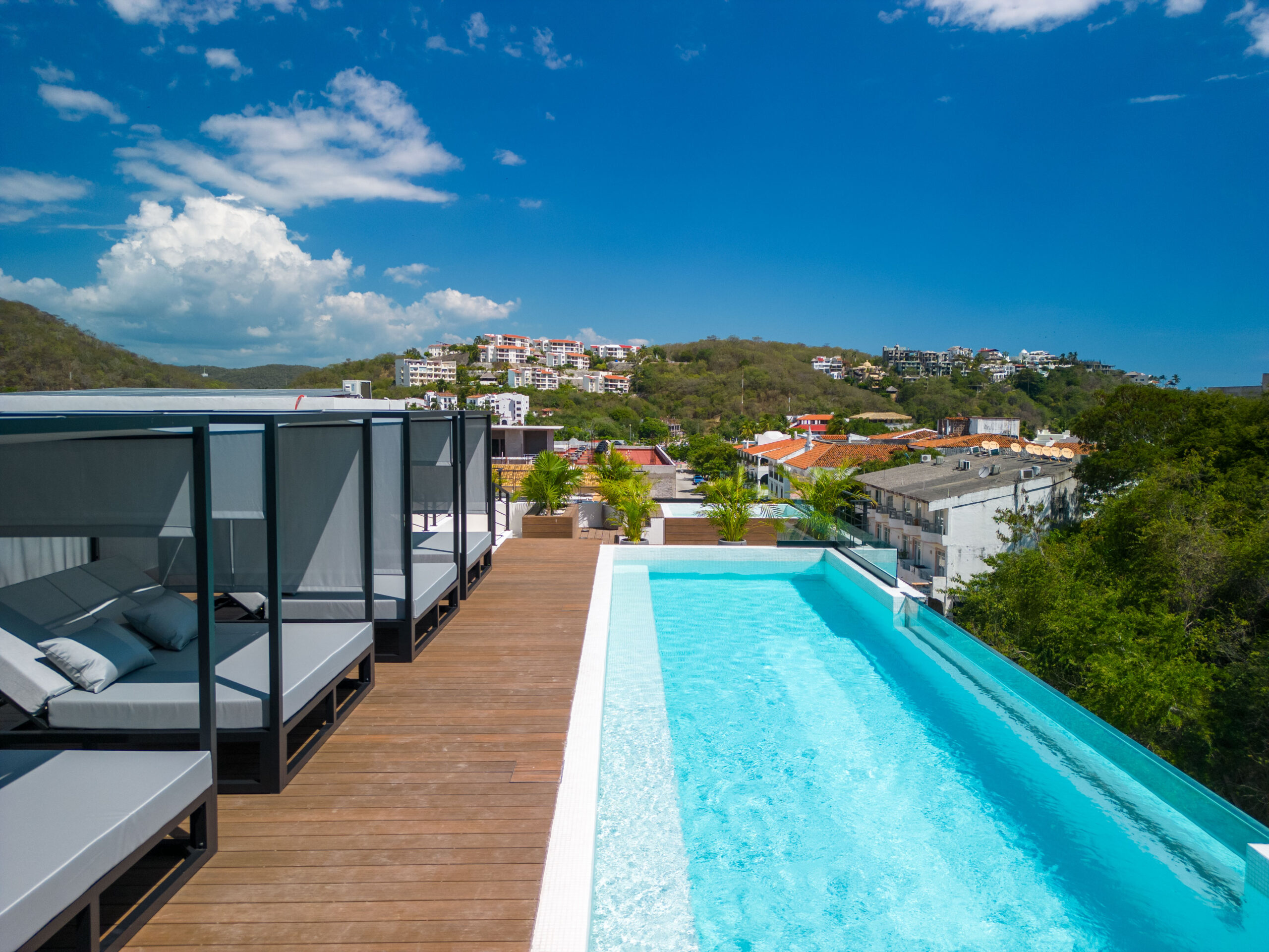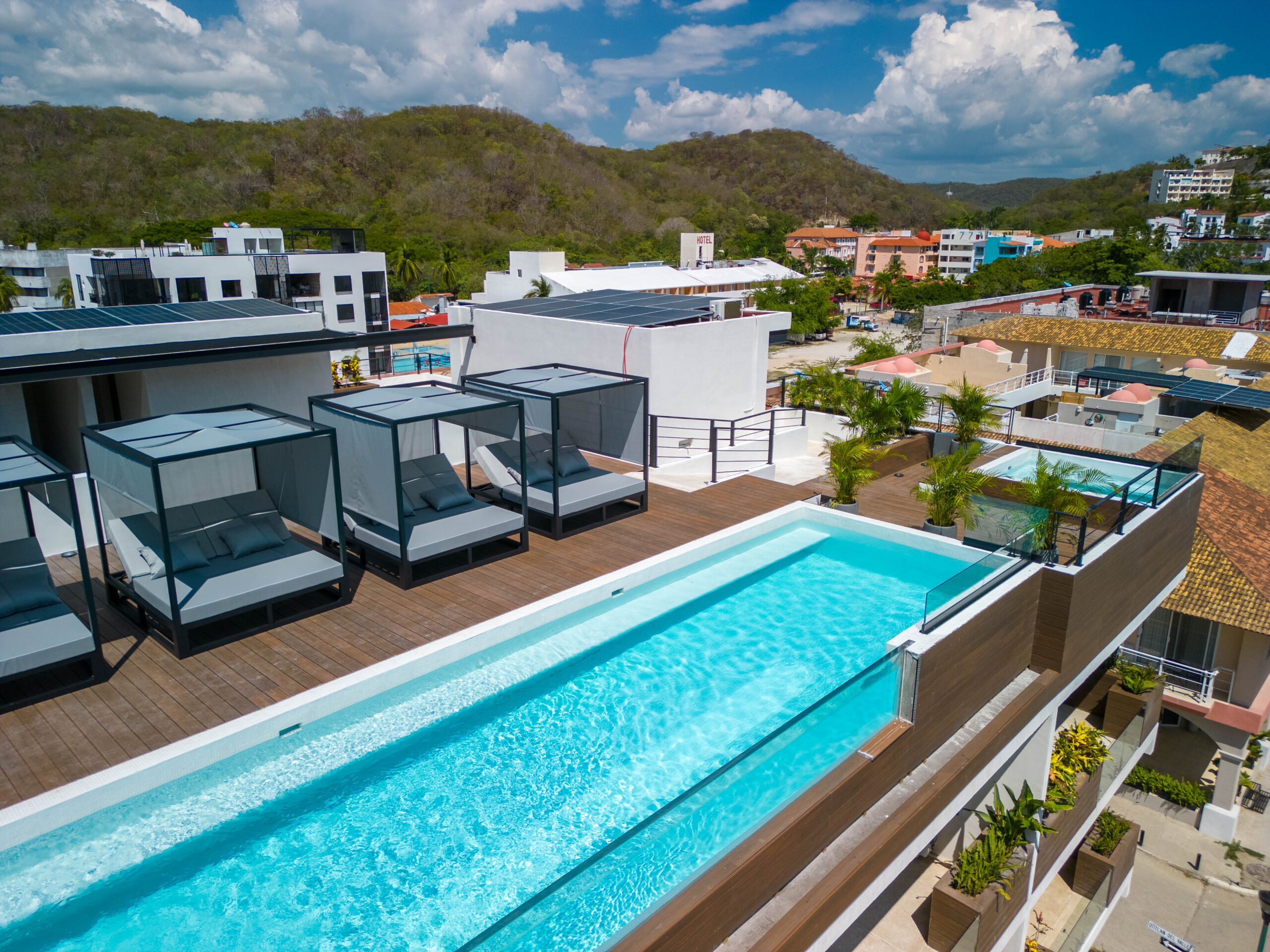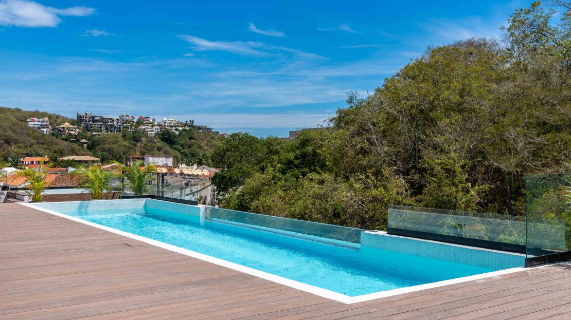 Life at Zibá Condos & Suites is enhanced by exceptional building amenities. The rooftop offers expansive ocean and mountain views, an infinity pool, multiple plunge pools, shaded lounging areas, and spaces ideal for relaxing or gathering with friends. It’s the perfect setting to unwind and enjoy the coastal scenery from sunrise to sunset.