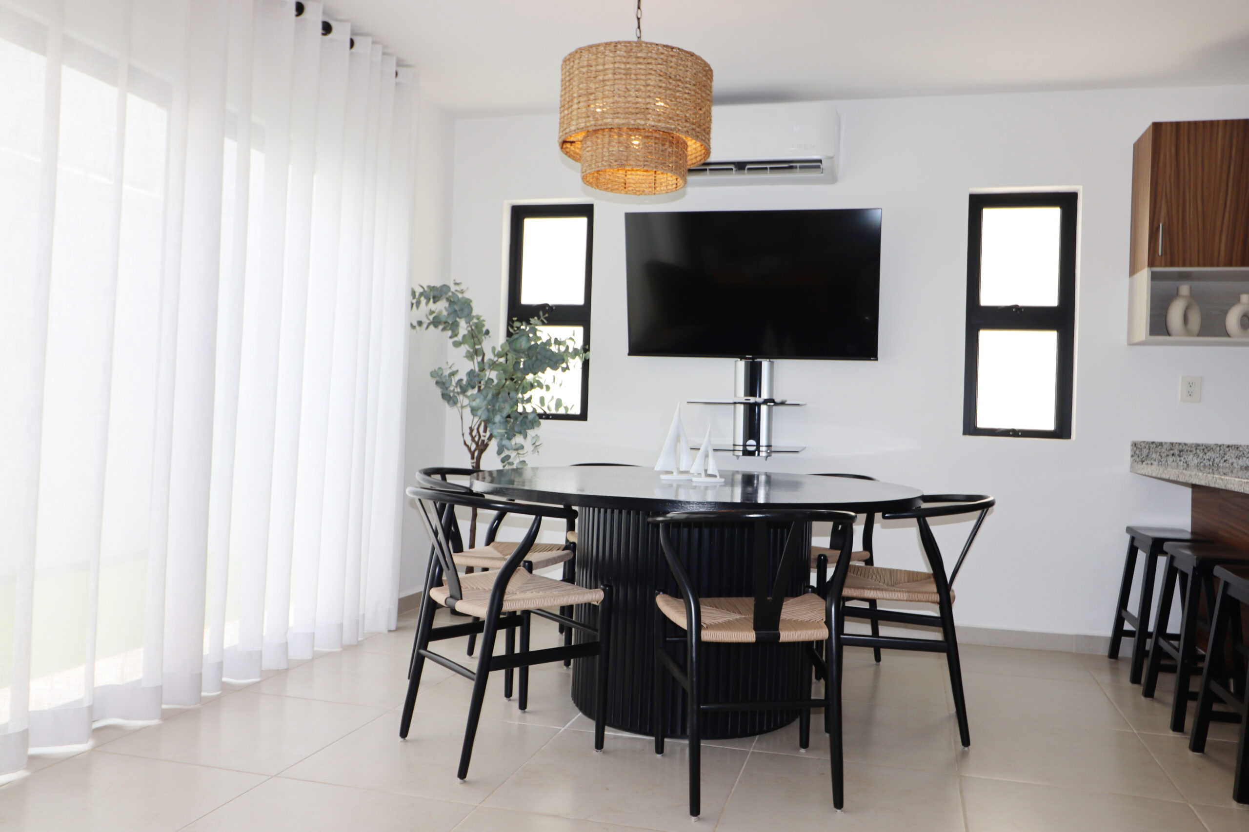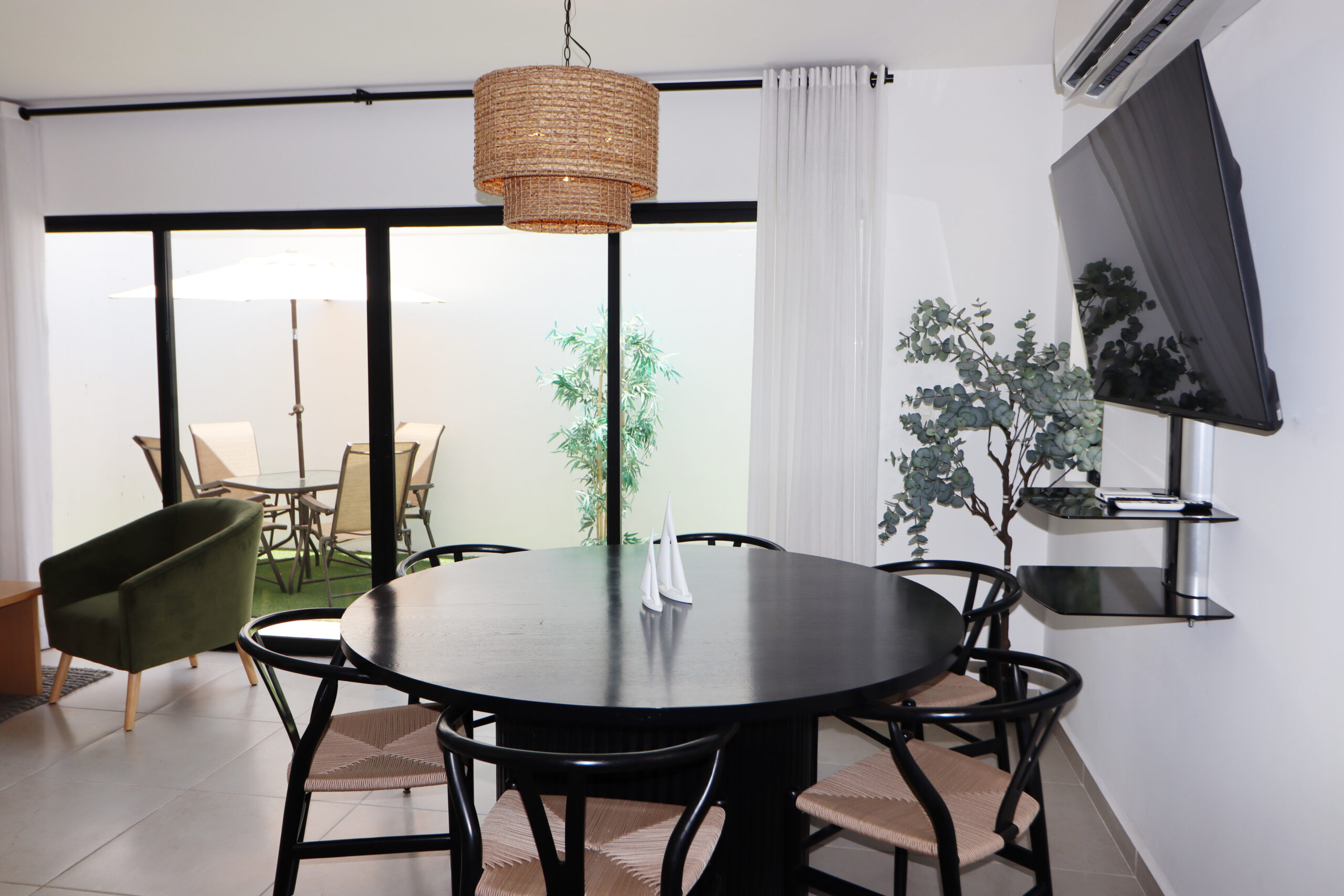 This fully furnished 3-bedroom, 2.5-bathroom home features 1,335 Ft2 of well-distributed construction and includes one dedicated parking space. The home boasts a fully equipped kitchen, perfect for preparing meals and entertaining guests. From the open-concept living and dining room, step out into a cozy outdoor living area, ideal for enjoying morning coffee, sunset evenings, or hosting friends in a relaxed setting.
