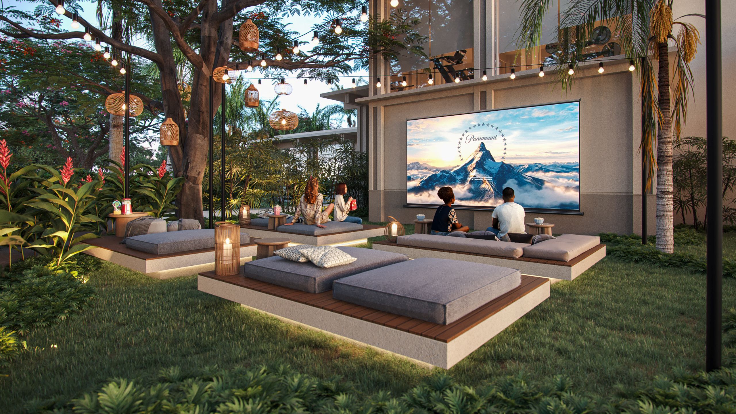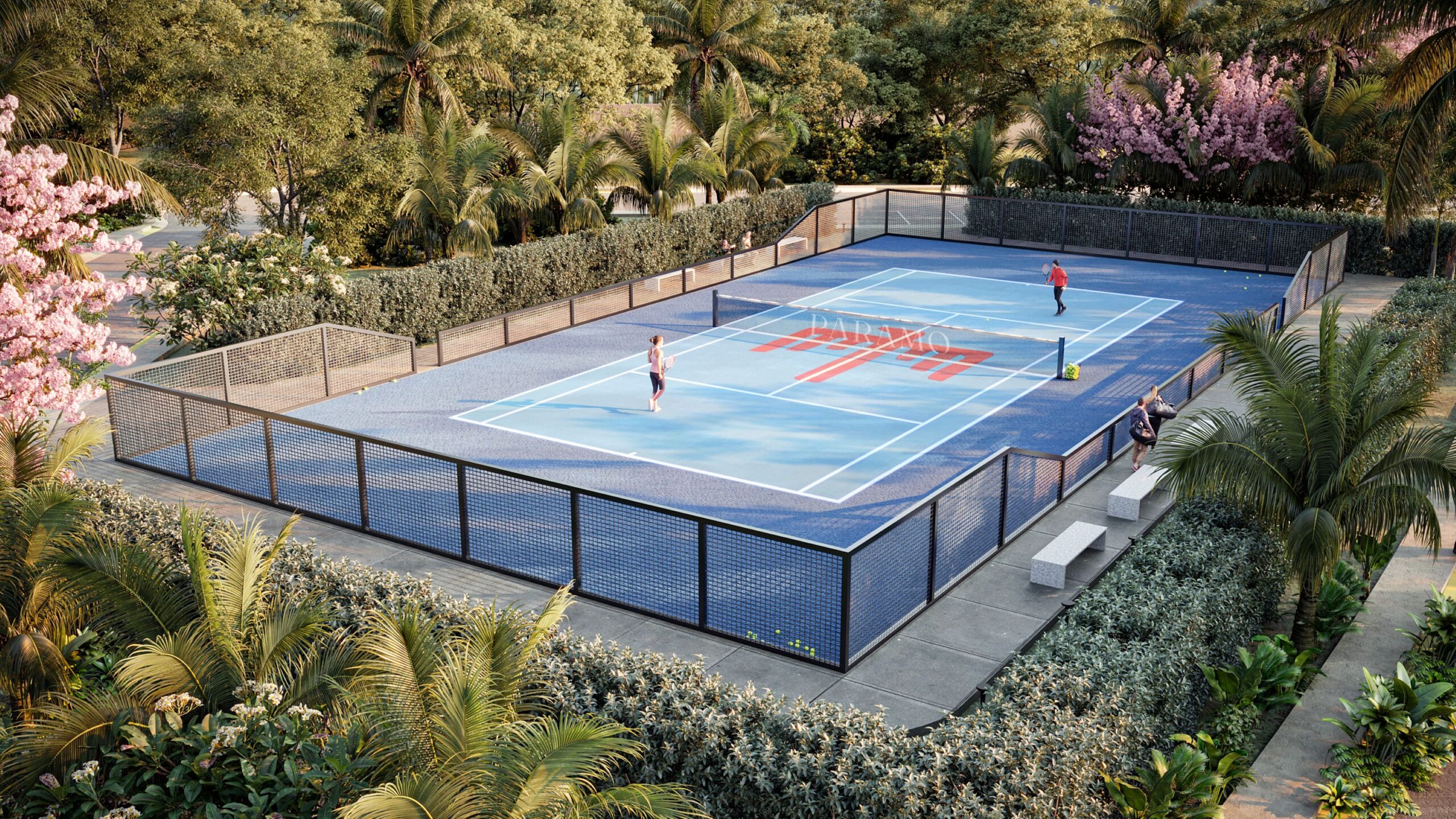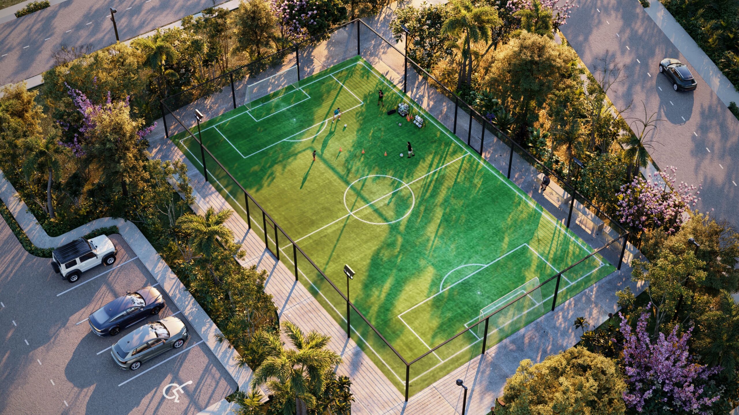 At the heart of the community lies the Clubhouse, offering resort-style amenities including a swimming pool, restaurant bar, outdoor cinema, gym, event hall, terrace, BBQ area, Kids and Teen Rooms, and a snack bar—creating an ideal space for connection, relaxation, and family life. Sports enthusiasts will enjoy tennis and padel courts, a 5-a-side football field, and outdoor areas designed for wellness and fitness.
