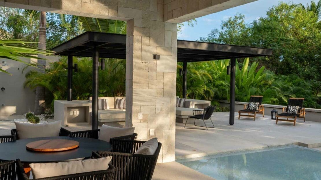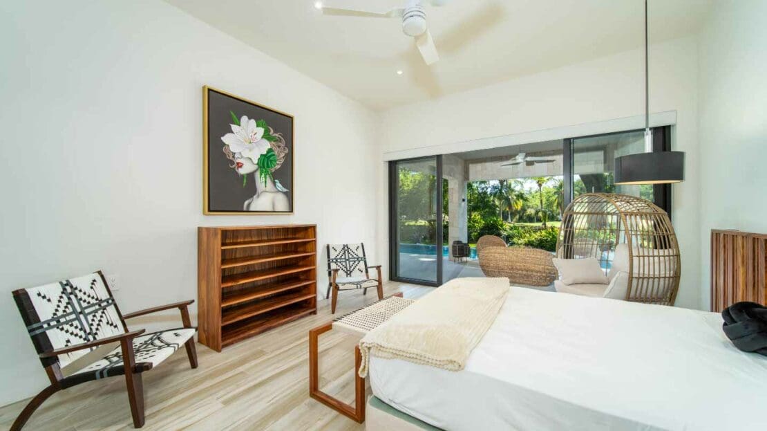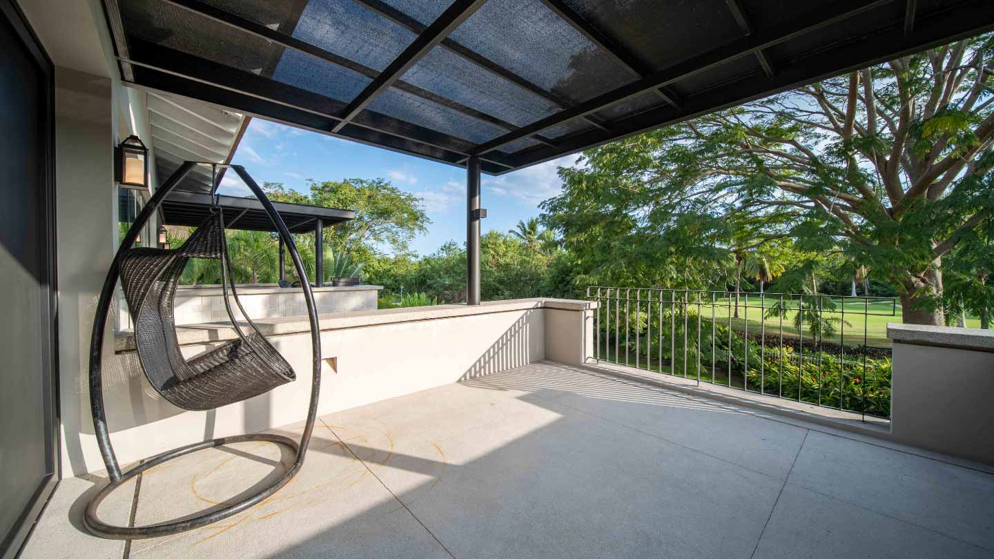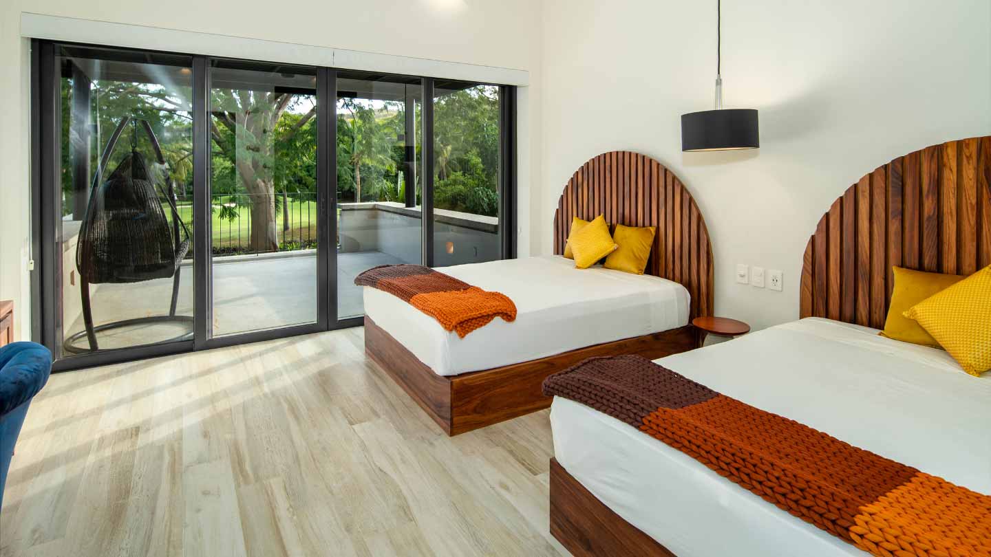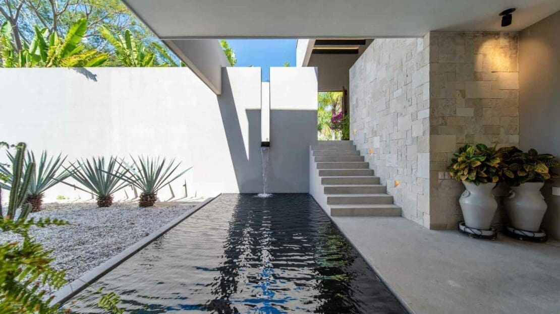 Upon entering the unsuspecting front door, you are greeted with a waterfall and reflection pool that soothes your soul. Floor to ceiling glass pocket doors frame greenspace views and ensure the living room is bathed in Oaxacan sunshine. The architectural layout seamlessly integrates indoor and outdoor living, creating an ambiance of spaciousness and connectivity. The villa comes equipped with a modern kitchen that is a chef's delight. High-end appliances, butler kitchen, walk-in pantry, and a stylish design make this space perfect for culinary enthusiasts and those who enjoy entertaining guests. The primary bedroom is a sanctuary of luxury, featuring a spacious layout, walk-in closets, and an ensuite bathroom with exquisite fixtures and soaking tub. Wake up to panoramic views of the golf course, creating a sense of tranquility and opulence. With 2 bedrooms on the main level and 2 bedrooms on the upper level, your living space is divided to suit your needs.