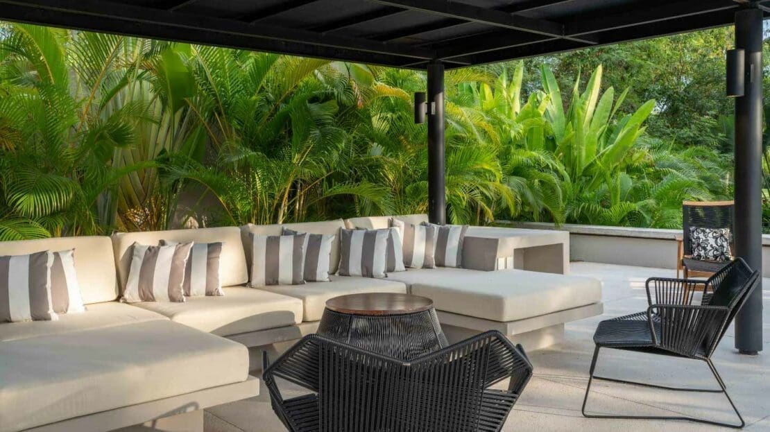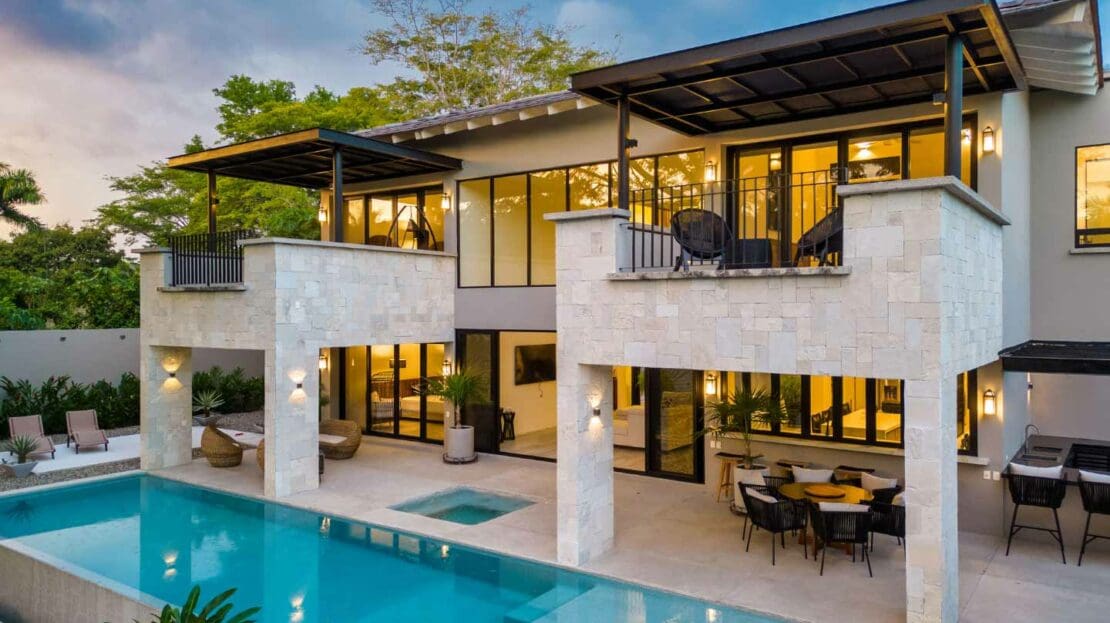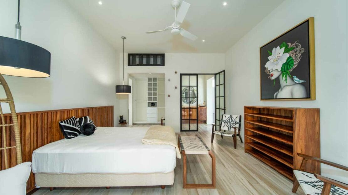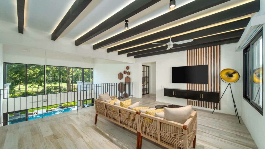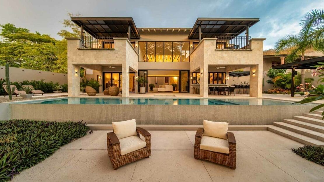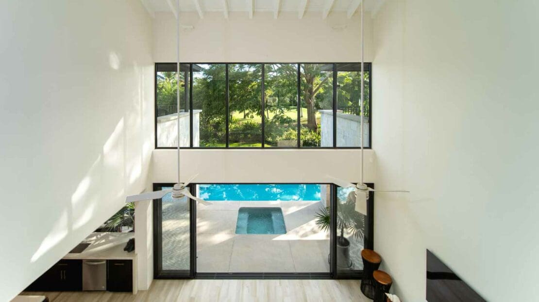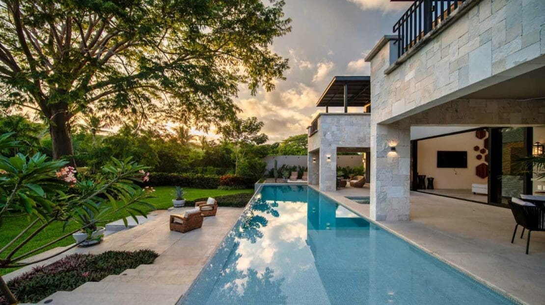 Upon entering the unsuspecting front door, you are greeted with a waterfall and reflection pool that soothes your soul. Floor to ceiling glass pocket doors frame greenspace views and ensure the living room is bathed in Oaxacan sunshine. The architectural layout seamlessly integrates indoor and outdoor living, creating an ambiance of spaciousness and connectivity. The villa comes equipped with a modern kitchen that is a chef's delight. High-end appliances, butler kitchen, walk-in pantry, and a stylish design make this space perfect for culinary enthusiasts and those who enjoy entertaining guests. The primary bedroom is a sanctuary of luxury, featuring a spacious layout, walk-in closets, and an ensuite bathroom with exquisite fixtures and soaking tub. Wake up to panoramic views of the golf course, creating a sense of tranquility and opulence. With 2 bedrooms on the main level and 2 bedrooms on the upper level, your living space is divided to suit your needs.