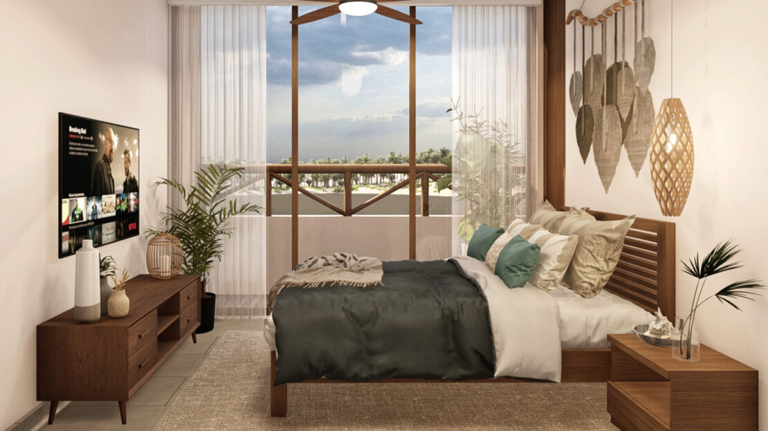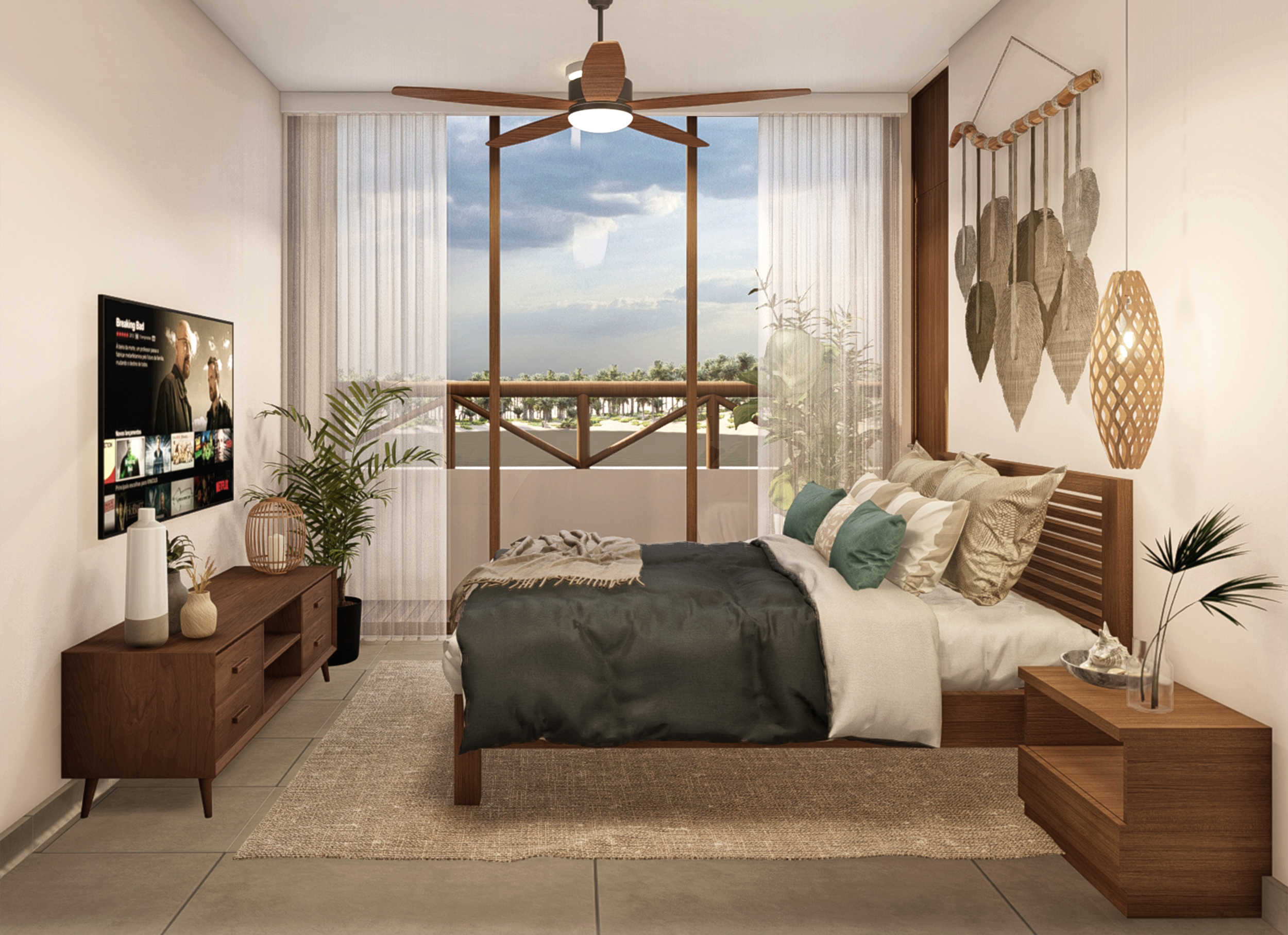 These stunning villas feature three spacious bedrooms, three full bathrooms, and two half bathrooms, providing comfort and privacy for every resident. The open-concept design showcases custom woodwork in the kitchen, high-quality Chukum finishes, and air conditioning for year-round comfort. Enjoy breathtaking lagoon views from your private rooftop, take a dip in your own pool, and park conveniently in the covered parking area. Plus, Kavanna Villas are pet-friendly, making them perfect for the whole family.