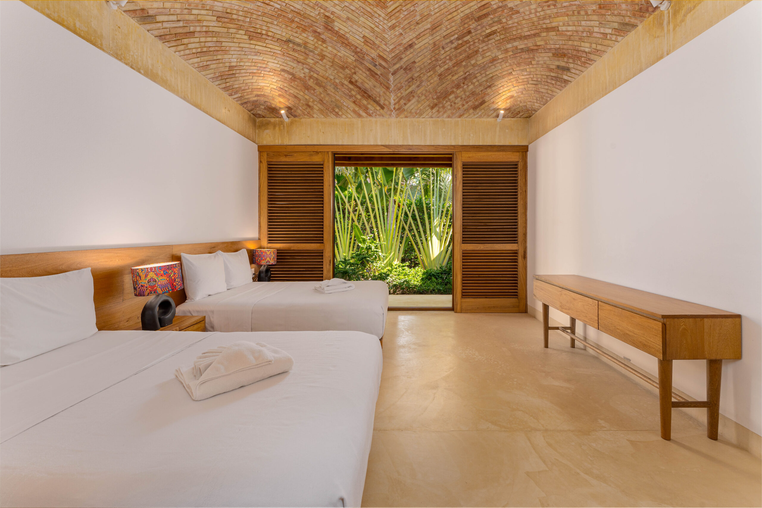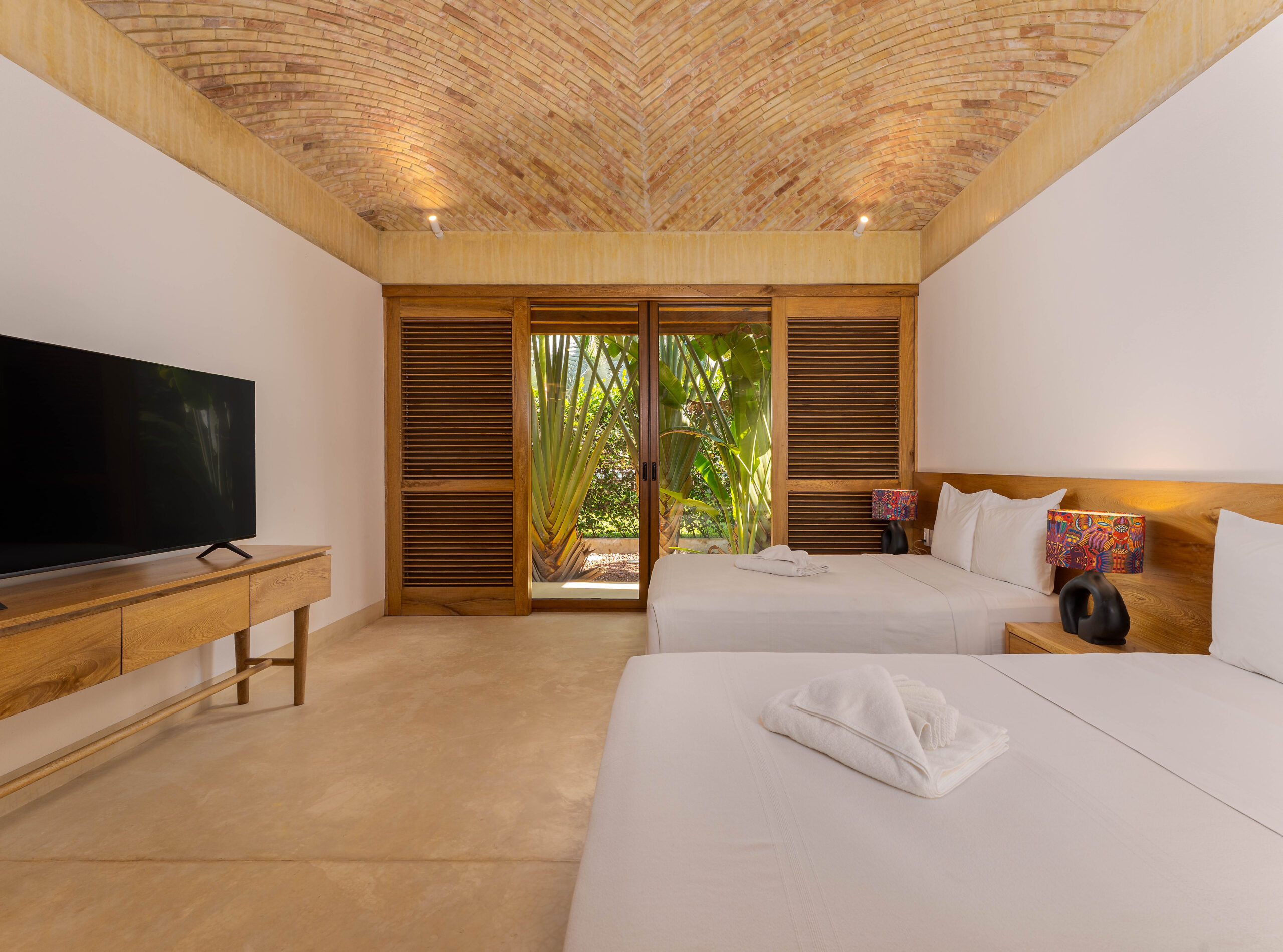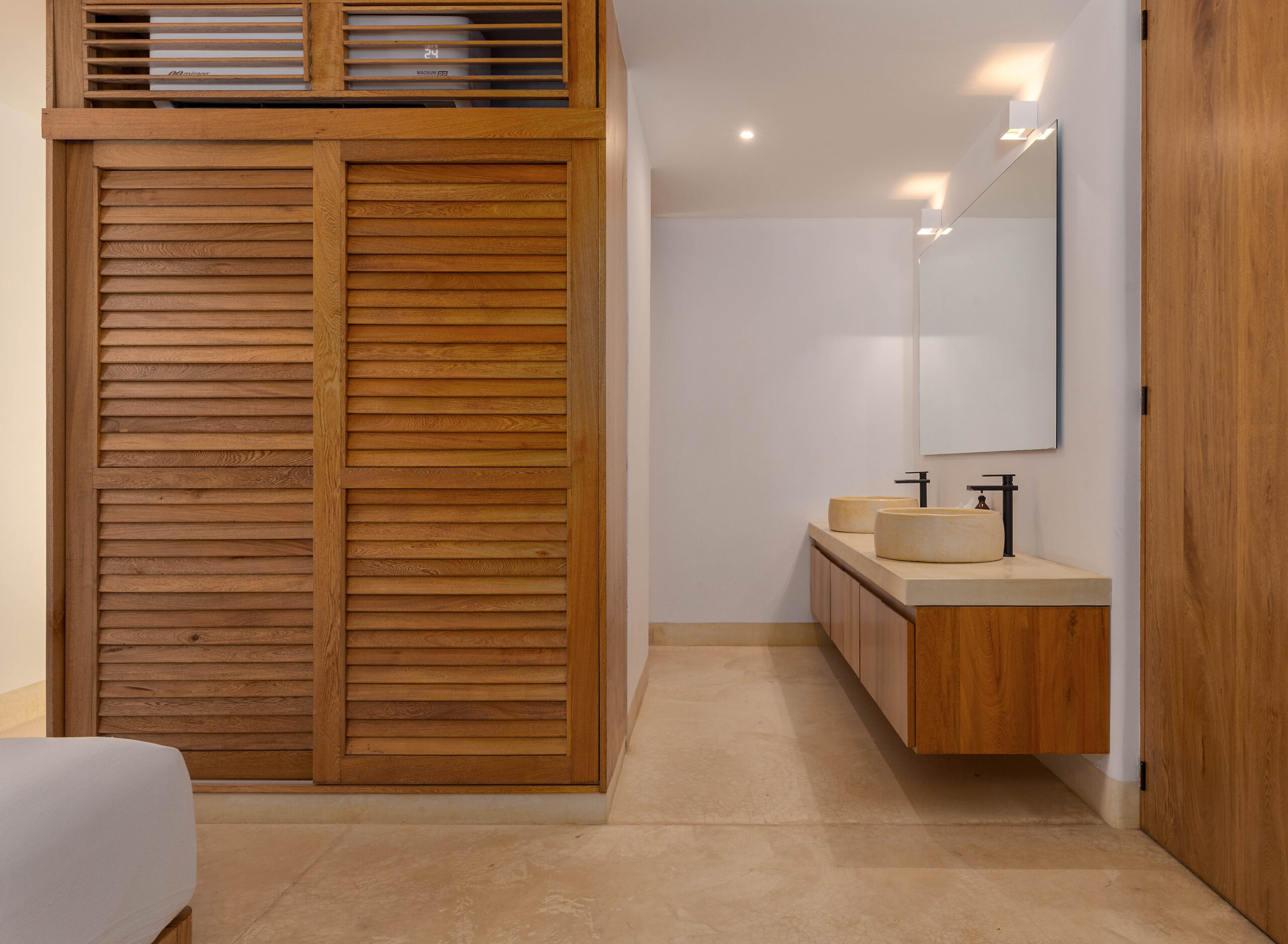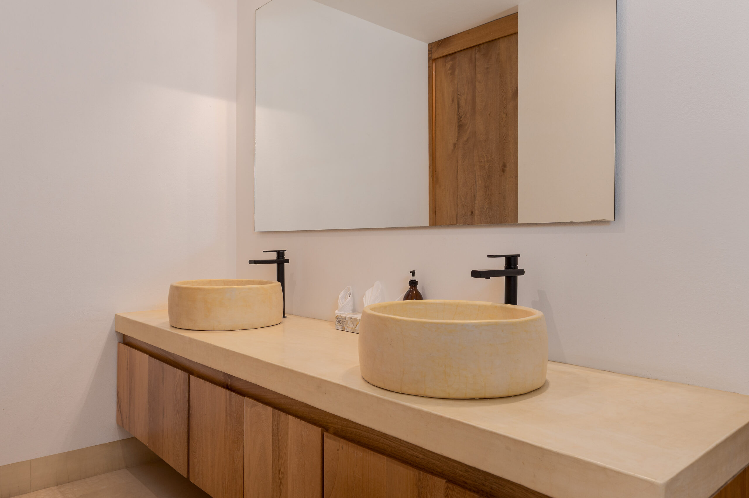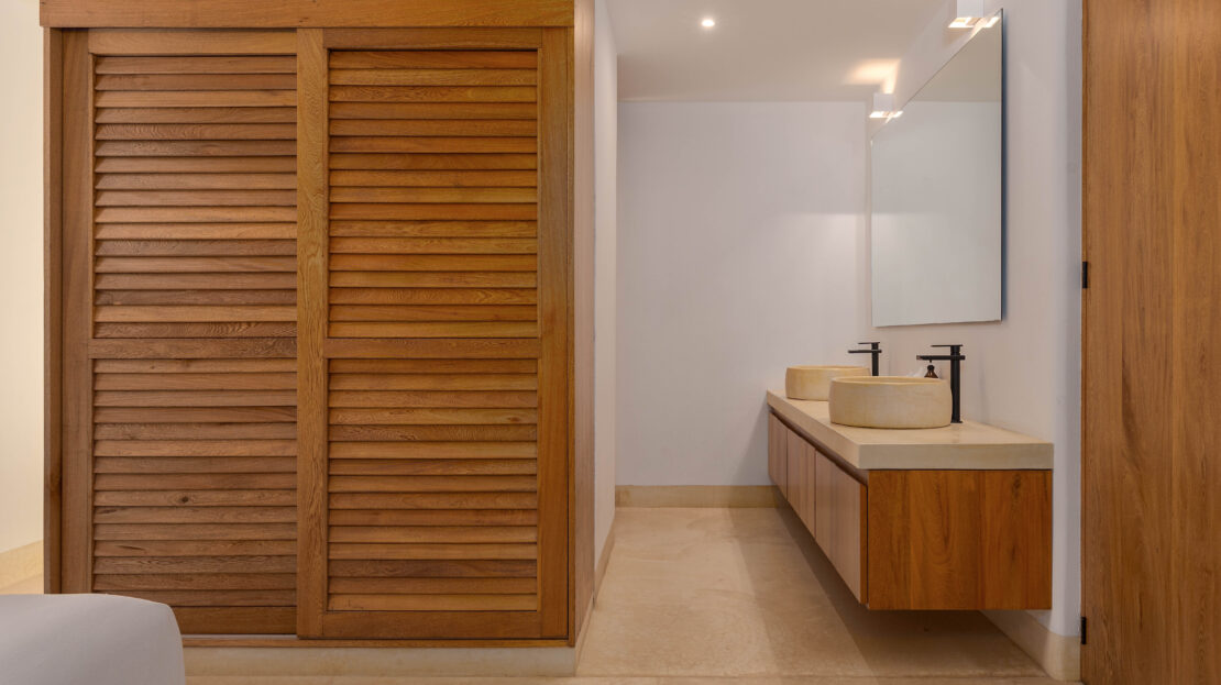 Designed with an effortless coastal elegance, the villa embraces an open-concept layout where indoor and outdoor living merge seamlessly. A soaring palapa ceiling anchors the main living space, filling the home with warmth, natural textures, and a sense of serene sophistication. Sunlight filters through each space, enhancing the fluid connection to the outdoors and drawing your gaze toward the shimmering water beyond.