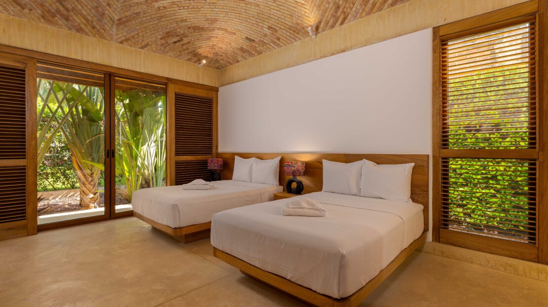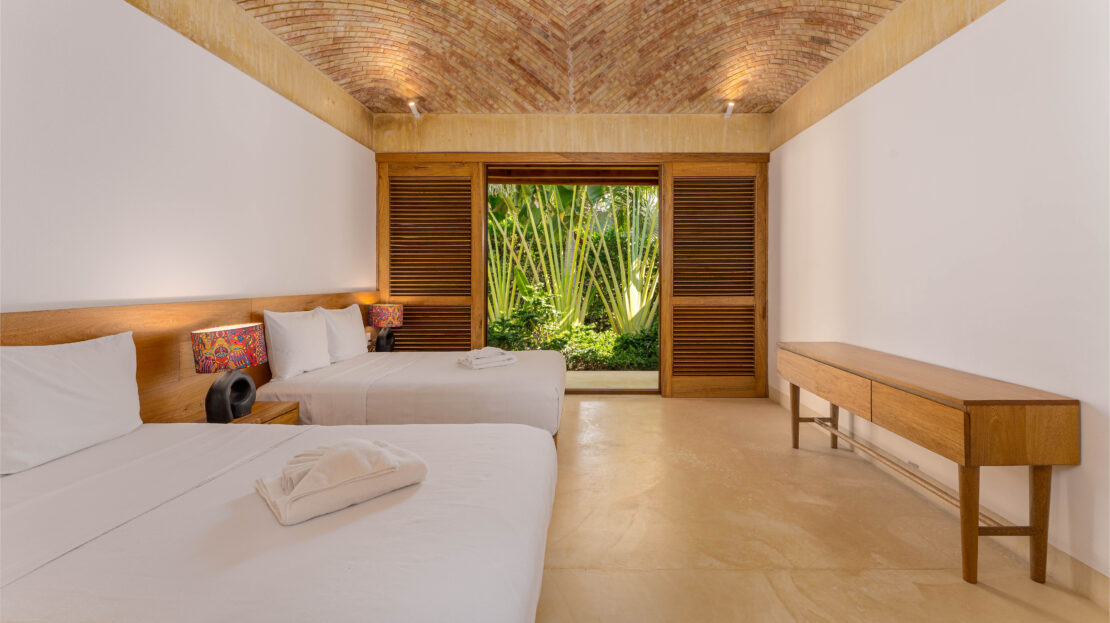 The private beachfront garden is a sanctuary of its own, featuring a stunning infinity pool that stretches toward the horizon. Whether you’re stepping directly onto the sand for a morning walk or settling into a lounge chair to watch the sunset melt into the ocean, the atmosphere invites slow living and pure relaxation. Every bedroom is designed as a serene retreat, each with its own ensuite bath and air-conditioning, ensuring privacy and comfort for family and guests alike.