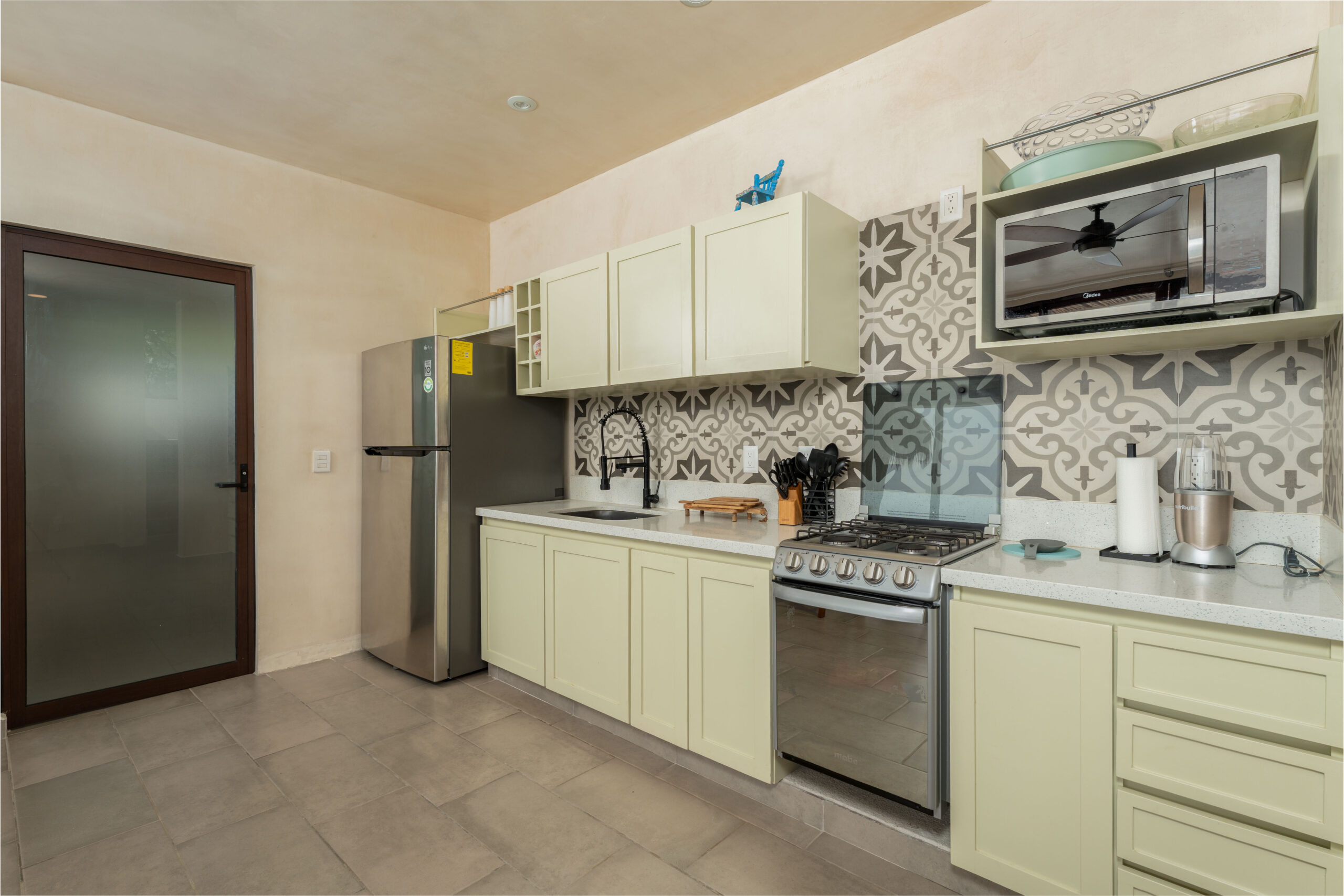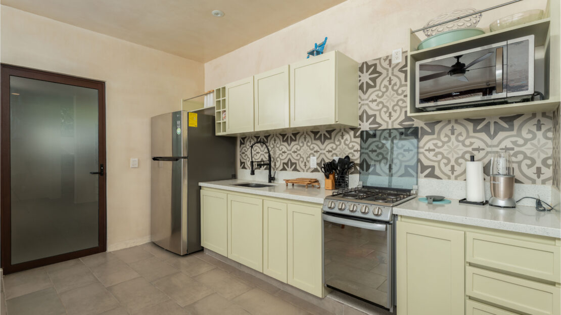 This oceanfront home is being sold fully furnished and move-in ready, complete with a gas stove, oven, microwave, and refrigerator. A dedicated laundry area is included, and while there is no private parking on-site, the property is set within a secure, gated community for peace of mind.