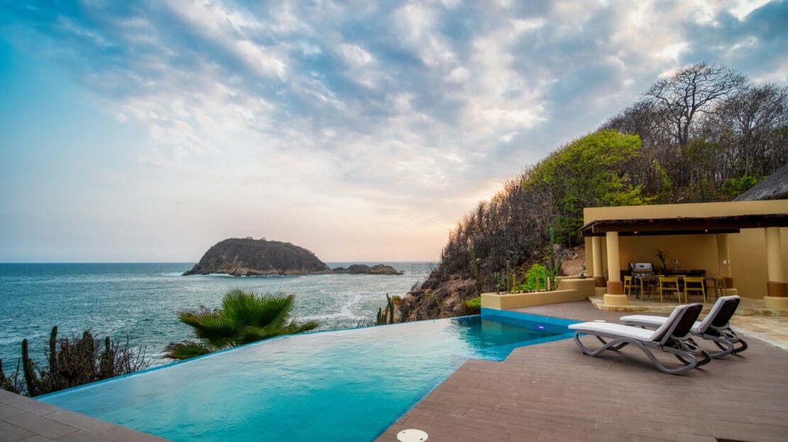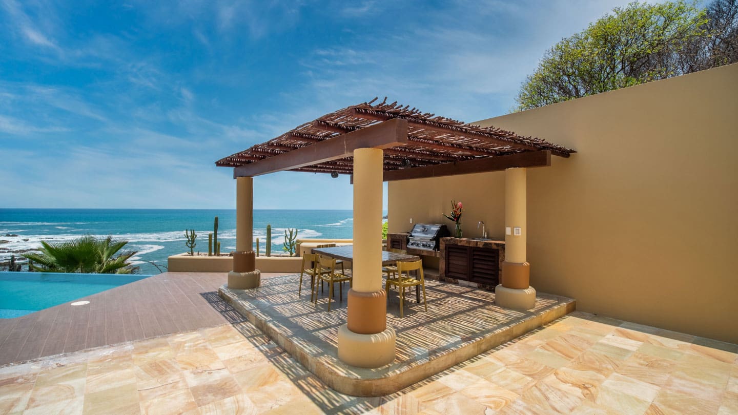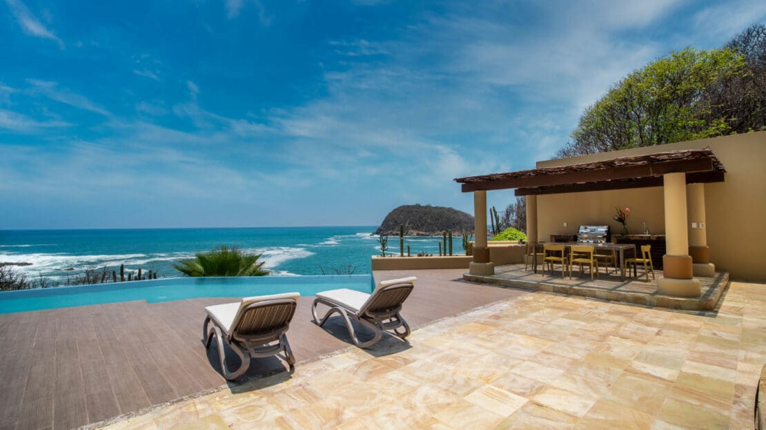 Villa K is a sprawling single-story dream home. The 4,531 Ft2 oceanfront villa is complete with an infinity pool, outdoor kitchen, and an expansive pool deck to catch some of the hot Huatulco sun. Panoramic bi-fold doors flow the indoors and outdoors together. 3 beds + den 3.5 baths, TV / Games room, living, and dining rooms provide plenty of space for the entire family. Extra bonuses include a rooftop terrace and bringing paradise to the backyard with it's own direct beach access making it the ultimate summer everyday playground.