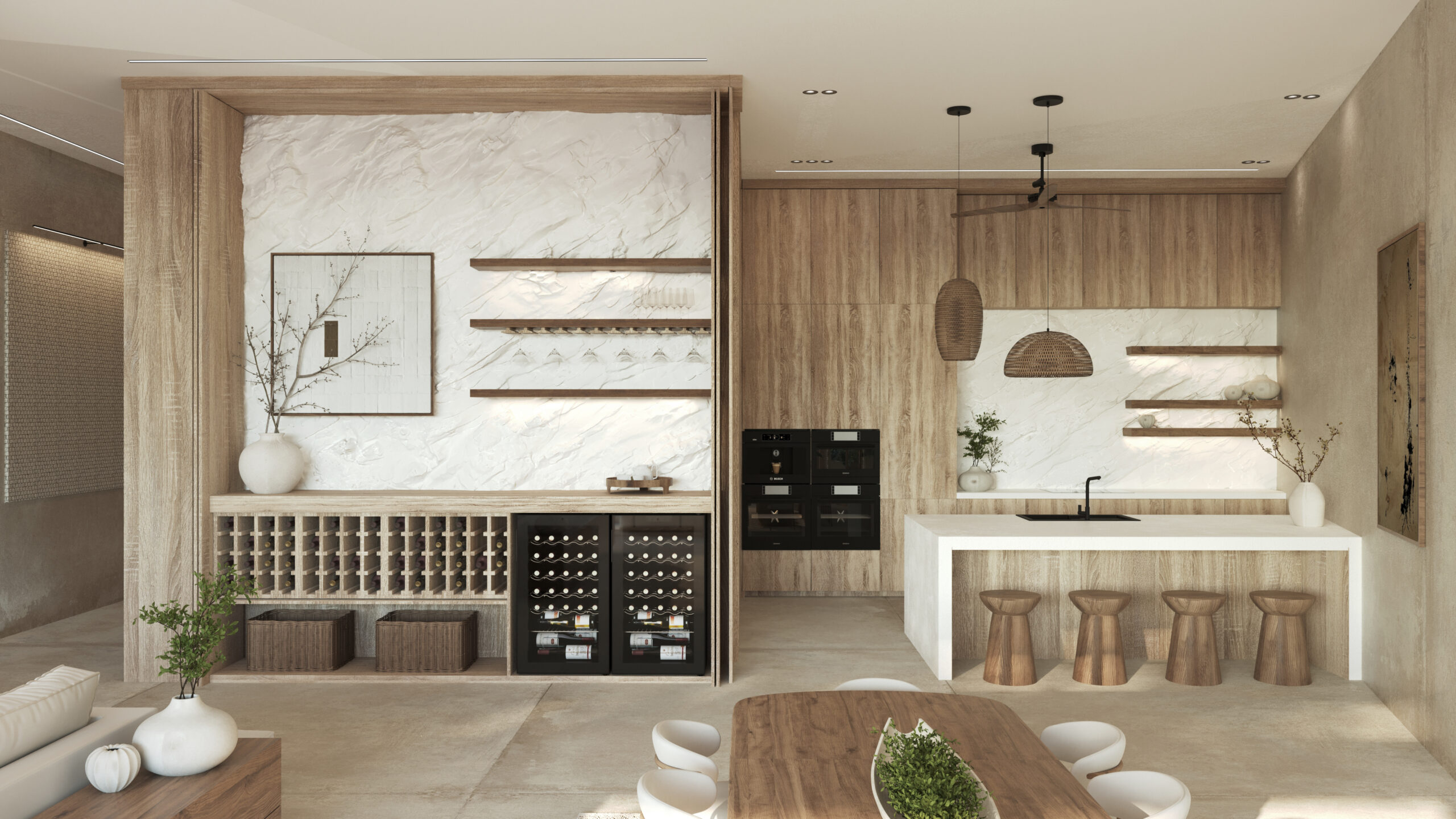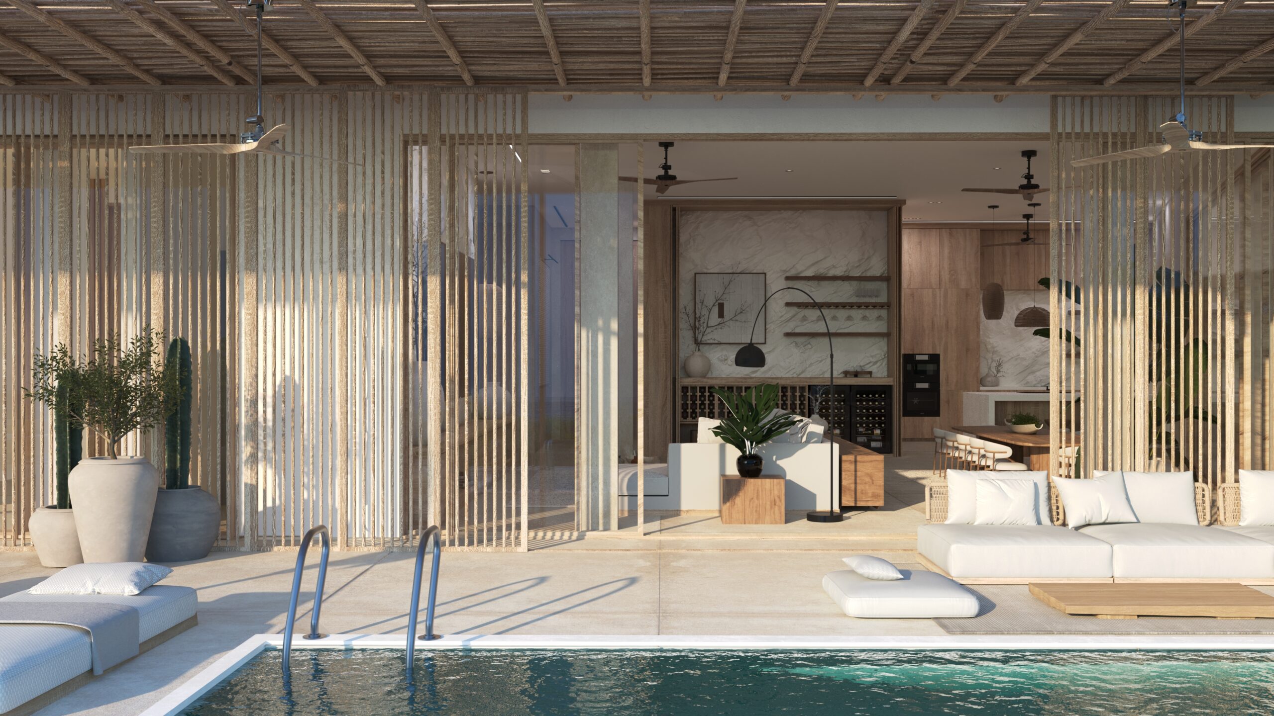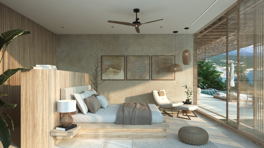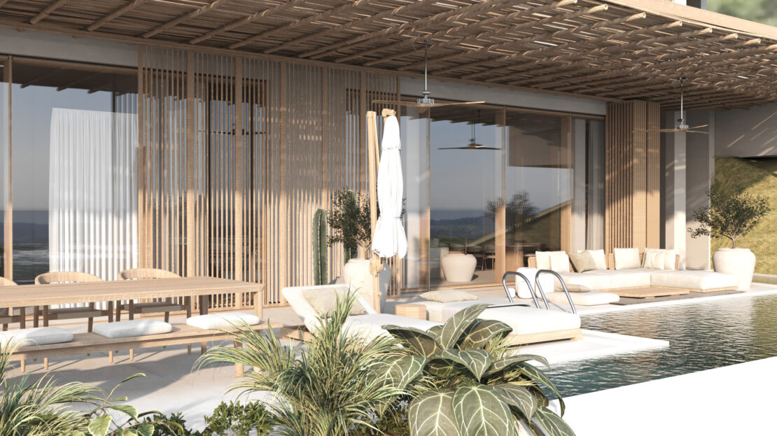 Each villa is a true private retreat, offering three spacious bedrooms and four luxurious bathrooms across expansive interiors ranging from 4,251 to 4,338 Ft2. Floor-to-ceiling glass and seamless indoor-outdoor design dissolve the boundaries between home and horizon, leading to large oceanfront terraces with private infinity pools, lush greenery and open-air lounge areas. From sunrise to sunset, the sound of the waves and sweeping coastal views become part of daily life, creating an atmosphere that feels both grounding and extraordinary.