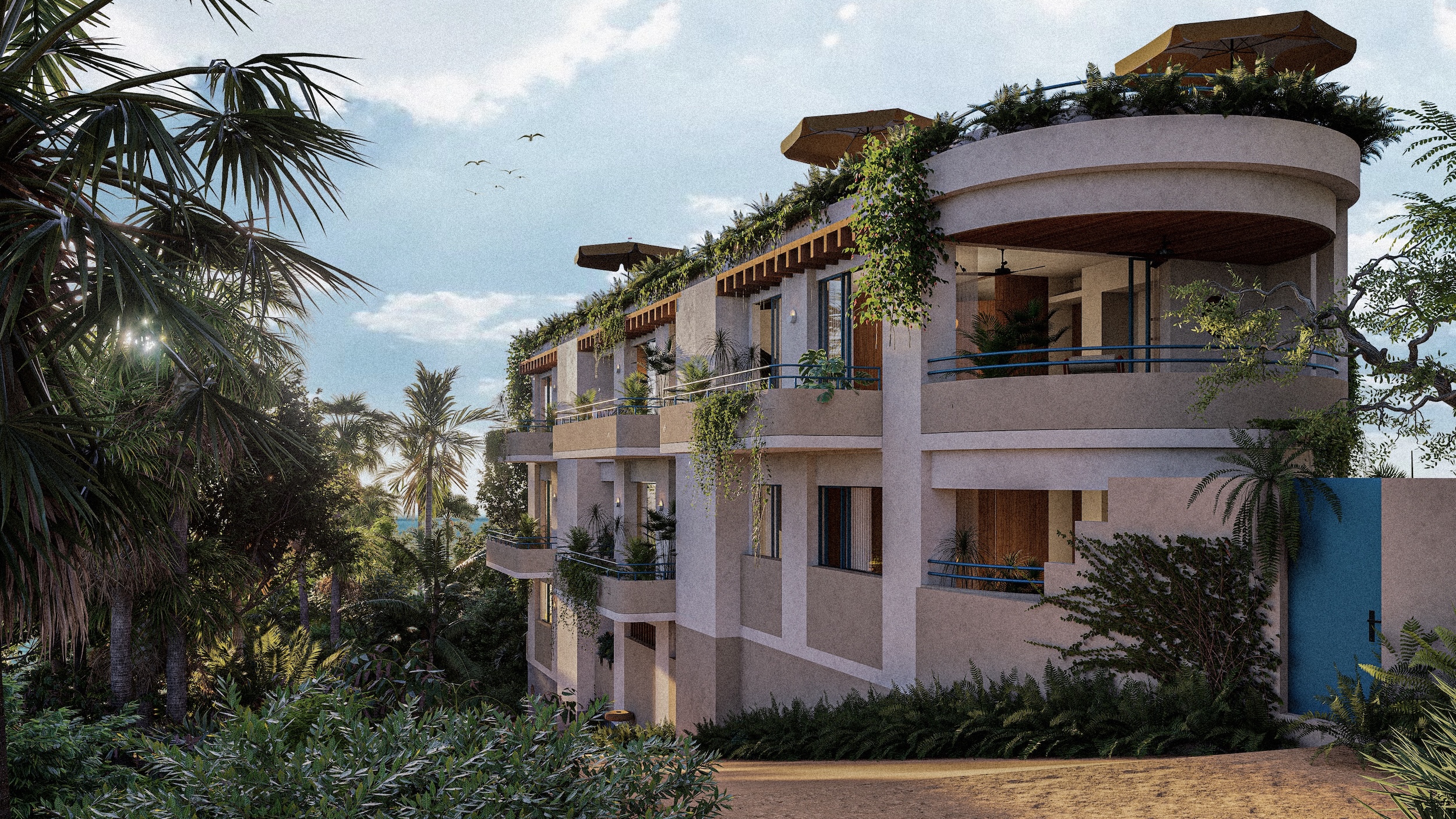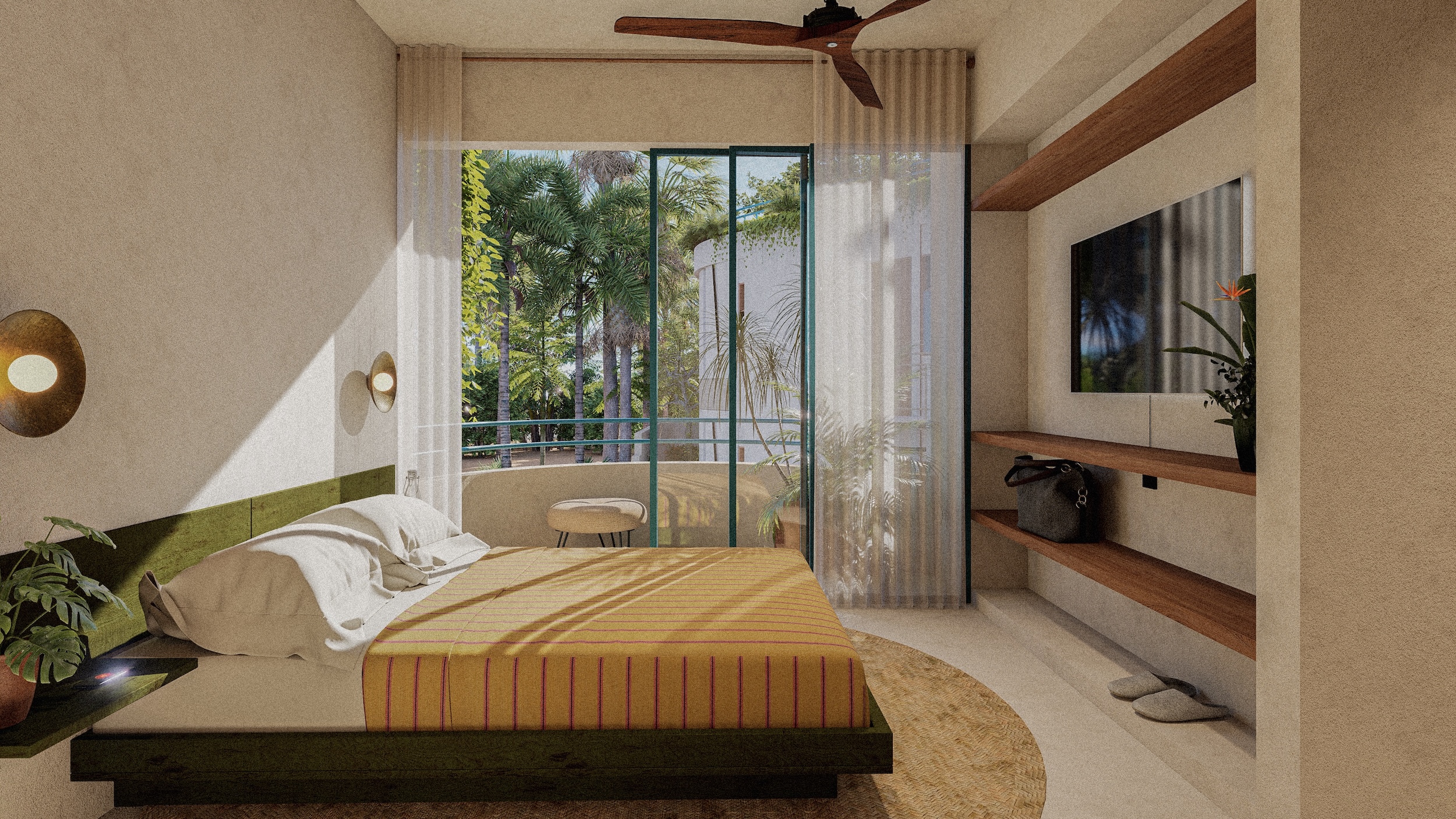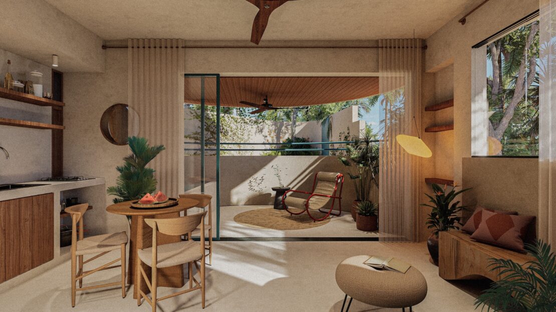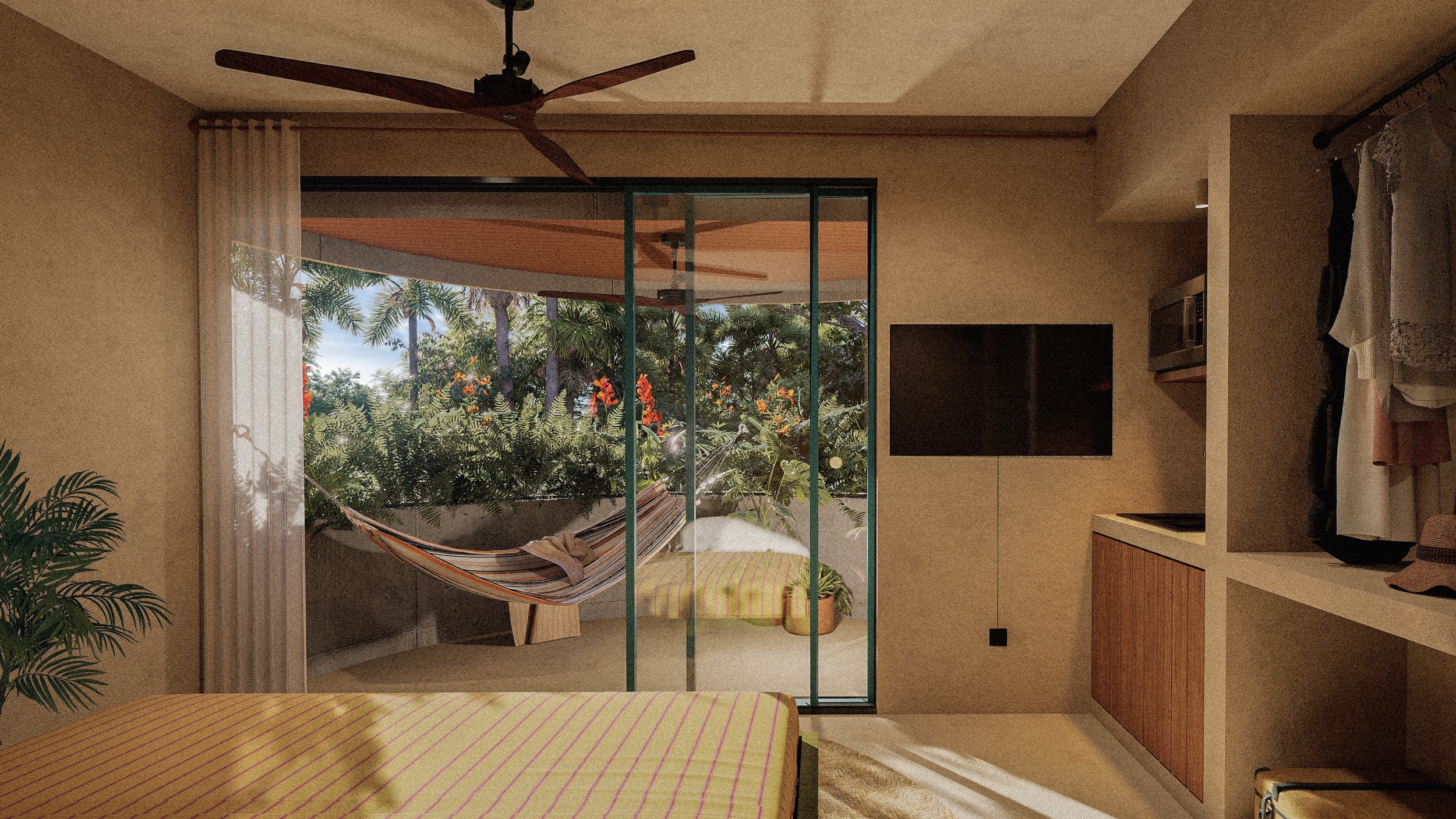Panorama is a boutique collection of branded residences by Suuel Hotel, thoughtfully set above the Pacific in the tranquil enclave of Puerto Escondido, just moments from La Punta Zicatela. Surrounded by lush vegetation and defined by unobstructed ocean views, the development offers a rare balance between privacy and proximity, where the rhythm of the coast, the sound of the surf, and the natural landscape shape everyday living in Puerto Escondido. Currently available residences include a limited selection of studios and 2 bedroom apartments, ranging from approximately 281 to 975 Ft2. Each unit is designed to maximize natural light, airflow, and seamless indoor-outdoor living through terraces and balconies that frame garden or sea views. Inspired by the golden era of Mexican Pacific architecture, interiors feature polished concrete floors, soft ivory walls, sand-toned balconies, blue metal accents, and warm wood details, creating spaces that feel timeless, relaxed, and deeply connected to their surroundings.