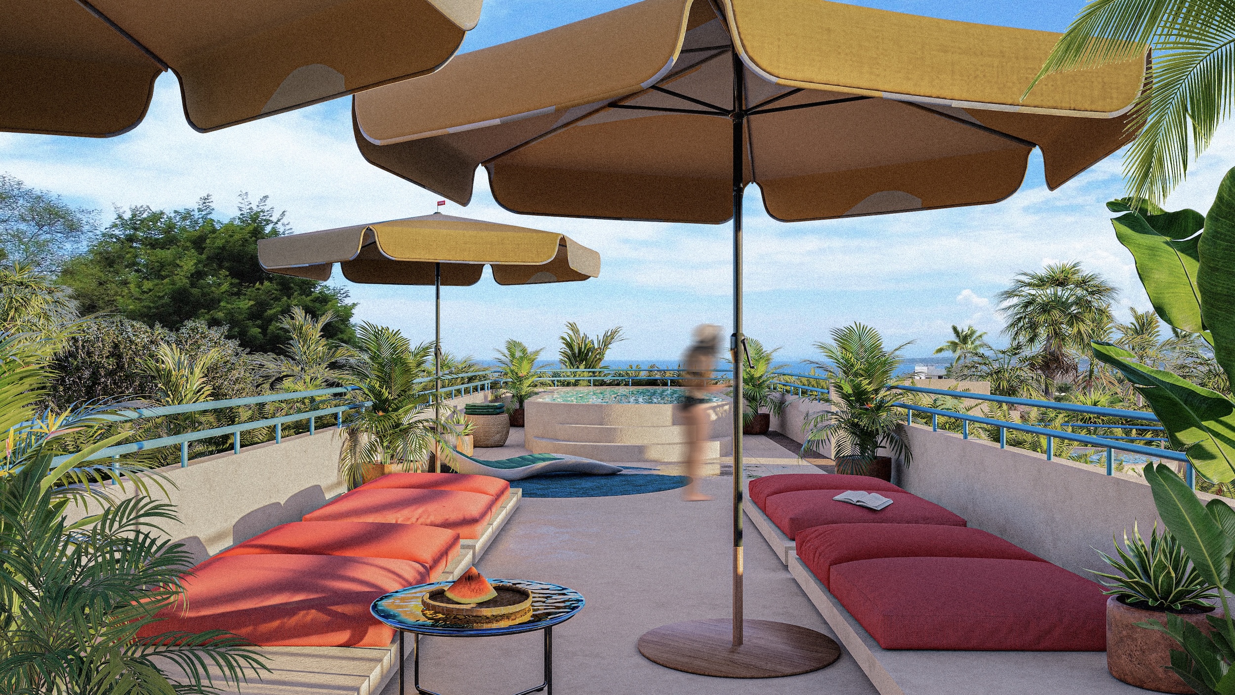 Panorama offers a carefully curated set of amenities that elevate daily life, centered around a rooftop designed for both relaxation and social connection. Residents enjoy a pool and jacuzzi overlooking the ocean, sunbed areas, yoga and workout spaces, fire pit, lounge and dining areas, and panoramic gathering spaces ideal for sunsets over the Pacific. Ownership is complemented by hotel-level services including 24/7 concierge, cleaning services, and optional rental management, as well as access to Suuel’s interior design program for a cohesive and elevated living experience.