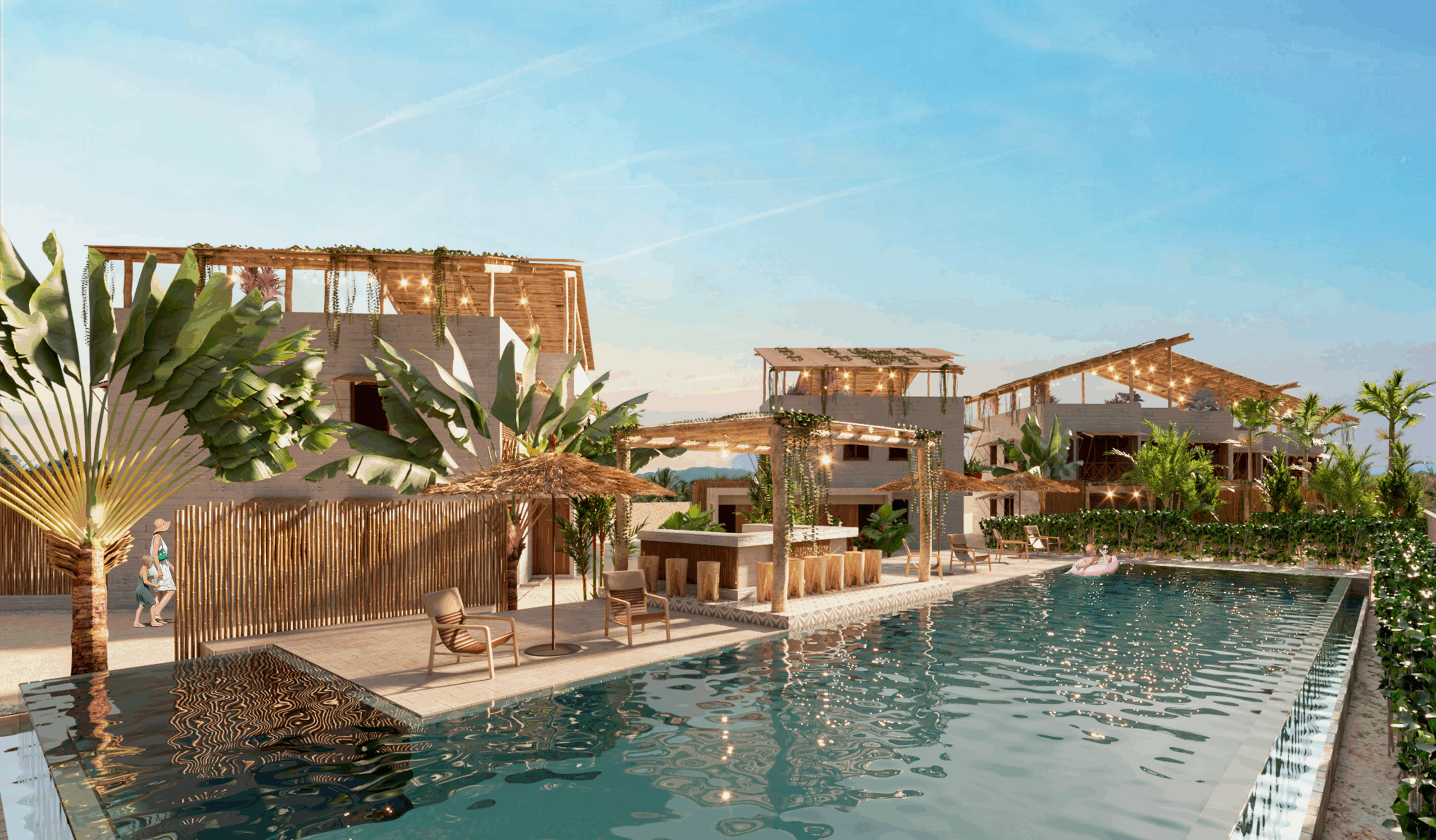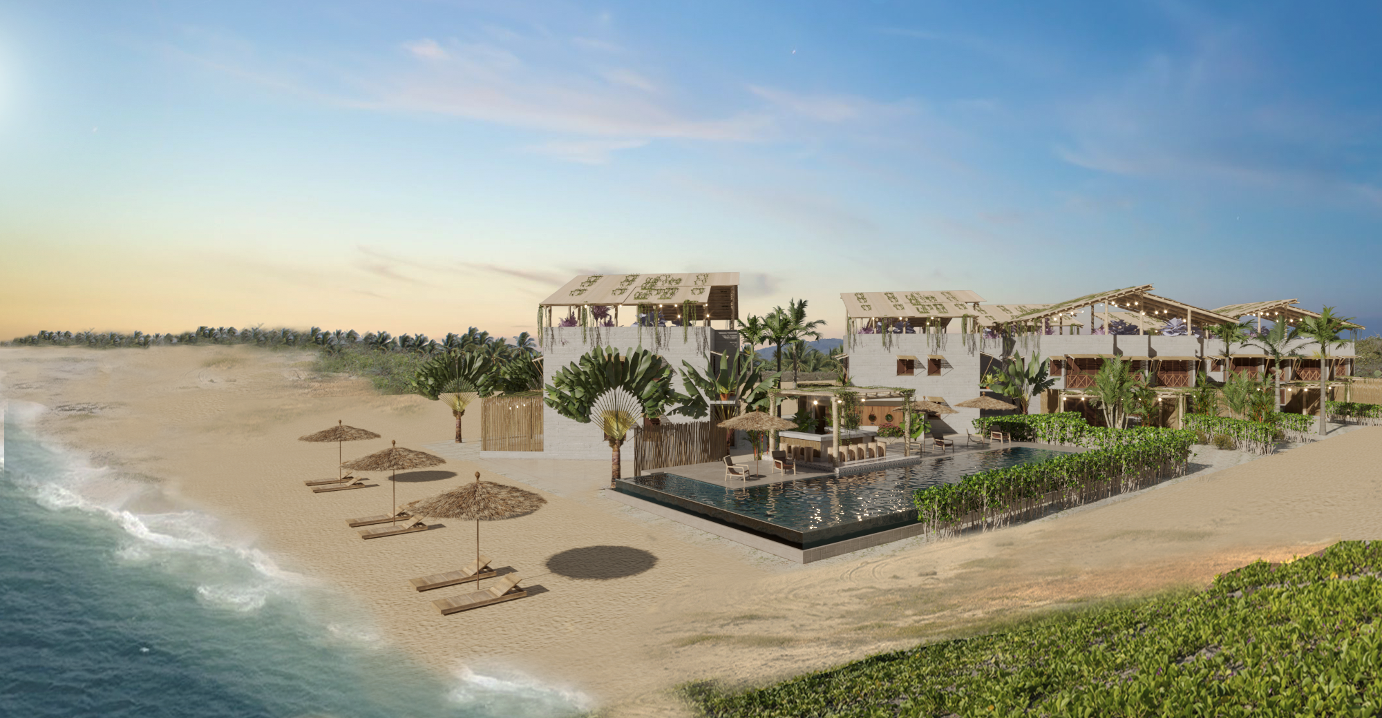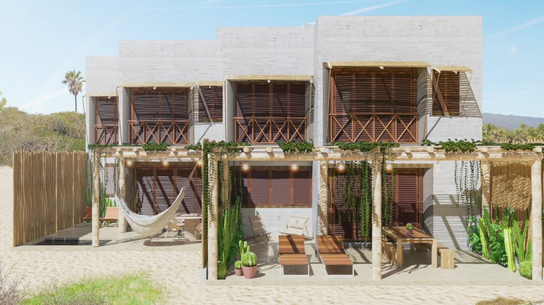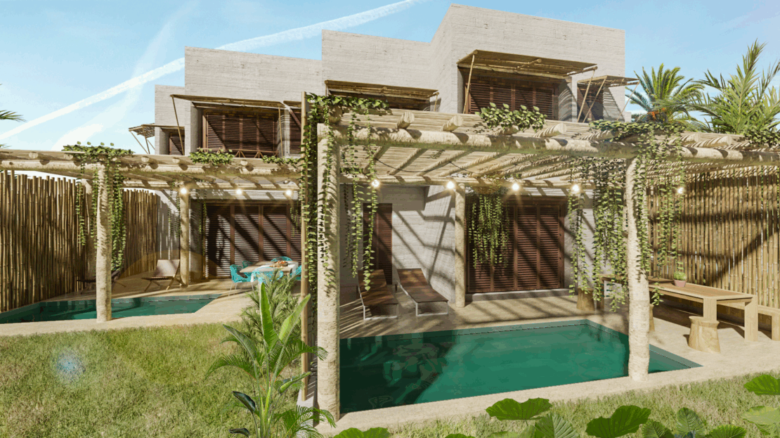 Puerto Bambú offers 16 unique beach houses with 3 bedrooms and 3.5 bathrooms, each one with the option of adding your own private plunge pool and rooftop terrace! Fall in love with every sunset and wake up with the sound of the waves. Walk to the beach or enjoy your day under the sun in the common infinity pool.