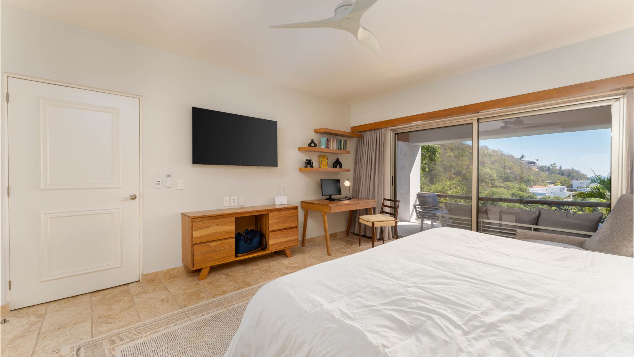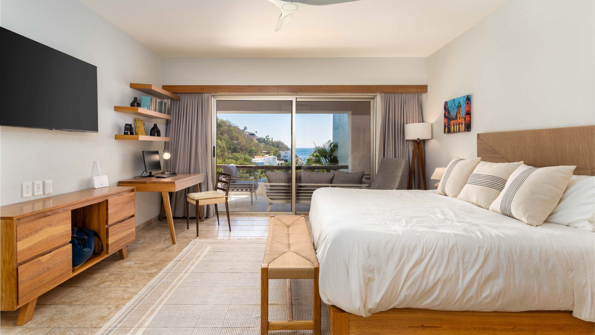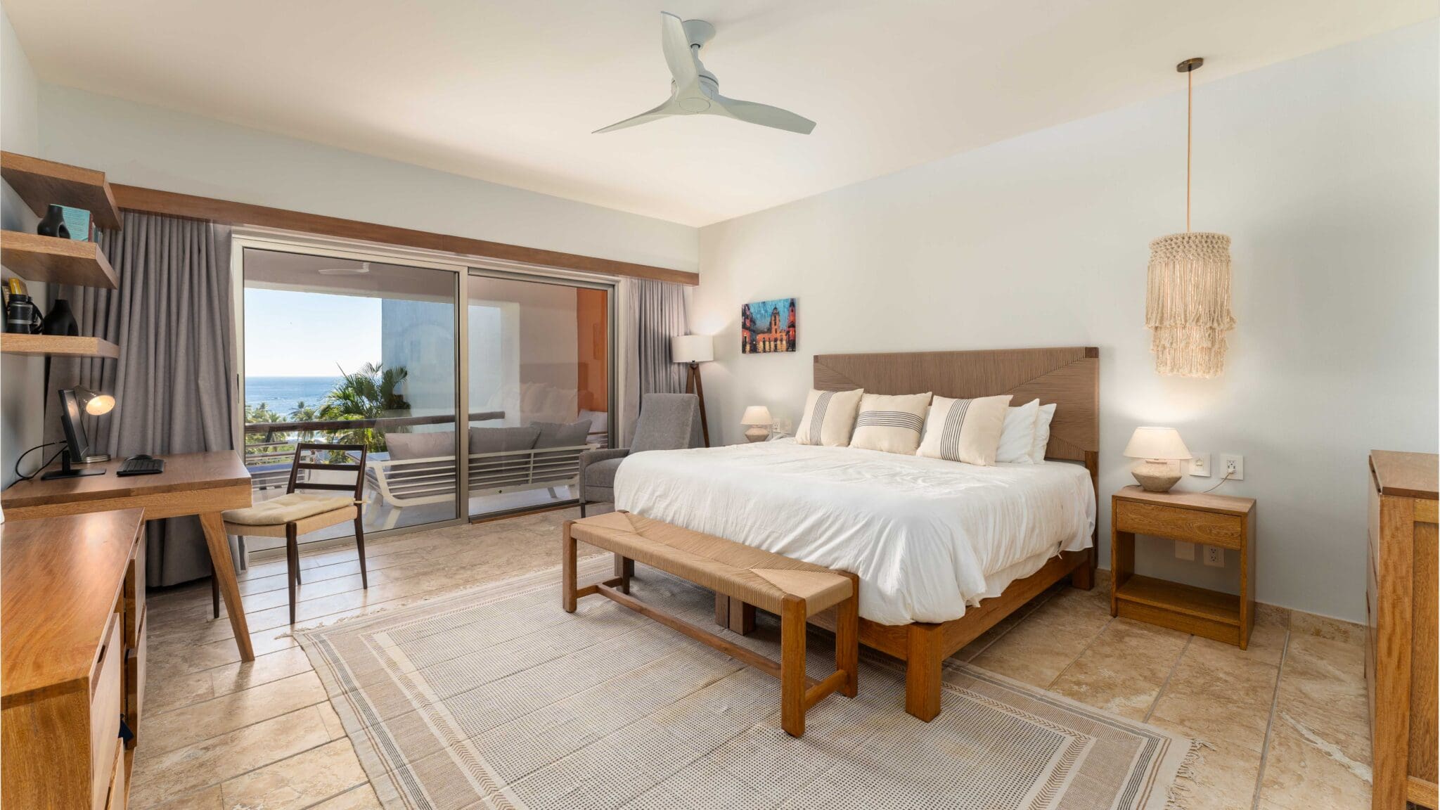 Professionally decorated by Palo De Rosa, this condo exudes sophistication with high-quality Macuil and Parotta wood furniture, a spacious king-size bedroom with a home office setup, and a queen-size sofa bed in the living room. The open terrace is ideal for relaxing or entertaining, offering ample space and seamless indoor-outdoor living.