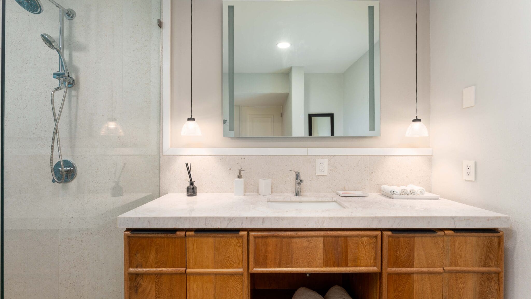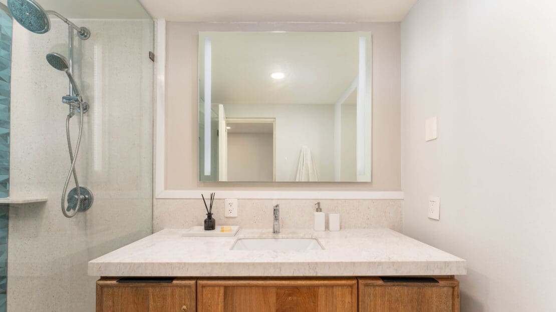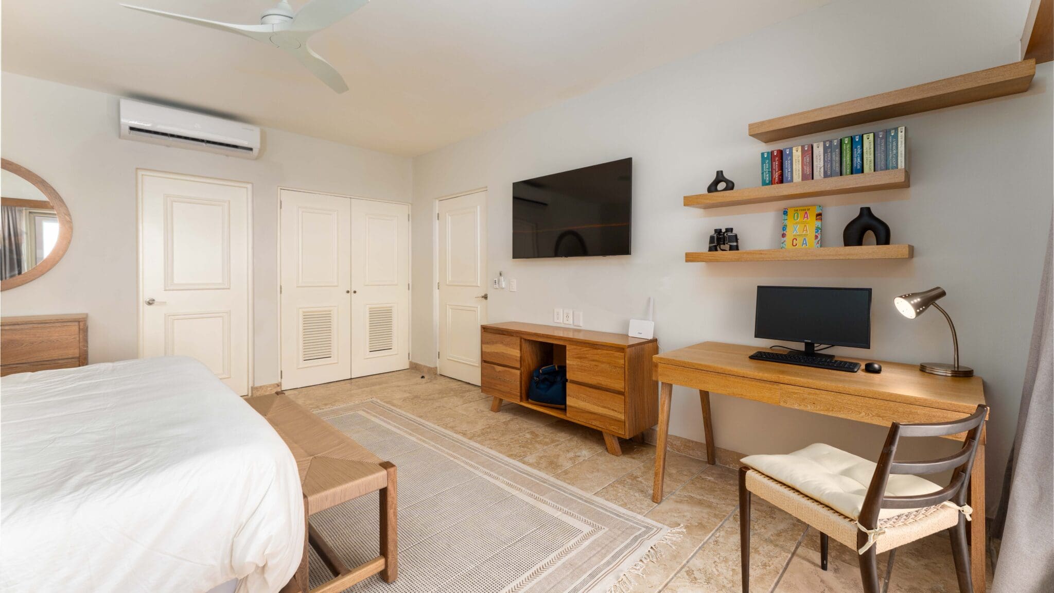 Professionally decorated by Palo De Rosa, this condo exudes sophistication with high-quality Macuil and Parotta wood furniture, a spacious king-size bedroom with a home office setup, and a queen-size sofa bed in the living room. The open terrace is ideal for relaxing or entertaining, offering ample space and seamless indoor-outdoor living.