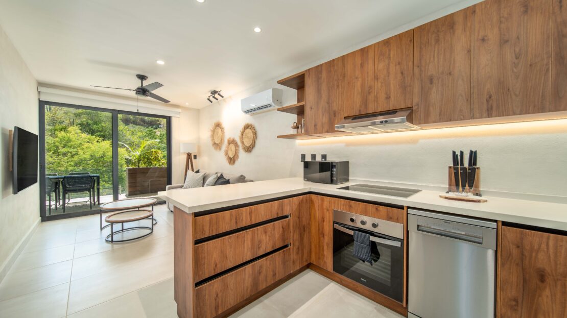 The closed-off bedroom adds privacy, while the open-concept kitchen and living area make the space feel bright and welcoming. Located in the heart of Ziba Suites & Condos, you’ll be steps from cafés, restaurants, shops, and the new Fifth Avenue walkway that leads you to La Crucecita in under 15 minutes.