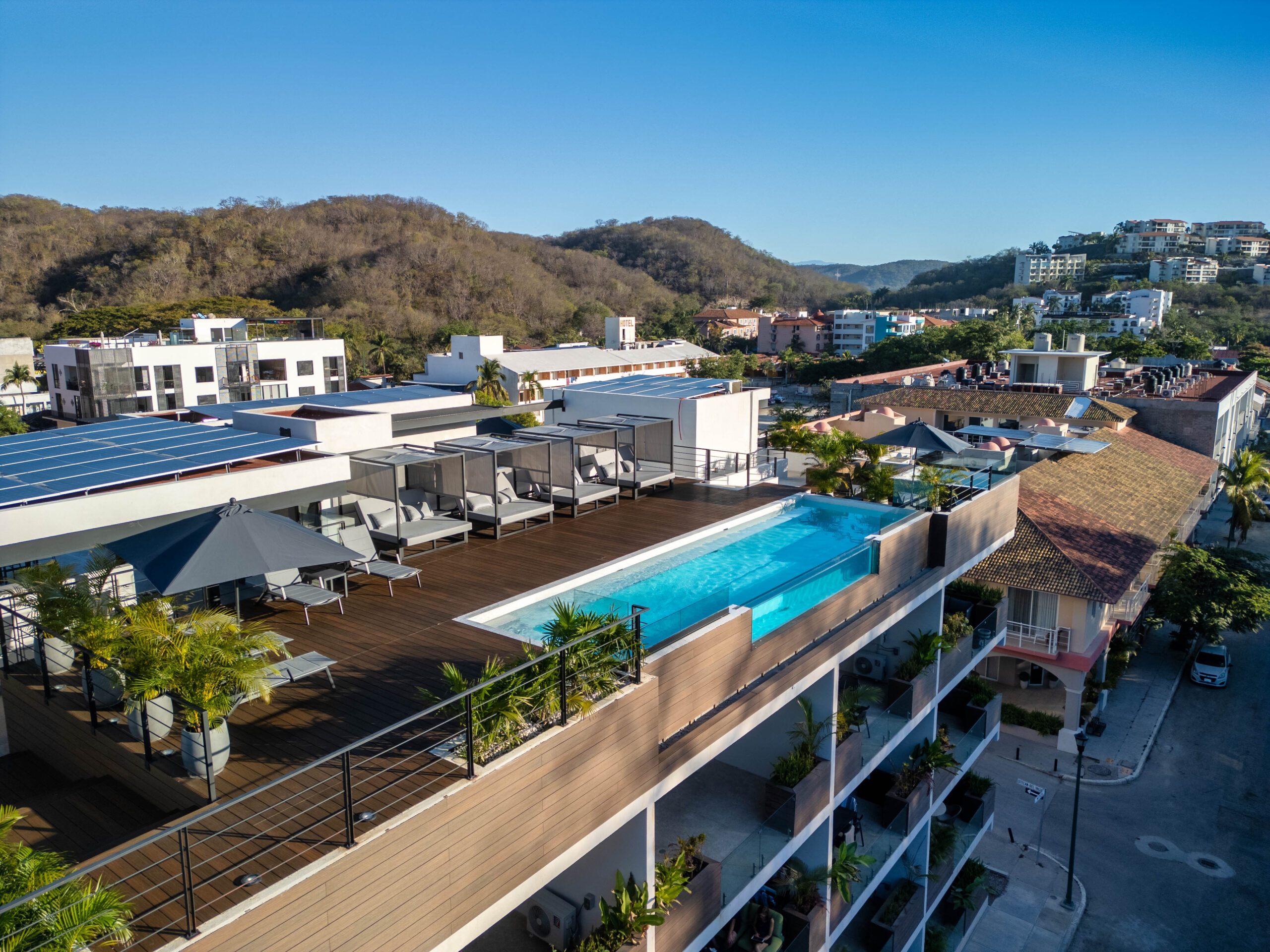 Relax on the rooftop with stunning ocean and mountain views, an infinity pool, 3 plunge pools, 2 BBQ areas, and a bar—perfect for enjoying Huatulco’s sunsets.