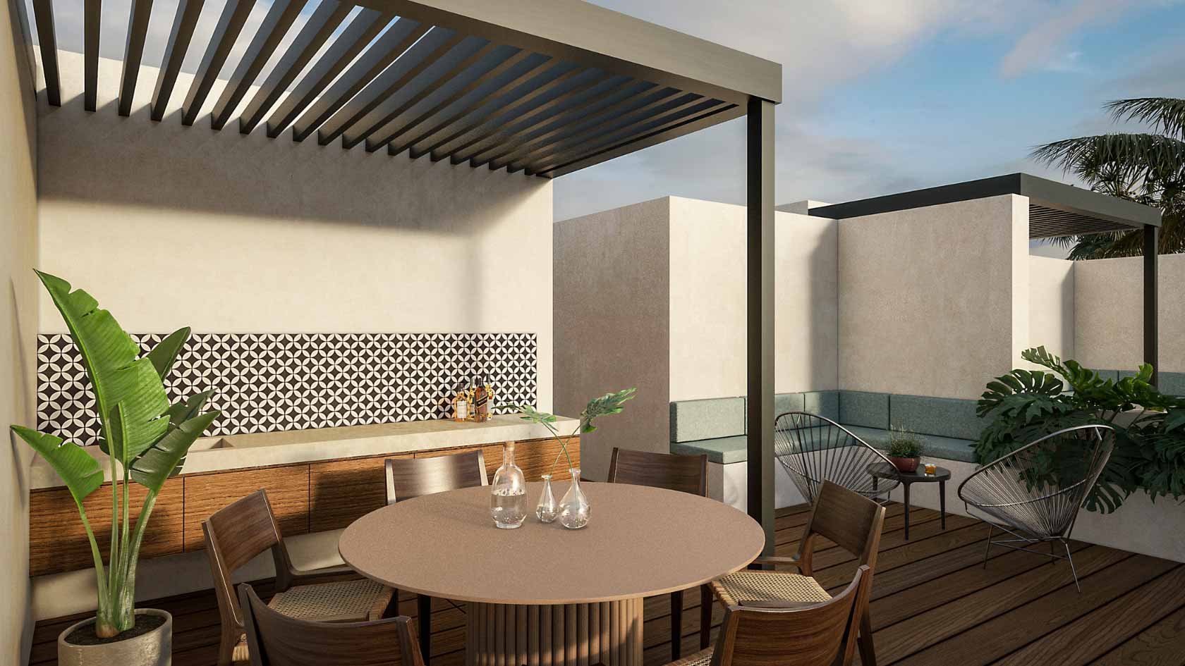 This stunning house features a private garden, an outdoor bar, a private plunge pool, and much more! Experience the joy of living in paradise by becoming a Progreso resident.