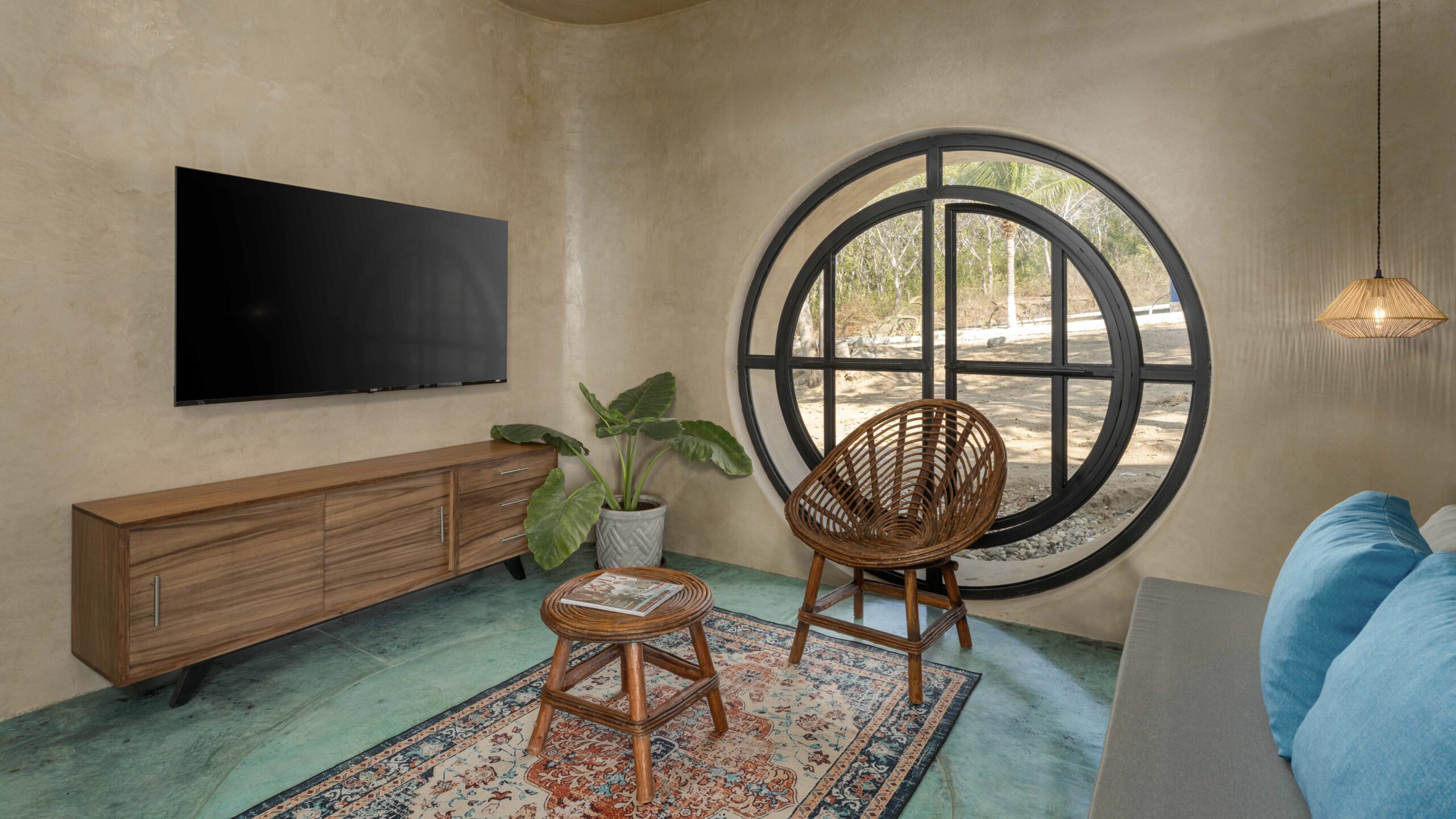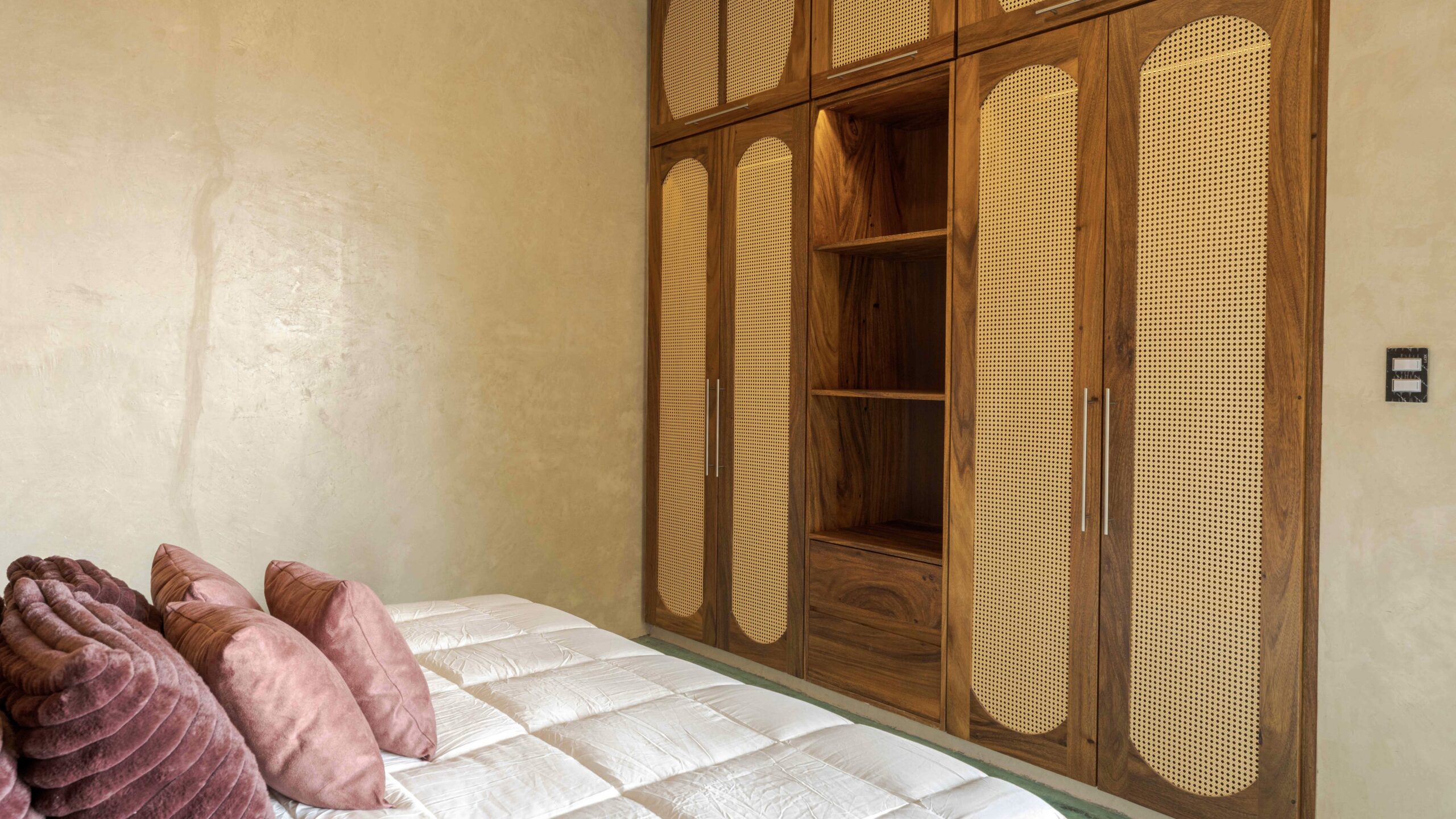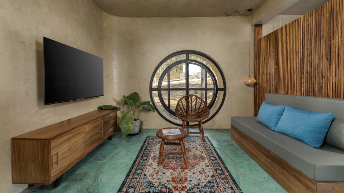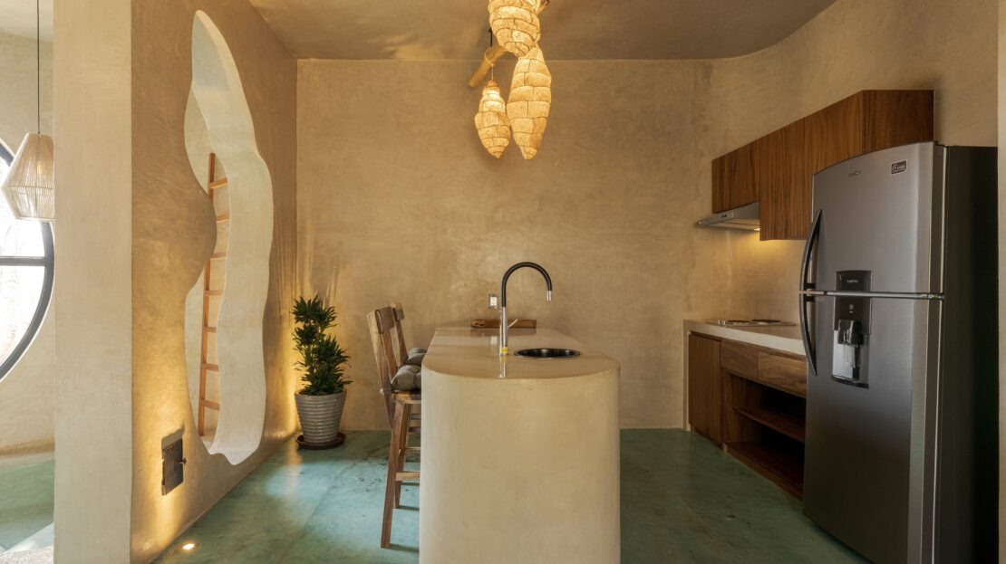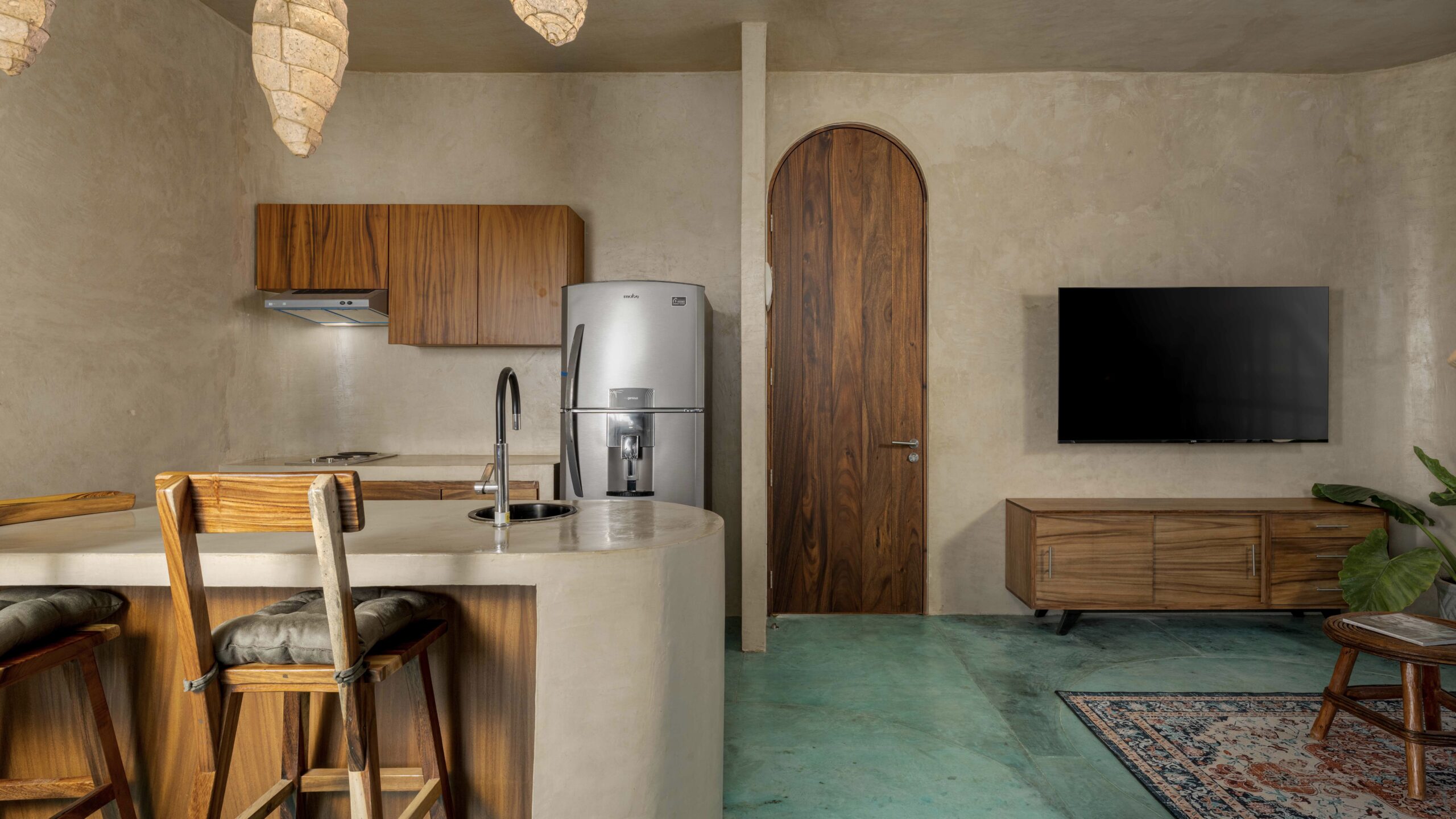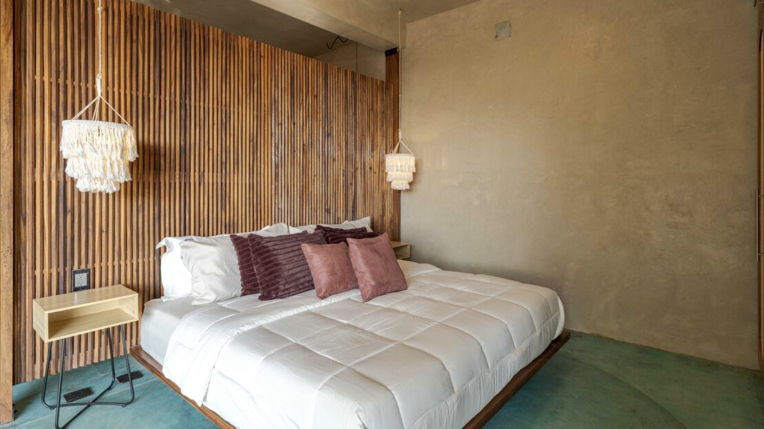 These units go beyond the typical studio experience, incorporating distinctive design elements such as a striking unique headboard, exquisite Oaxacan craftsmanship in the flooring, textured walls, and carefully designed windows that capture sunlight throughout the day.
