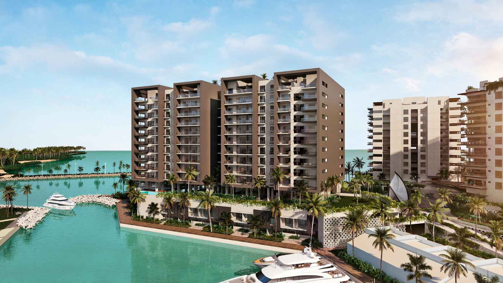 Experience a life of luxury, rest, and first-class nautical experiences in Progreso, Yucatán. Condos range from 2 and 4 bedrooms, with sizes varying from 1,572 Ft2 to 2,872 Ft2, featuring expansive 360° views surrounded by water.